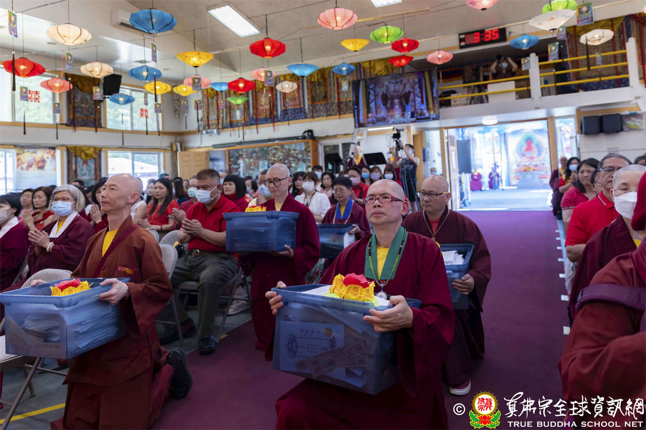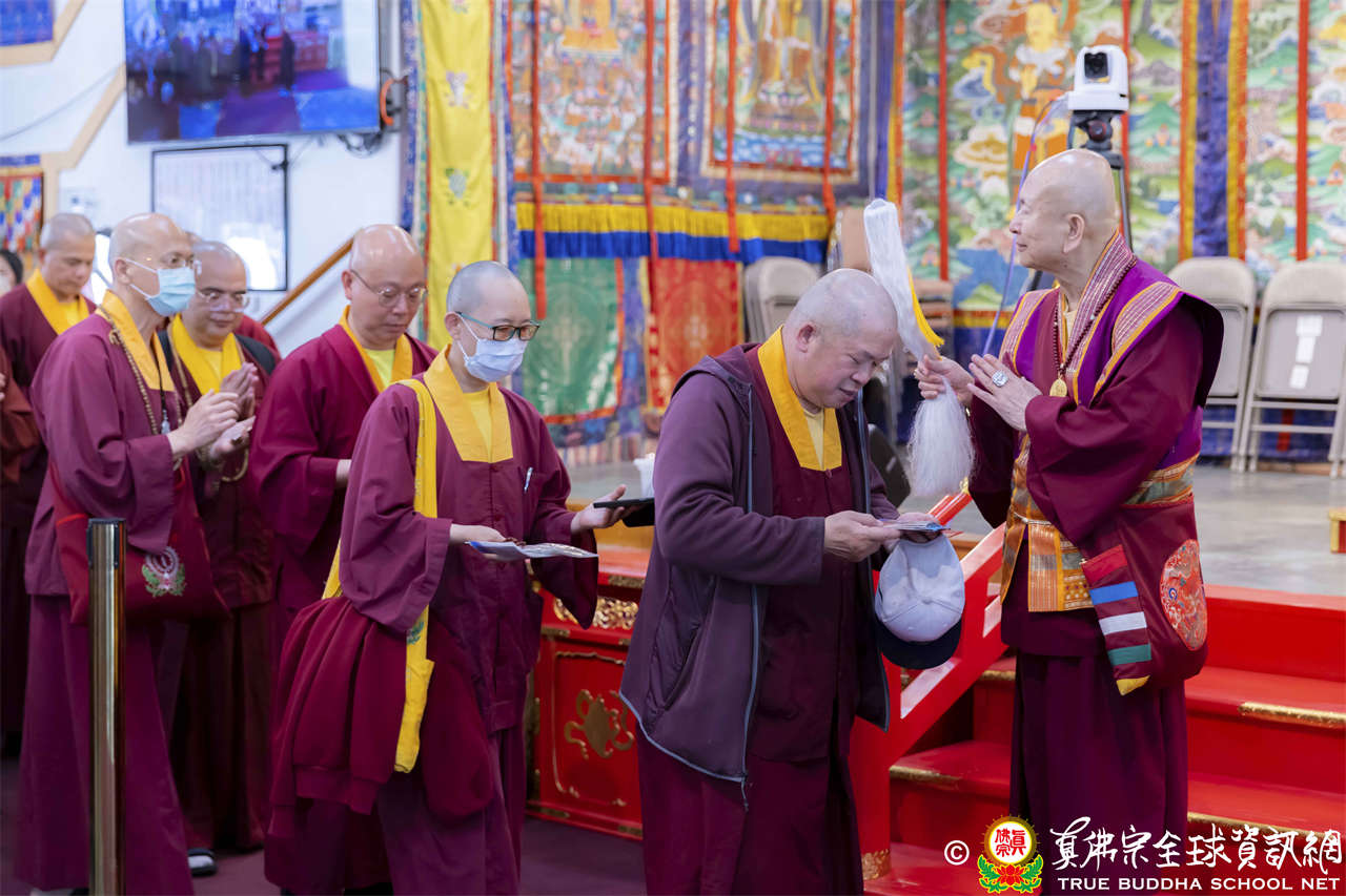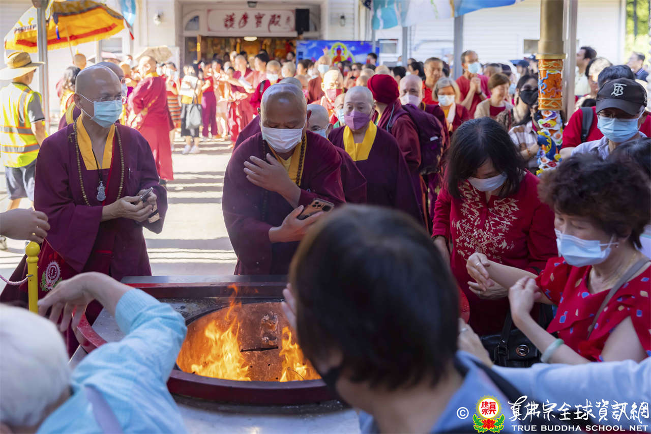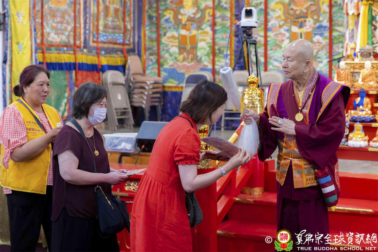 精彩的開示後,法王與網路線上弟子互動,並慈悲賜授現場弟子「阿彌陀佛法及千艘法船法灌頂」,與會眾等法喜充滿、心開意解,護摩法會圓滿吉祥。