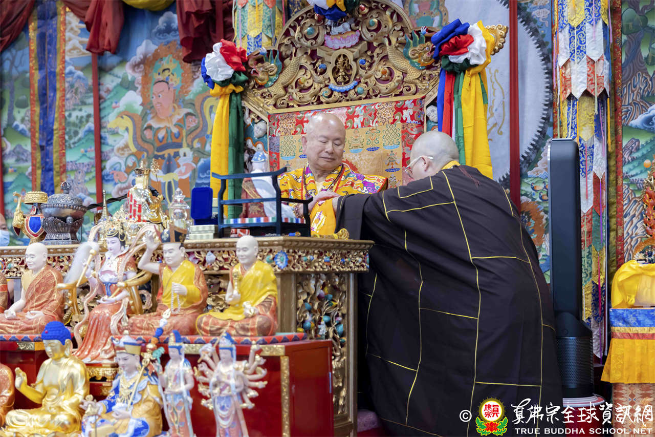 法會最後,法王移駕到Zoom前與弟子們互動,弟子們誠摯地感恩法王開示,並傾訴心中的感恩與敬意,法王慈悲賜授現場與會大眾「地藏王菩薩法」灌頂,法會圓滿結束。