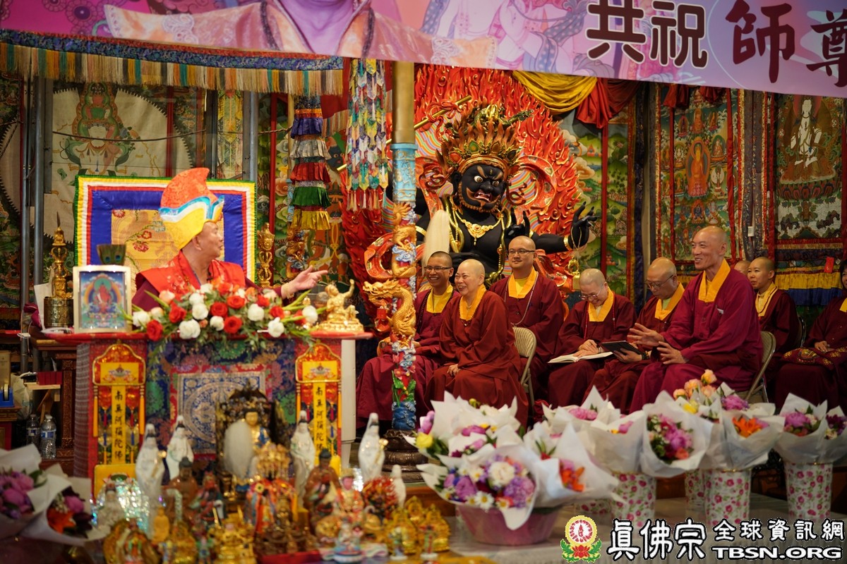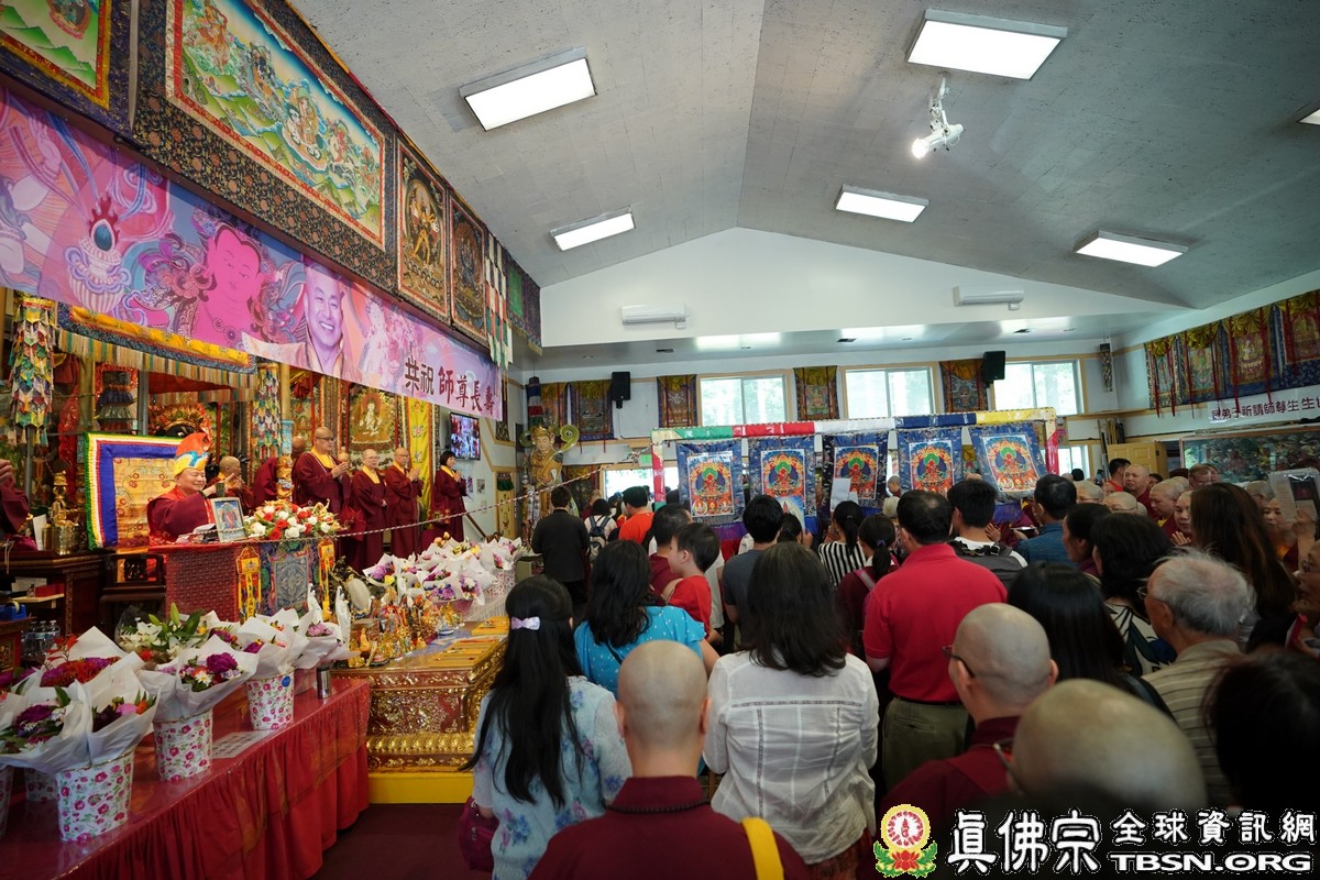 【TBSN西雅圖訊】2018年6月24日下午,美國西雅圖彩虹雷藏寺恭請根本上師蓮生佛主壇「長壽佛護摩大法會」,四眾嘉賓雲集。聖尊蓮生佛並於護摩後迴向,祈請長壽佛加持6月30日羅天大醮法會吉祥圓滿。
