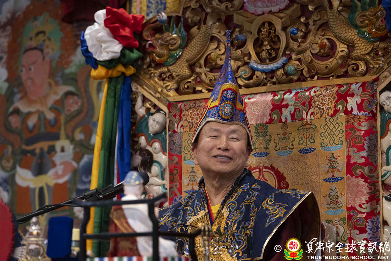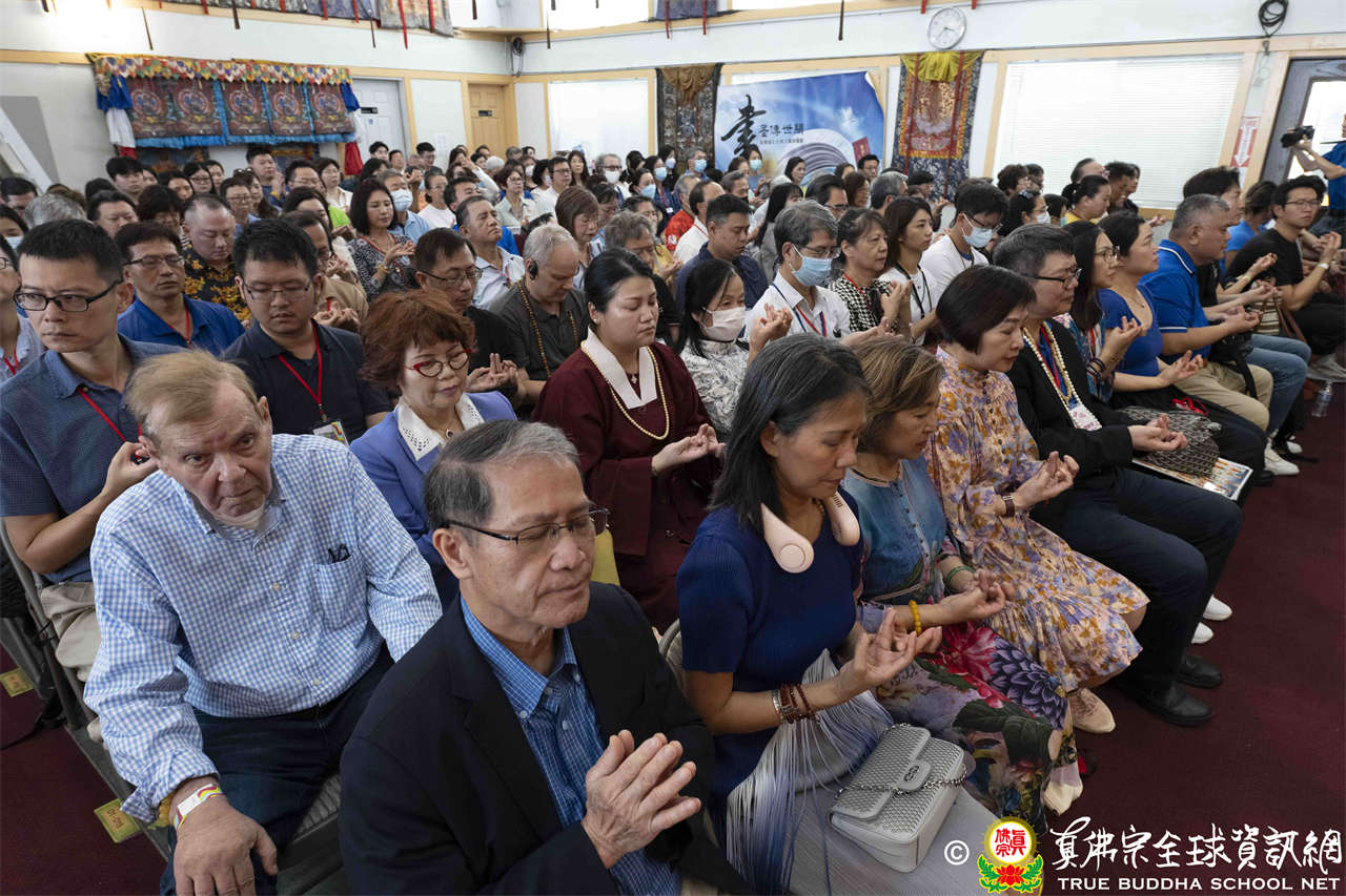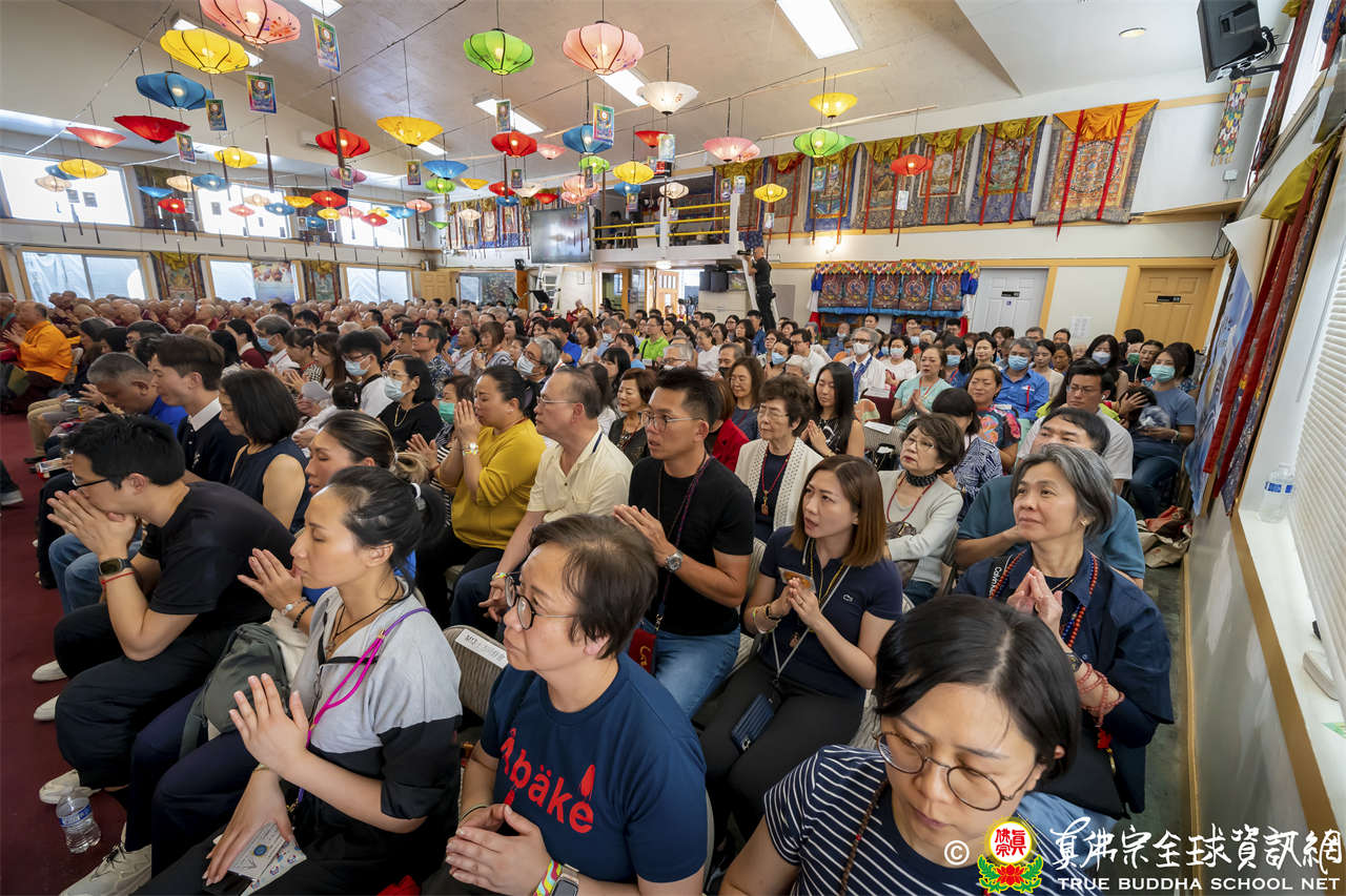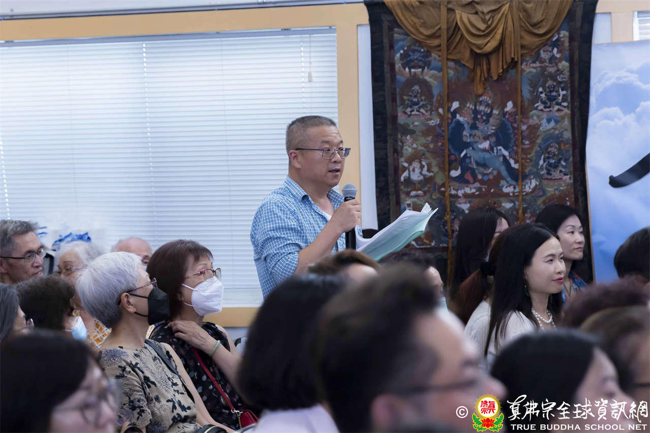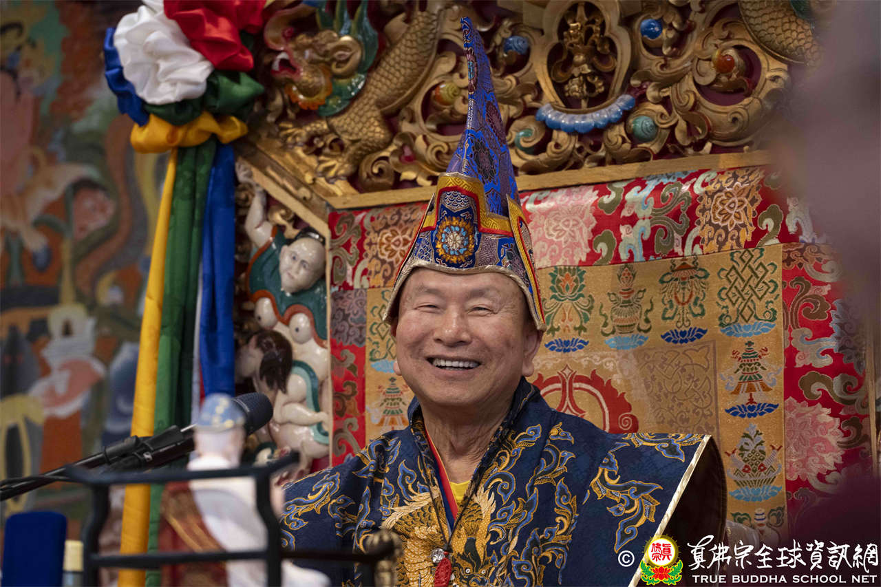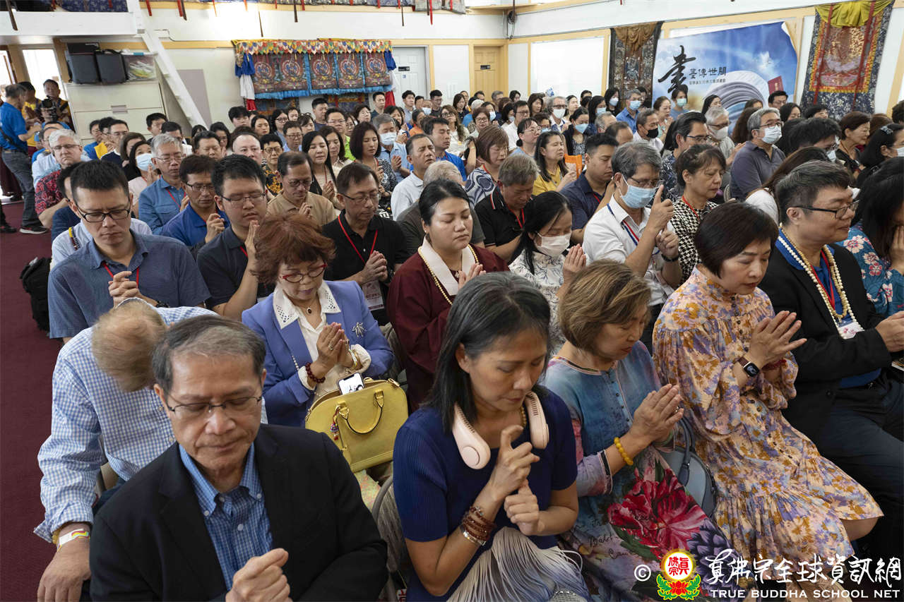 此外,法王也分享在昨日法會中,維摩詰大士帶著500位菩薩親臨現場參加。他幽默地提到,雖無法逐一計算500位菩薩,但「500」象徵的是眾多菩薩的到來,也是昨日法會中未曾提及的奇觀,並詢問有誰能看到此現象。此時,蓮花曉光師兄將自己所見所聞的神奇景象及對話娓娓道來,並獲法王認證是真實境。