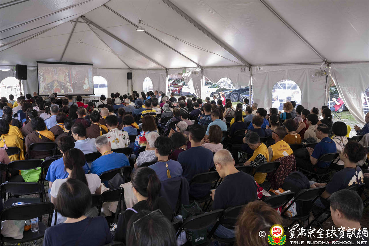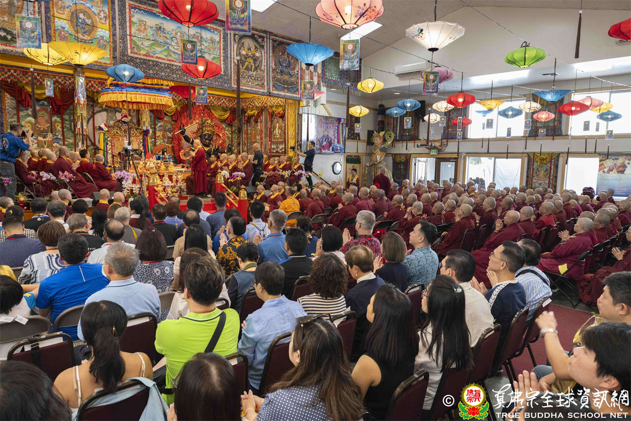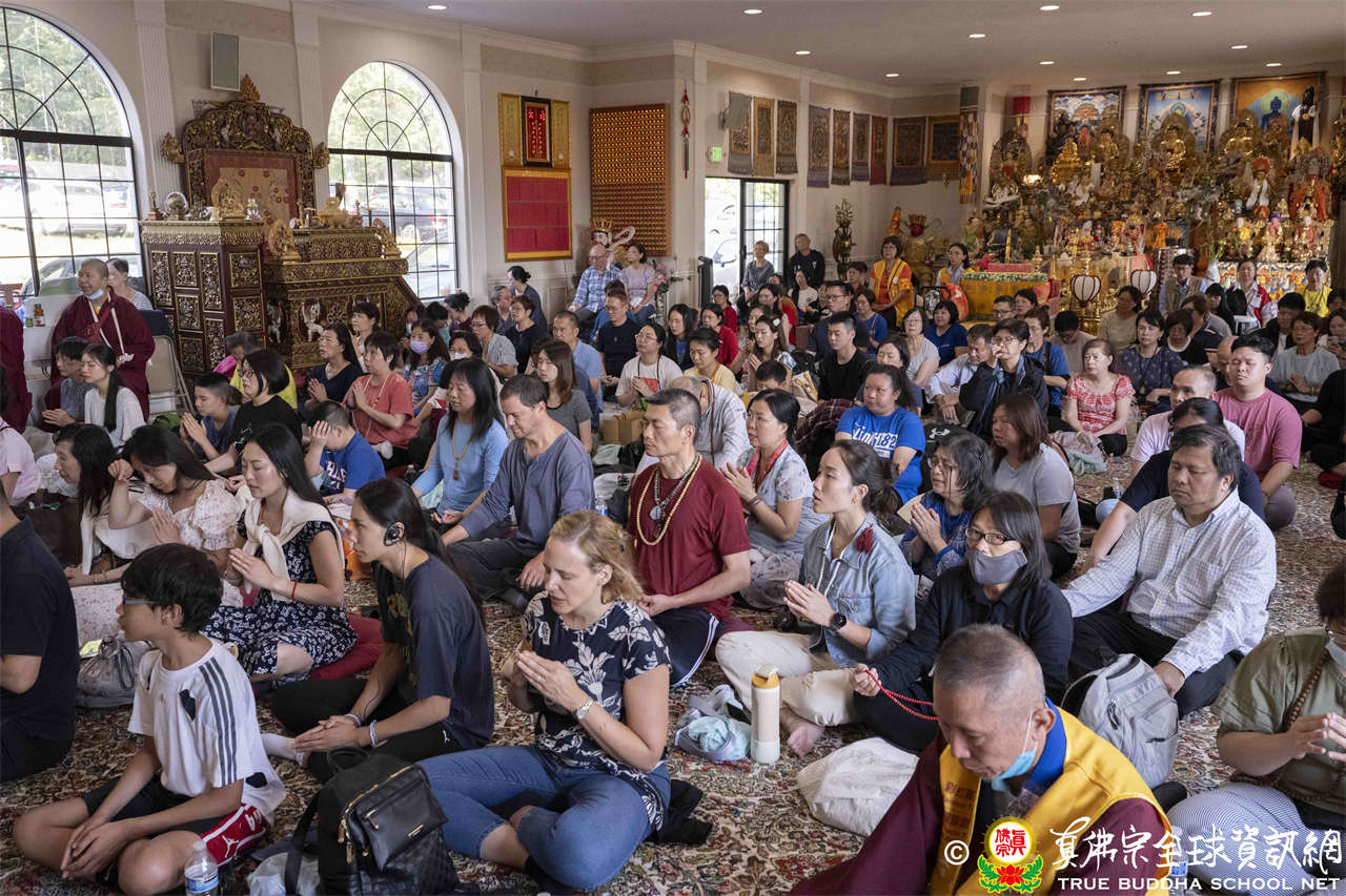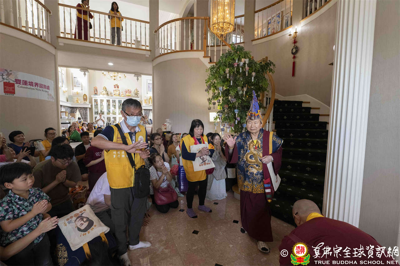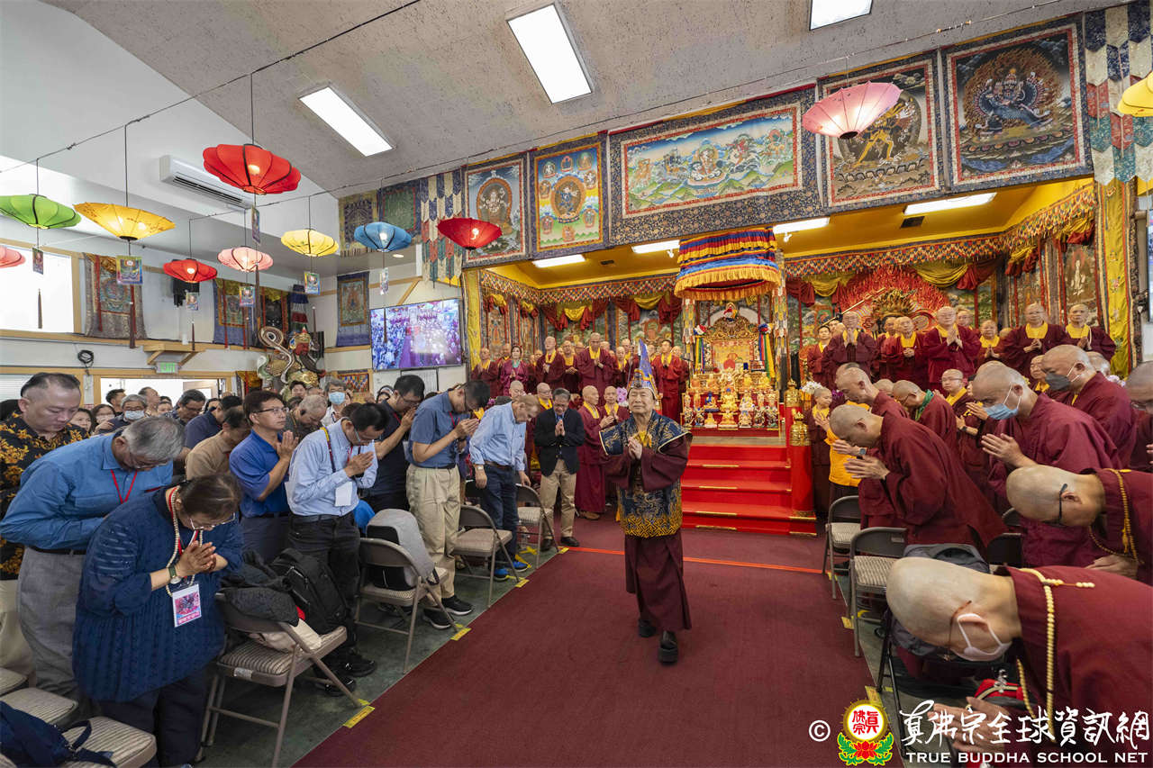 此外,法王也分享在昨日法會中,維摩詰大士帶著500位菩薩親臨現場參加。他幽默地提到,雖無法逐一計算500位菩薩,但「500」象徵的是眾多菩薩的到來,也是昨日法會中未曾提及的奇觀,並詢問有誰能看到此現象。此時,蓮花曉光師兄將自己所見所聞的神奇景象及對話娓娓道來,並獲法王認證是真實境。