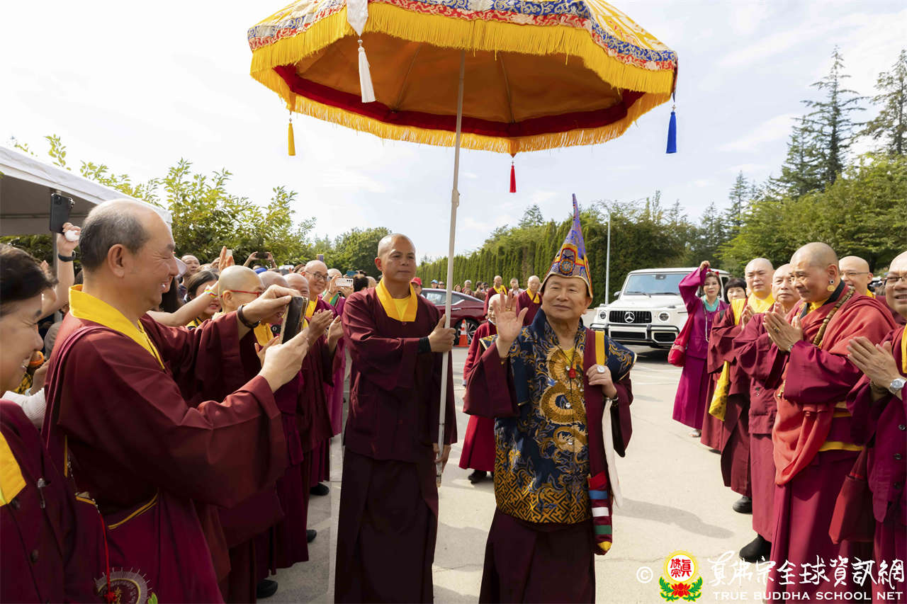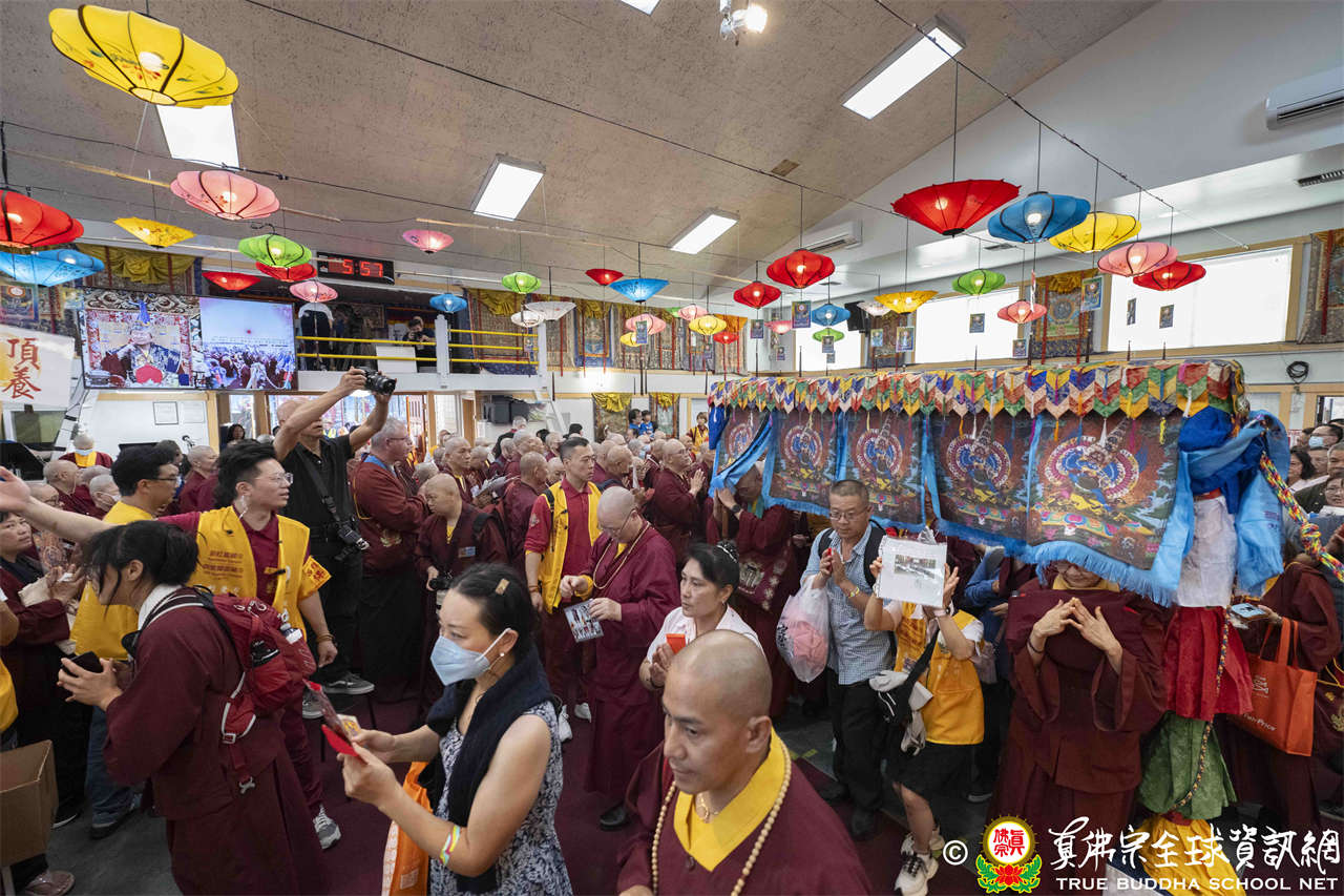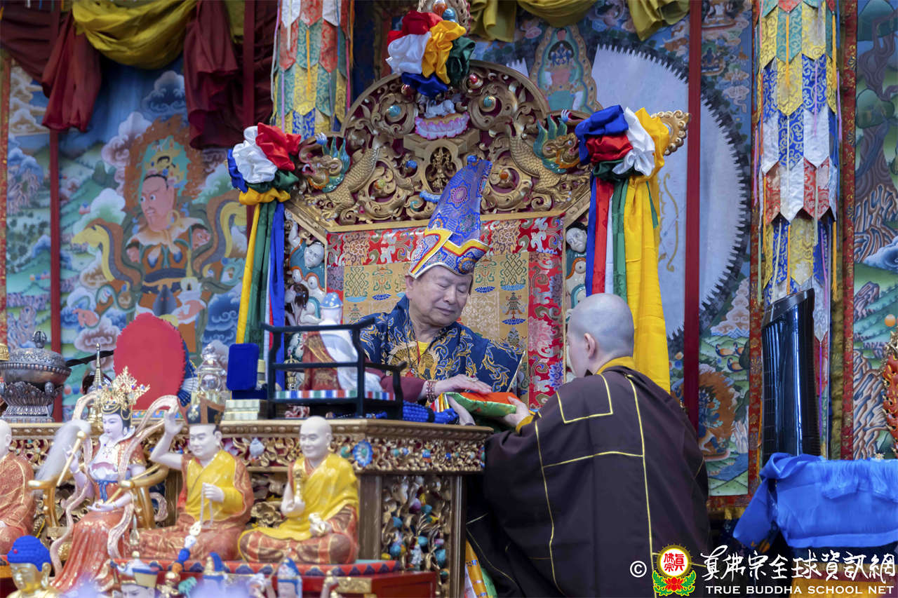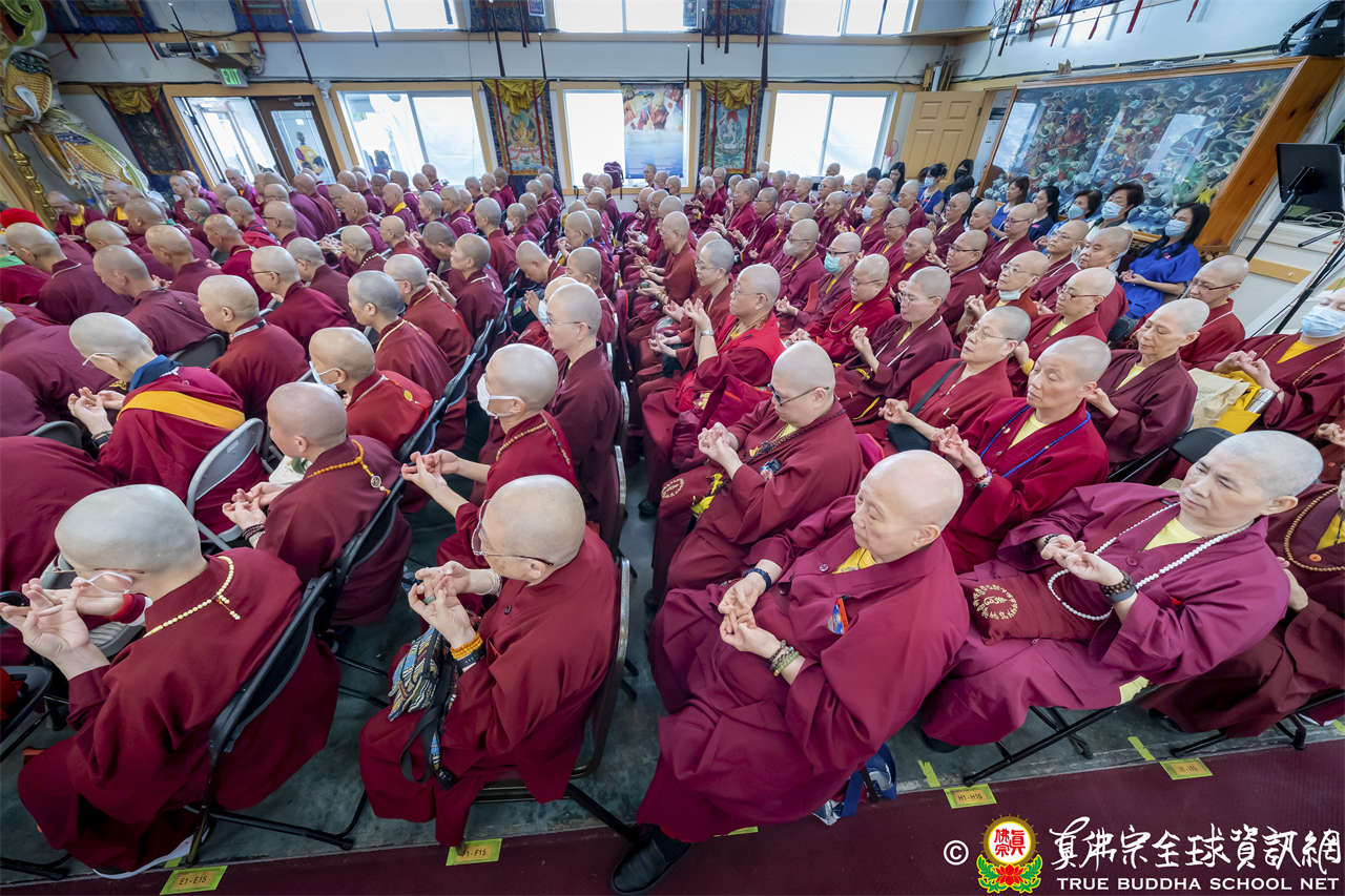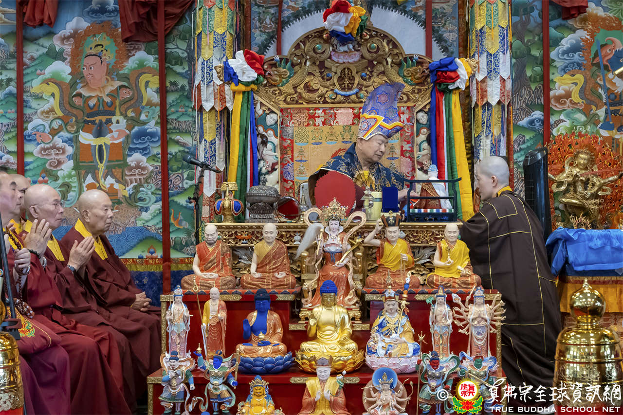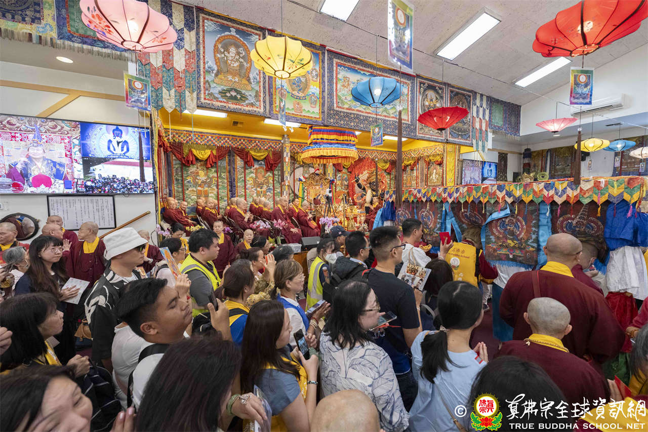 此外,法王也分享在昨日法會中,維摩詰大士帶著500位菩薩親臨現場參加。他幽默地提到,雖無法逐一計算500位菩薩,但「500」象徵的是眾多菩薩的到來,也是昨日法會中未曾提及的奇觀,並詢問有誰能看到此現象。此時,蓮花曉光師兄將自己所見所聞的神奇景象及對話娓娓道來,並獲法王認證是真實境。