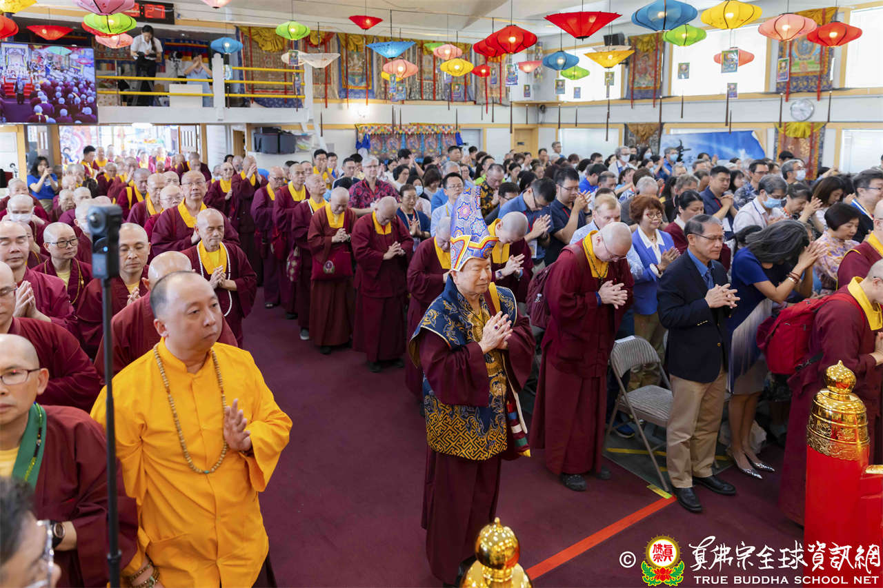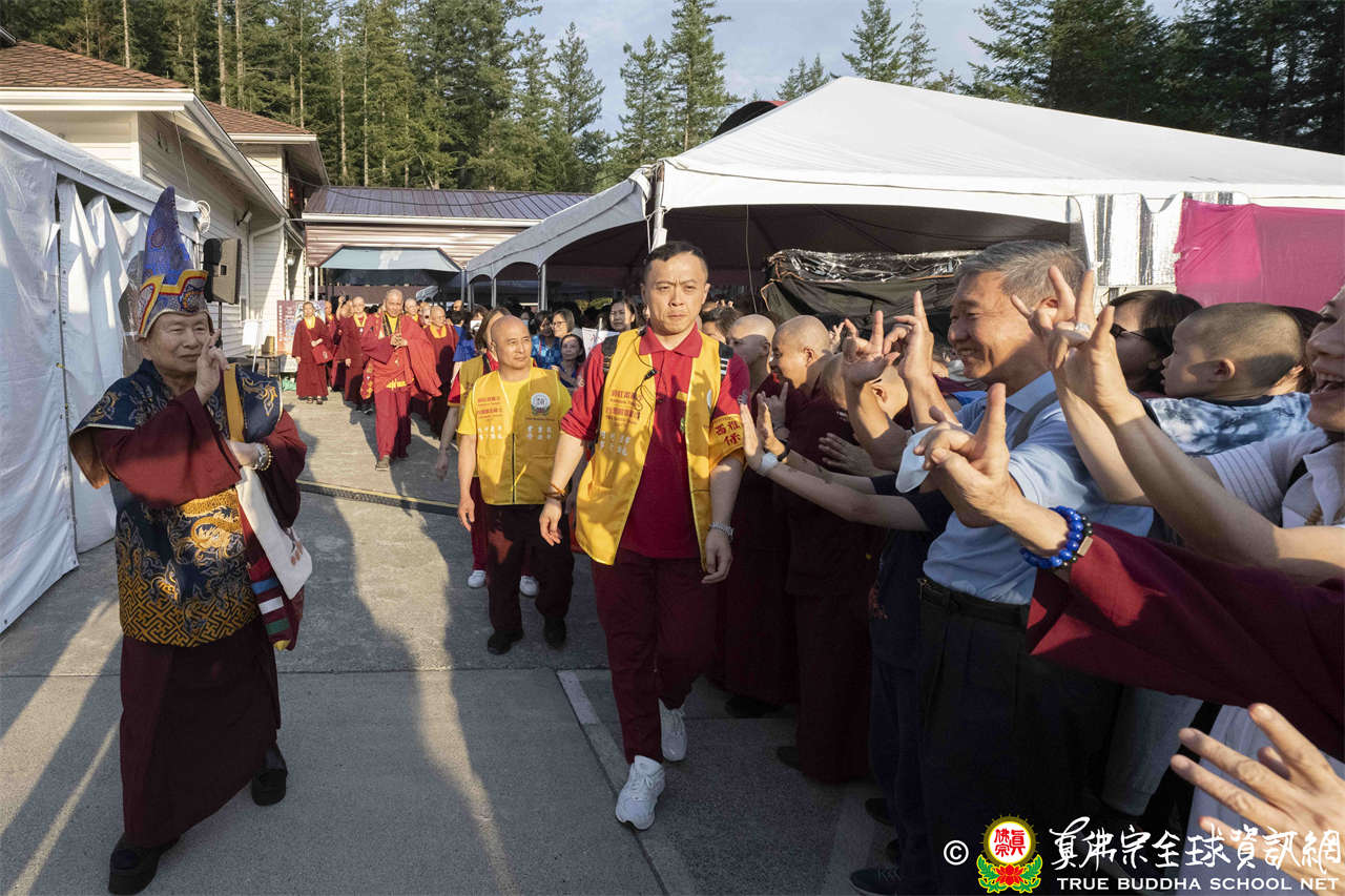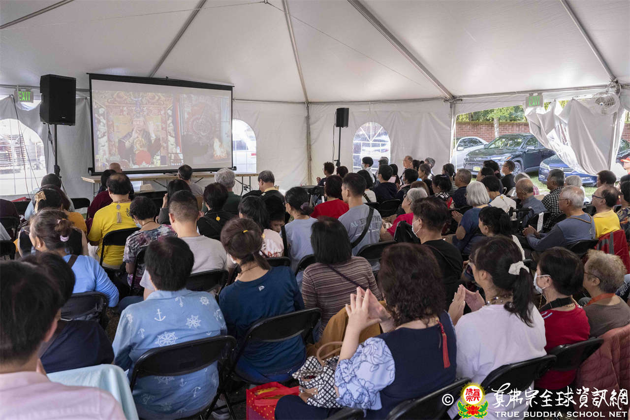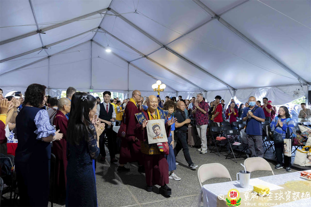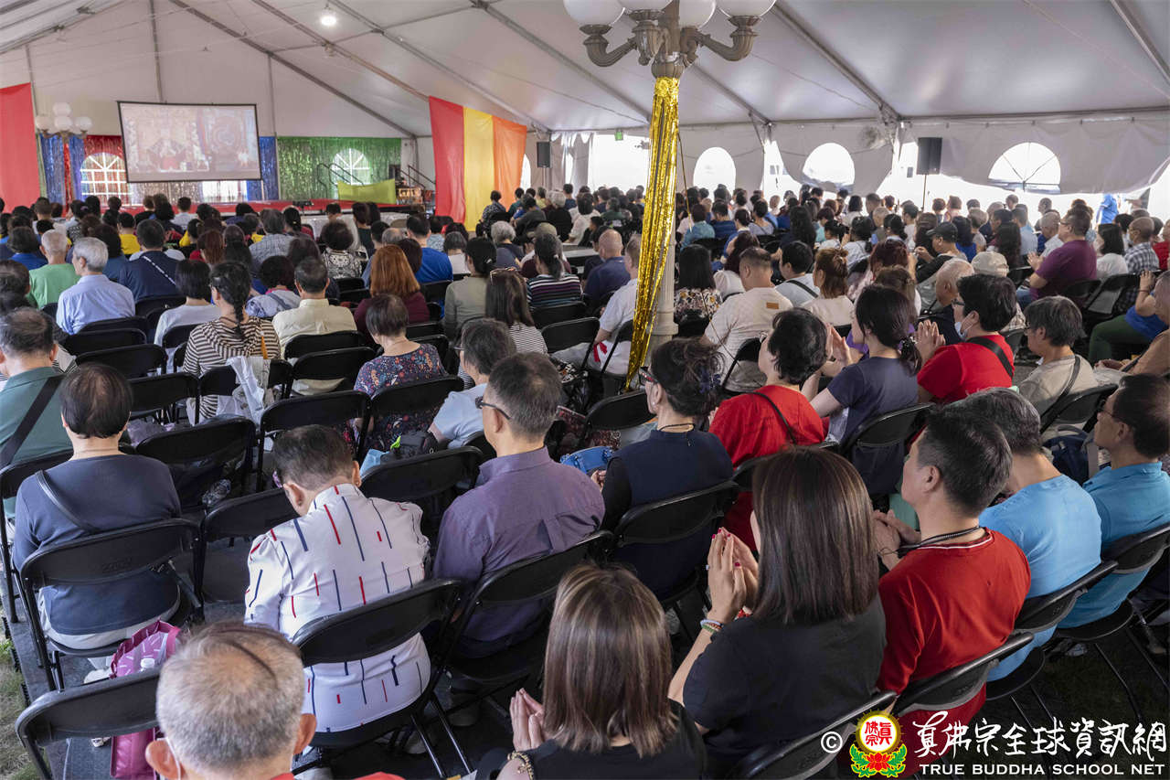 此外,法王也分享在昨日法會中,維摩詰大士帶著500位菩薩親臨現場參加。他幽默地提到,雖無法逐一計算500位菩薩,但「500」象徵的是眾多菩薩的到來,也是昨日法會中未曾提及的奇觀,並詢問有誰能看到此現象。此時,蓮花曉光師兄將自己所見所聞的神奇景象及對話娓娓道來,並獲法王認證是真實境。
