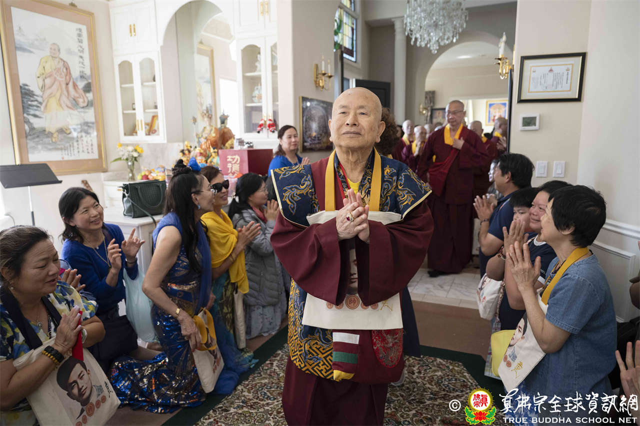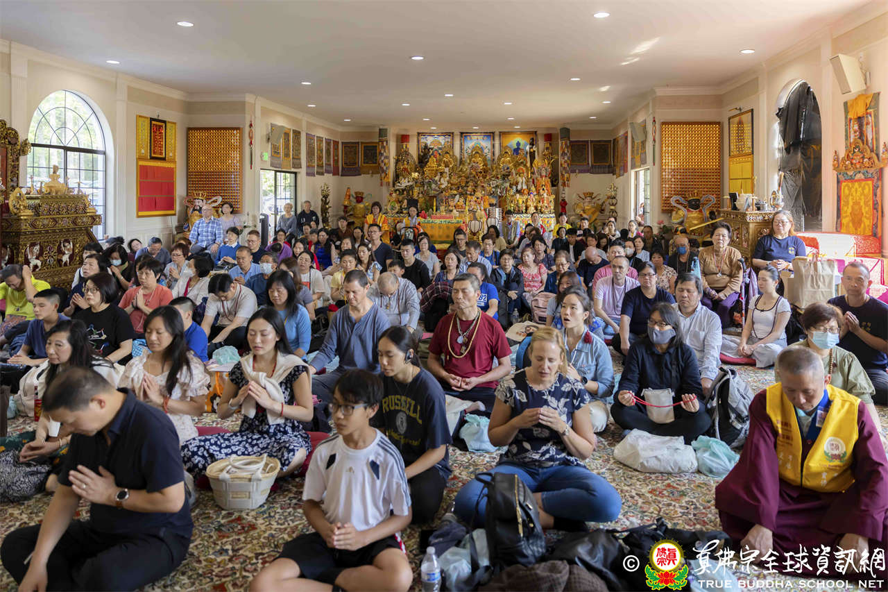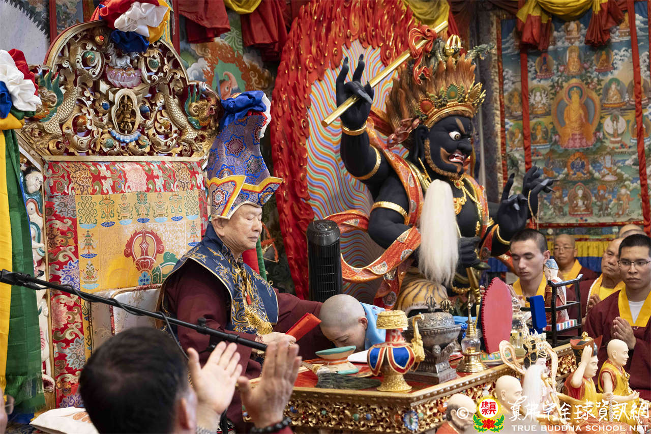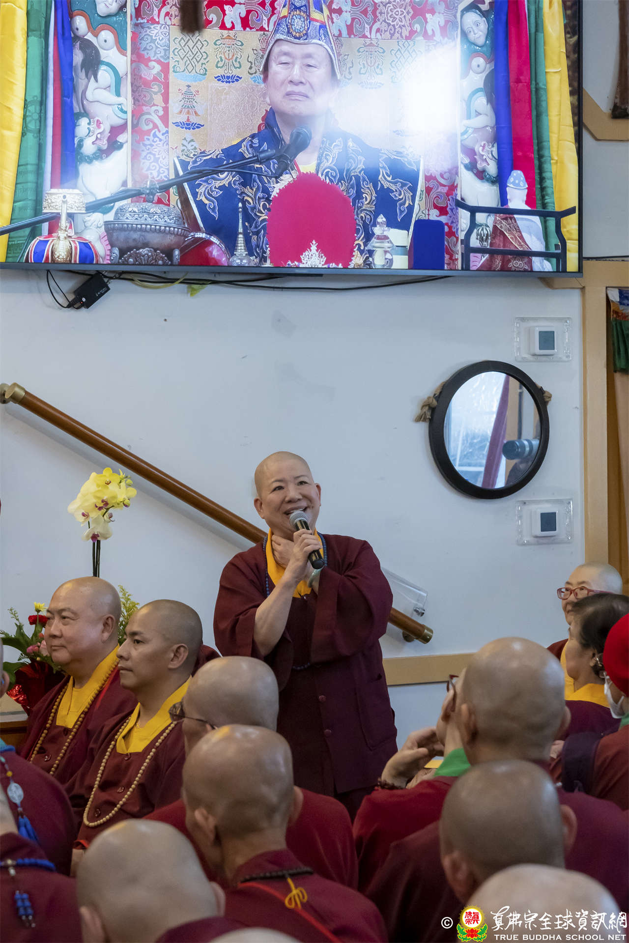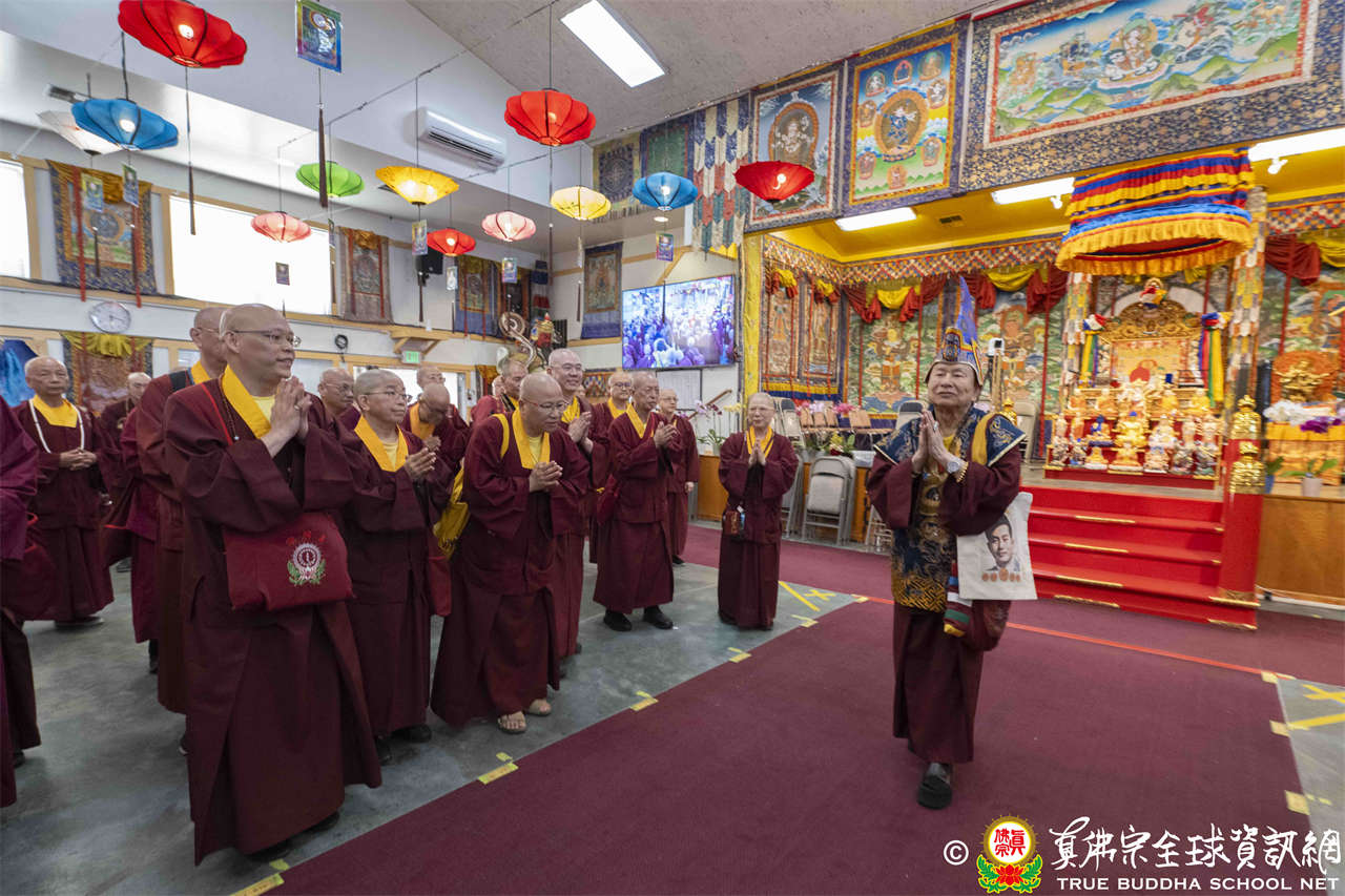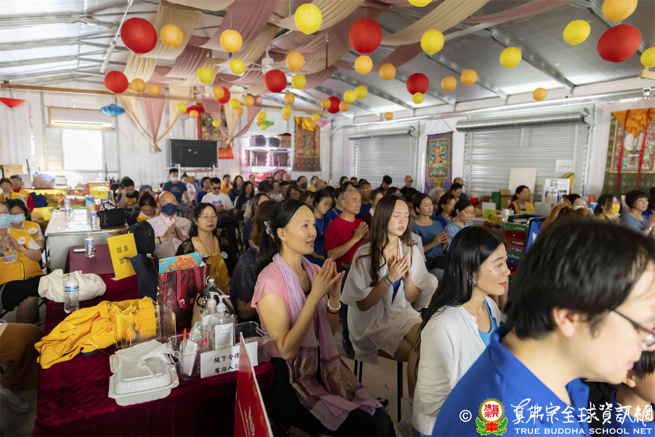 此外,法王也分享在昨日法會中,維摩詰大士帶著500位菩薩親臨現場參加。他幽默地提到,雖無法逐一計算500位菩薩,但「500」象徵的是眾多菩薩的到來,也是昨日法會中未曾提及的奇觀,並詢問有誰能看到此現象。此時,蓮花曉光師兄將自己所見所聞的神奇景象及對話娓娓道來,並獲法王認證是真實境。