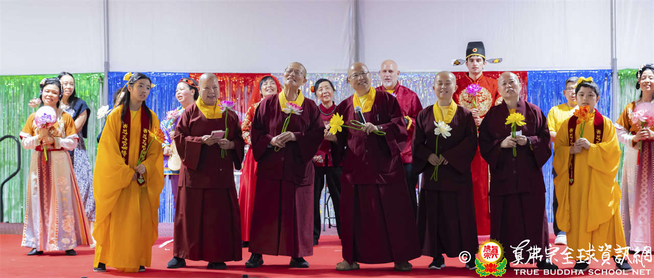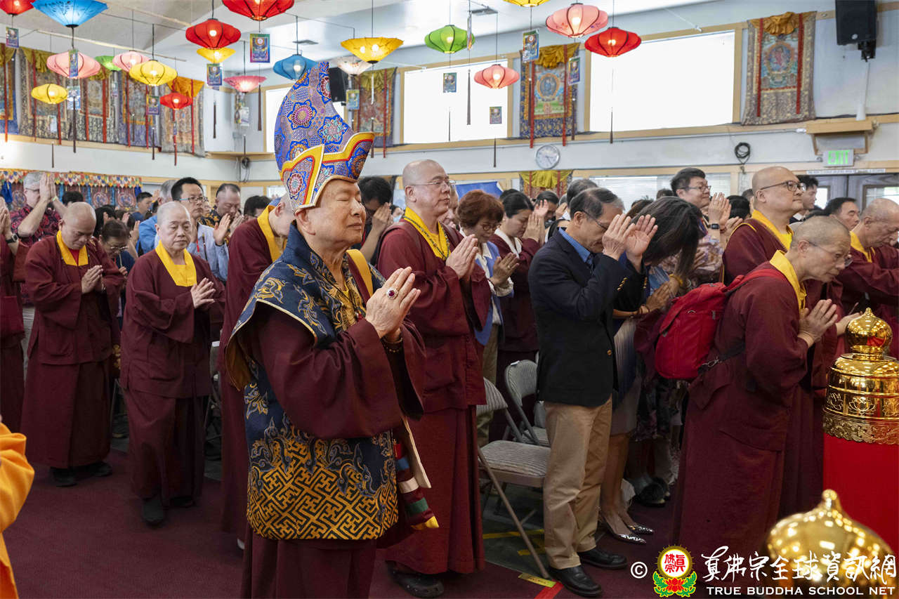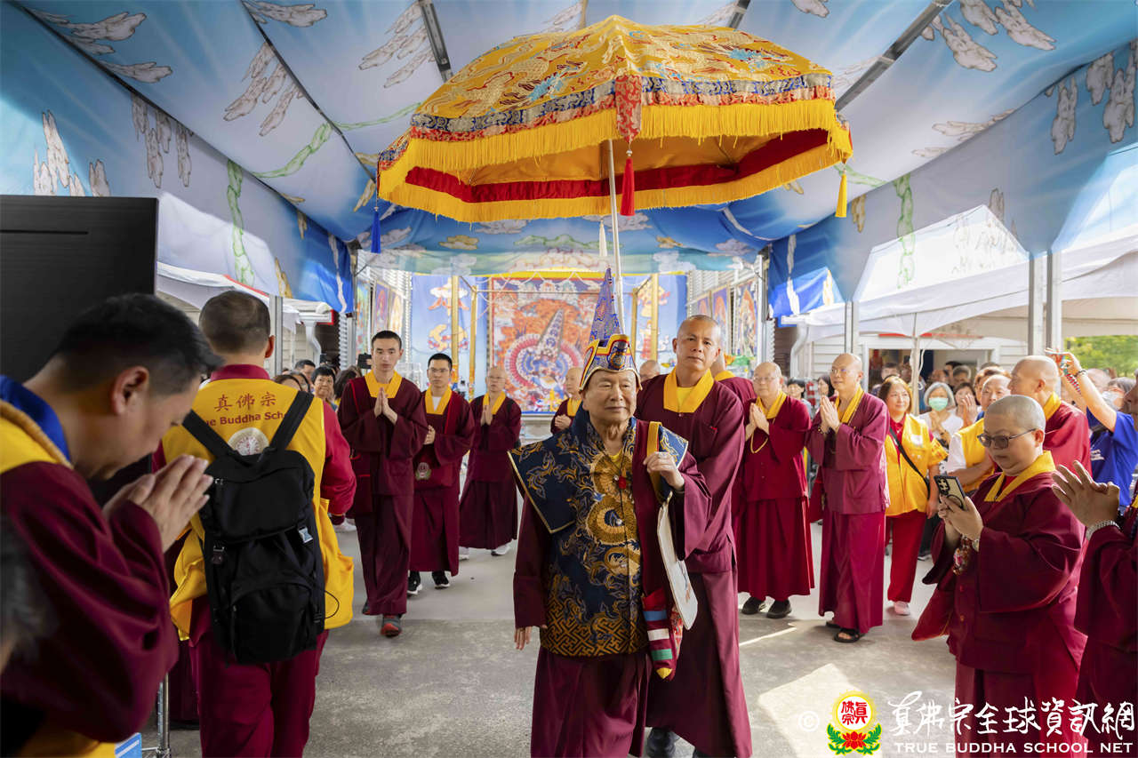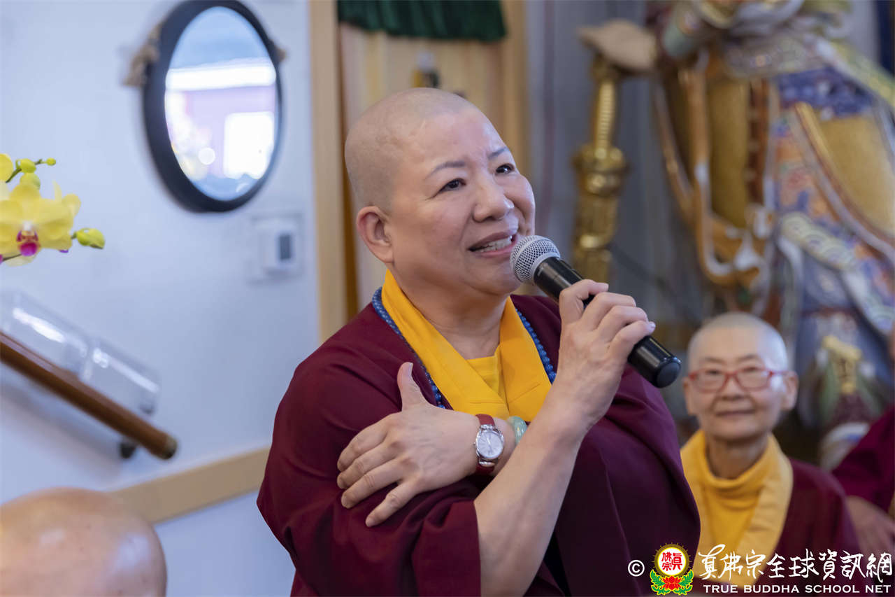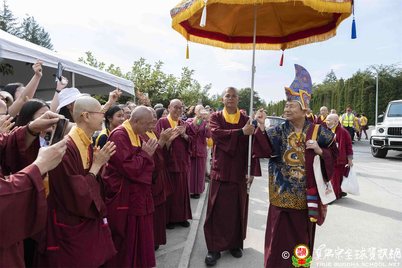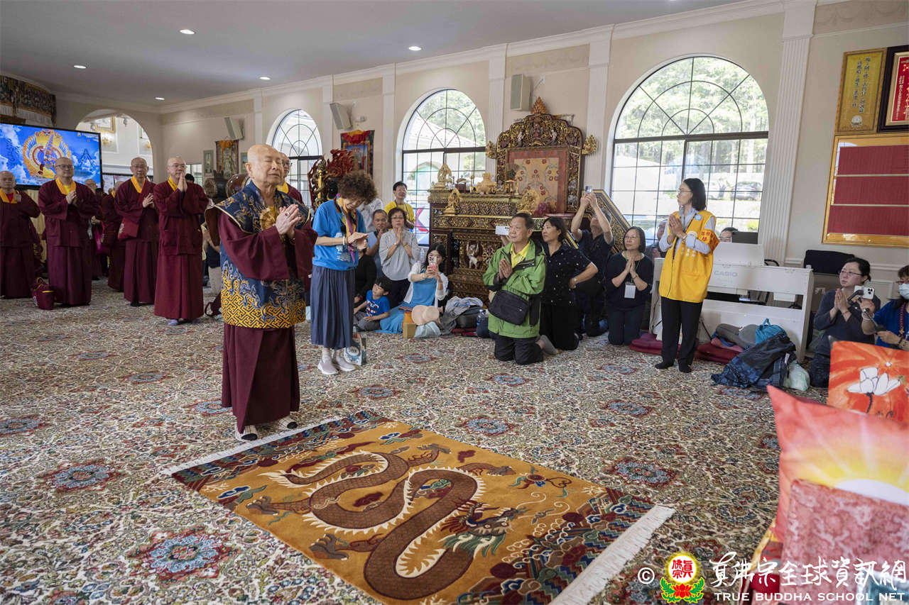 此外,法王也分享在昨日法會中,維摩詰大士帶著500位菩薩親臨現場參加。他幽默地提到,雖無法逐一計算500位菩薩,但「500」象徵的是眾多菩薩的到來,也是昨日法會中未曾提及的奇觀,並詢問有誰能看到此現象。此時,蓮花曉光師兄將自己所見所聞的神奇景象及對話娓娓道來,並獲法王認證是真實境。