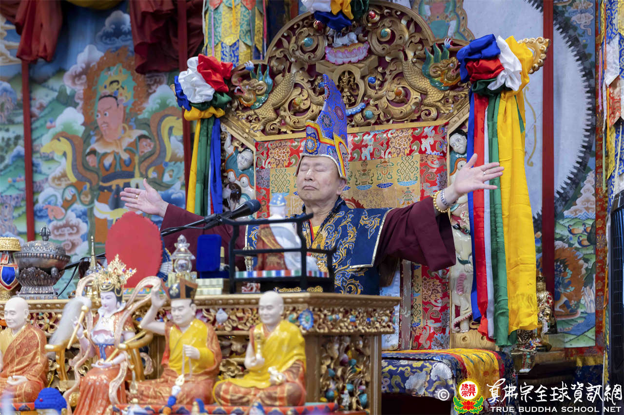 蓮生法王接著談到了是日主尊大幻化網金剛,他回憶起過去在台灣中正紀念堂舉行的大法會,吸引了大量信眾,並強調大幻化網金剛的咒音力量無比強大,祂本身就是「本初佛-阿達爾瑪佛」的化身,「紅教-寧瑪派」的第一大護法,是「阿達爾瑪佛-普賢王如來」的忿怒像。祂既具有慈悲相的「文尊」,也有忿怒相的「武尊」,兩者合一,稱為「文武百尊」,其威力巨大。