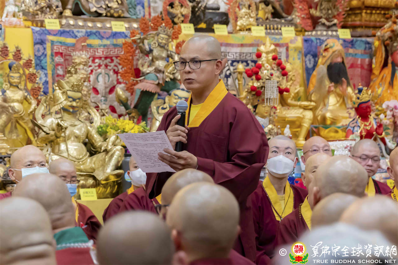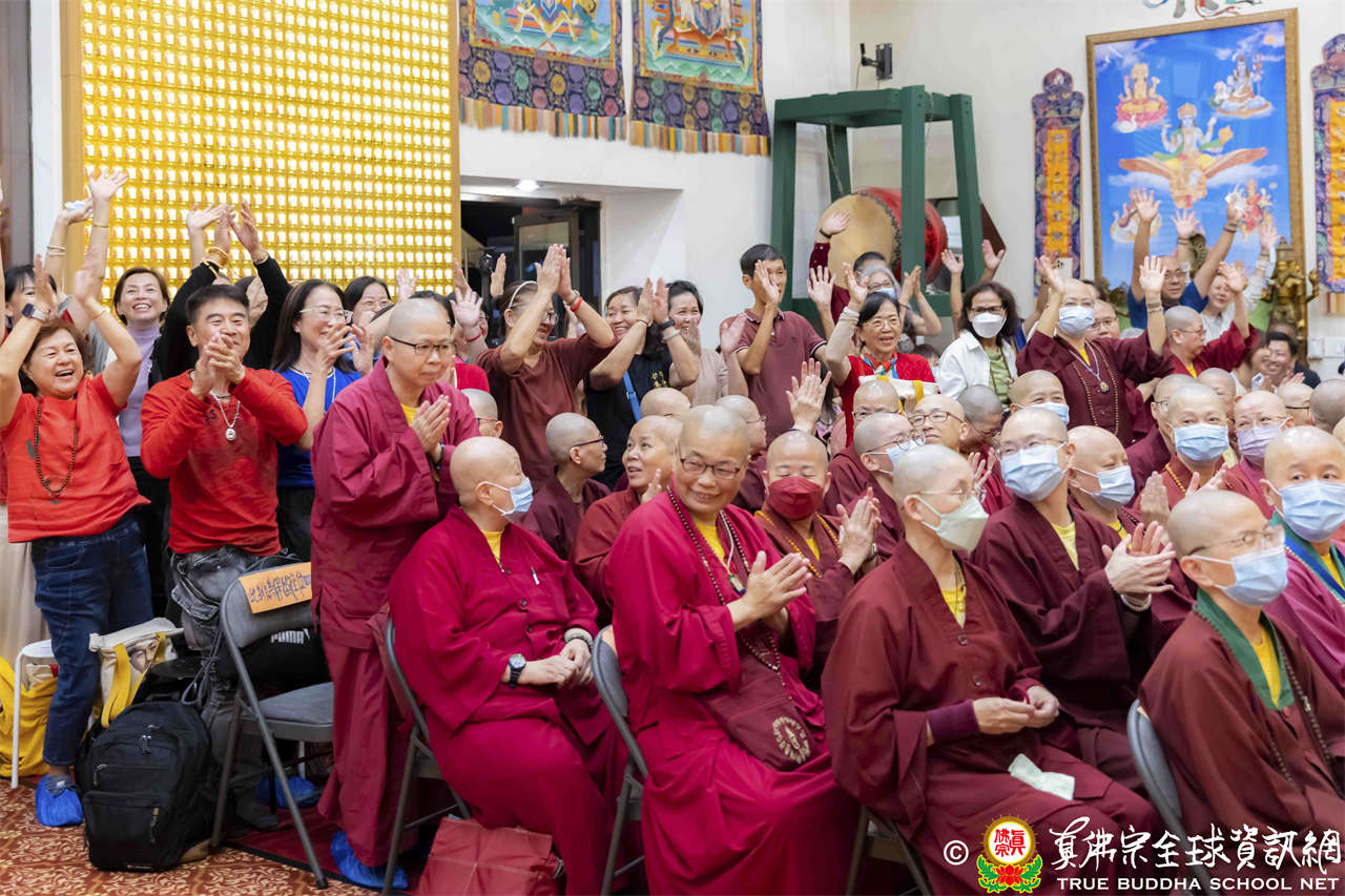 修法結束後,住持蓮吟上師致詞感恩聖尊連日的辛勞,並感謝所有參與秋季大法會的同門,以及義工、弘法人員的協助,同時對當天安排不盡完善之處表示歉意,會誠心地聽取建言,記取教訓,作為日後法會行事的警惕,努力去修正之前不好的處理方式,望請大家能多多包容和體諒。