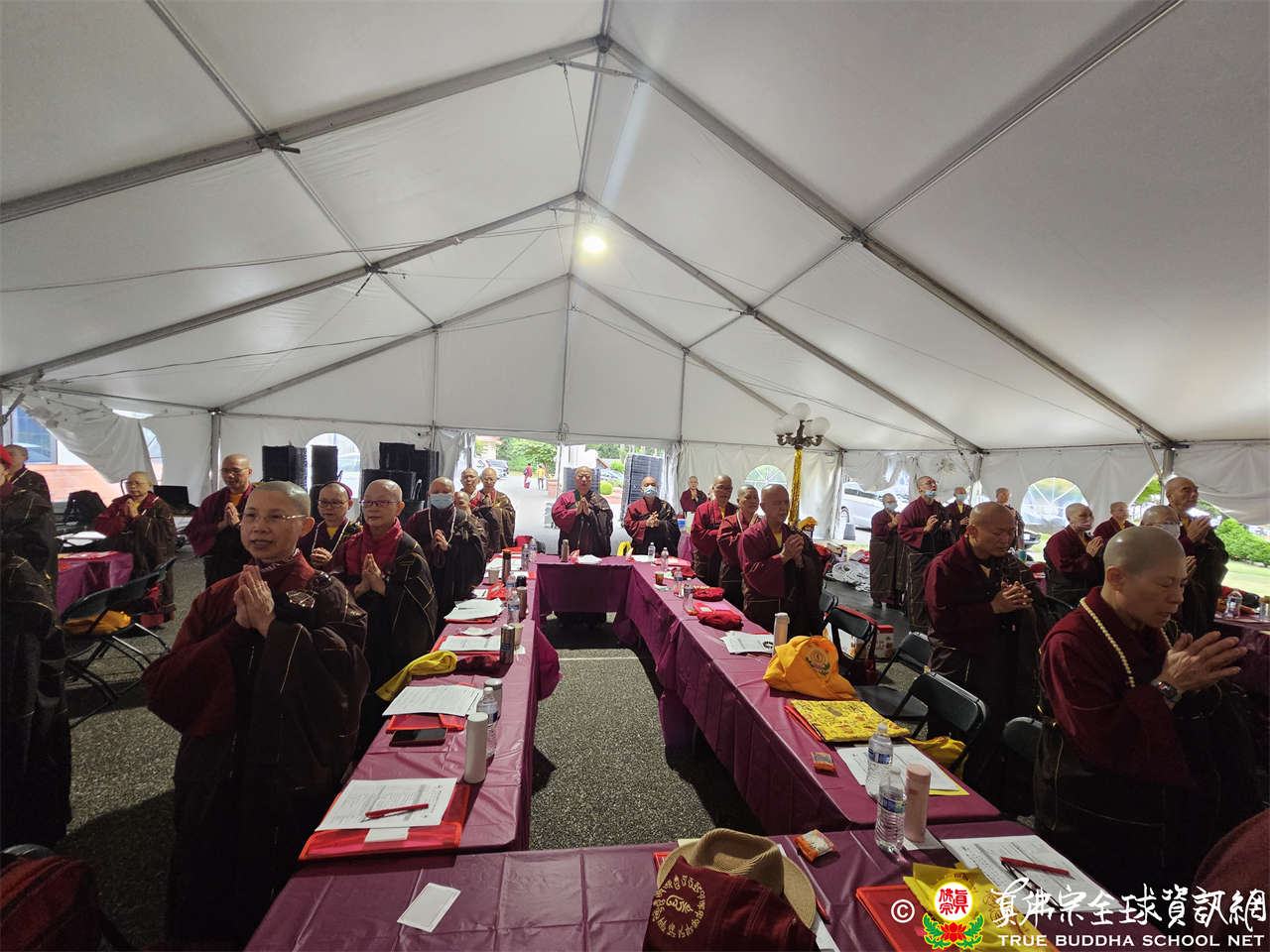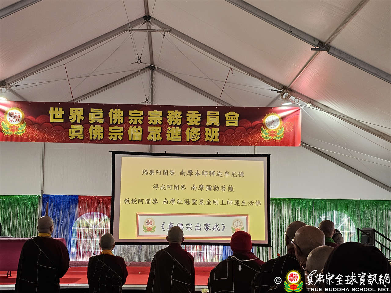 第一天開幕,首先由長老蓮傳上師、教育處處長蓮訶上師、財政處處長蓮者上師,帶領教授師法師團全體批上戒衣誦戒。接著蓮追教授師、蓮屸法師帶領唱真佛宗宗歌「感恩真佛」,僧團齊聚一堂的場面,非常莊嚴令人感動。