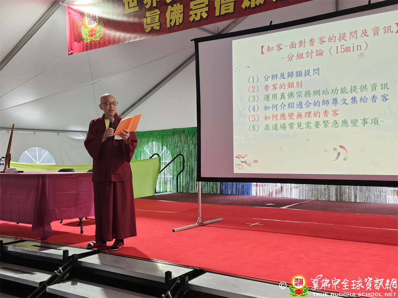 由第六屆世界真佛宗宗務委員會教育處主辦「法師進修班」,分別邀請授課老師。蓮一上師:「知客的重要」、長老蓮僧上師:「真佛祈禱會-首次亮相」、長老蓮滿上師、長老蓮傳上師:「入菩薩行論簡介」、賴泓霖(Jimmy Lai)律師:「僧眾遺囑介紹」、長老蓮哲上師:「僧眾在宗派的責任」、長老蓮栽上師:「如何引導新僧」。