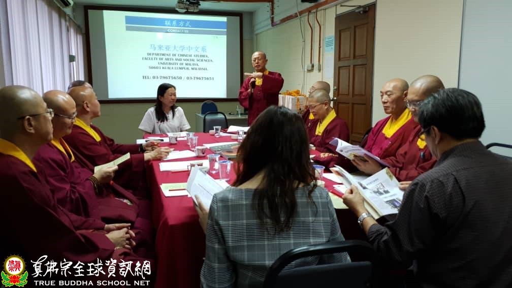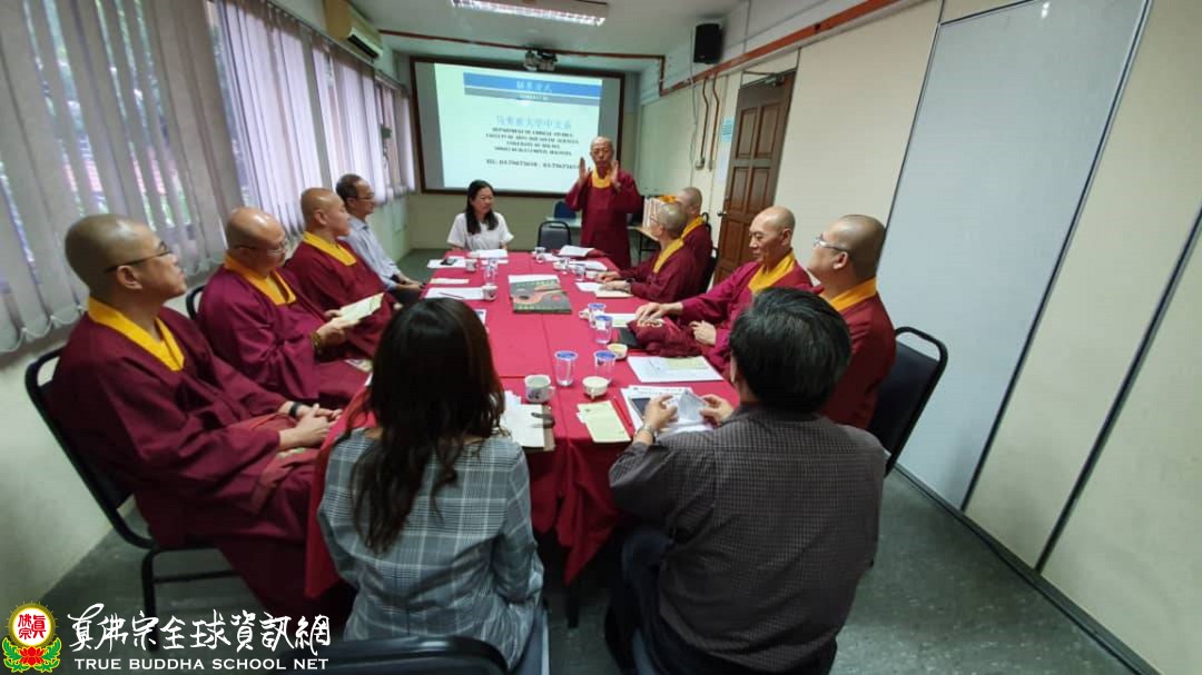 世界真佛宗宗務委員會核心小組全體成員與馬來西亞真佛宗密教總會的代表,於2019年7月4日下午參訪位于馬來西亞首都吉隆坡的馬來亞大學中文系。