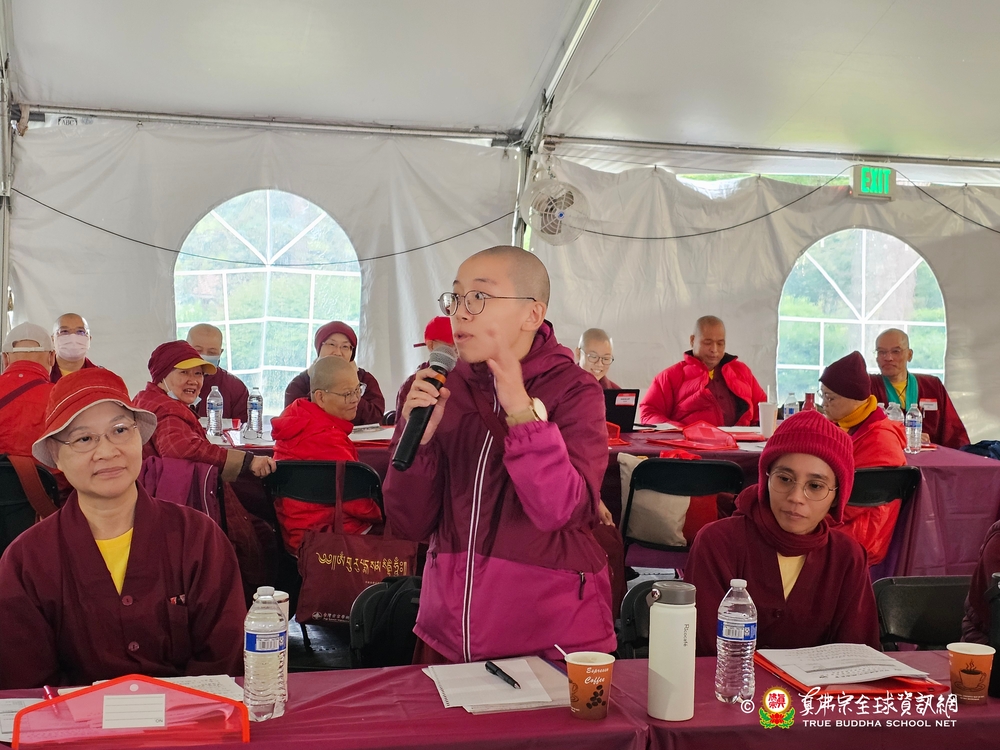 其中第二組蓮媖、蓮櫻教授師帶領的菩提行願組,蓮闐法師代表發言,提出了很實際的一個進行方法:「該組一致認為真佛互助祈禱會應該要先做年齡層區別,因為不同年齡層,有不同的煩惱,這樣在相同的情境下,聆聽別人的故事,或許可以反觀自己,還不至於太糟,由此得到激勵。」