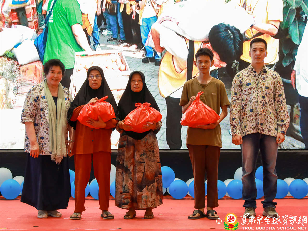 接著是印尼雷藏寺理事長月琴師姐致詞,然後是象徵性的分發生活必需品給將布施的民眾。接著是抽獎,舞蹈表演,印尼雷藏寺的歷史劇表演。然後是頒發榮譽獎座給建立印尼雷藏寺的元老功臣,有些元老已往生,有些不便出席的,都請他們的家人代表接受。