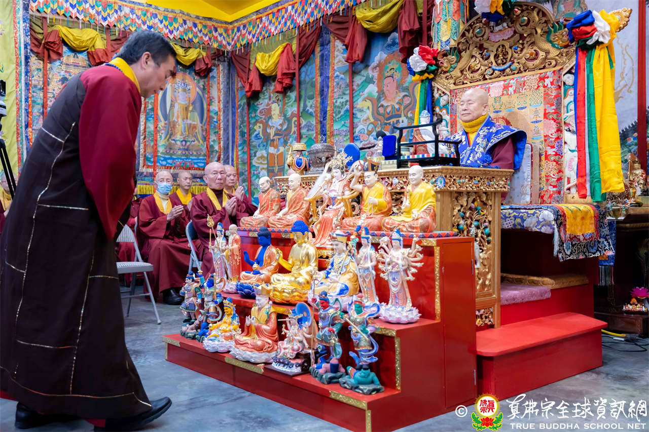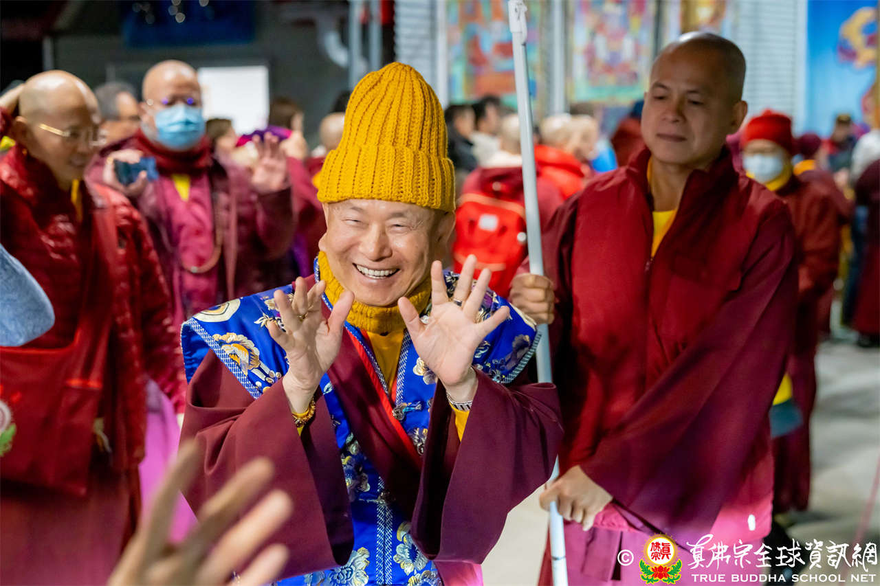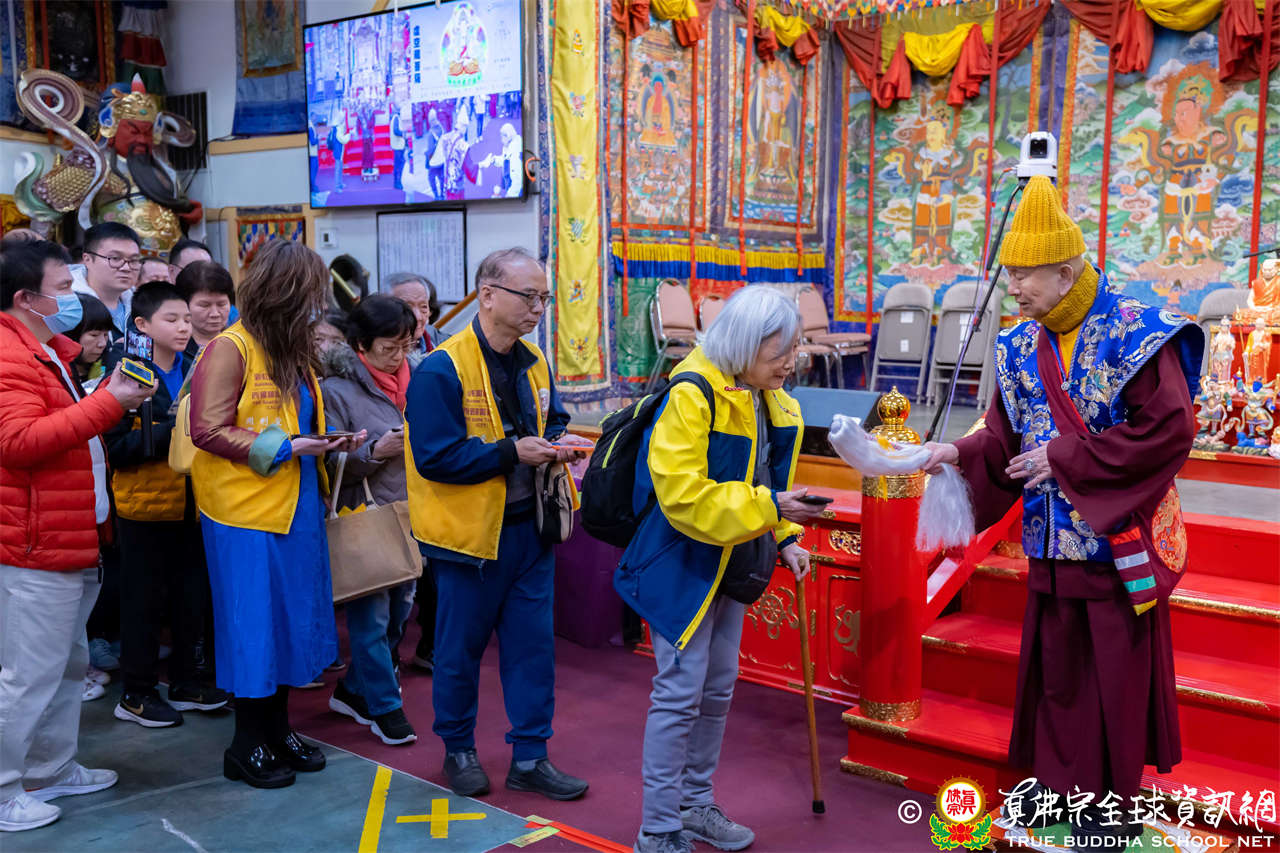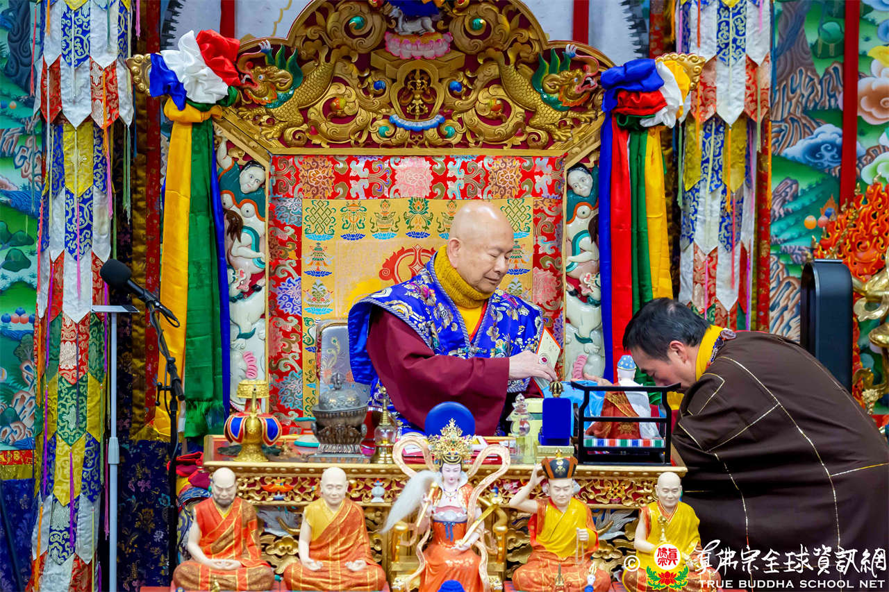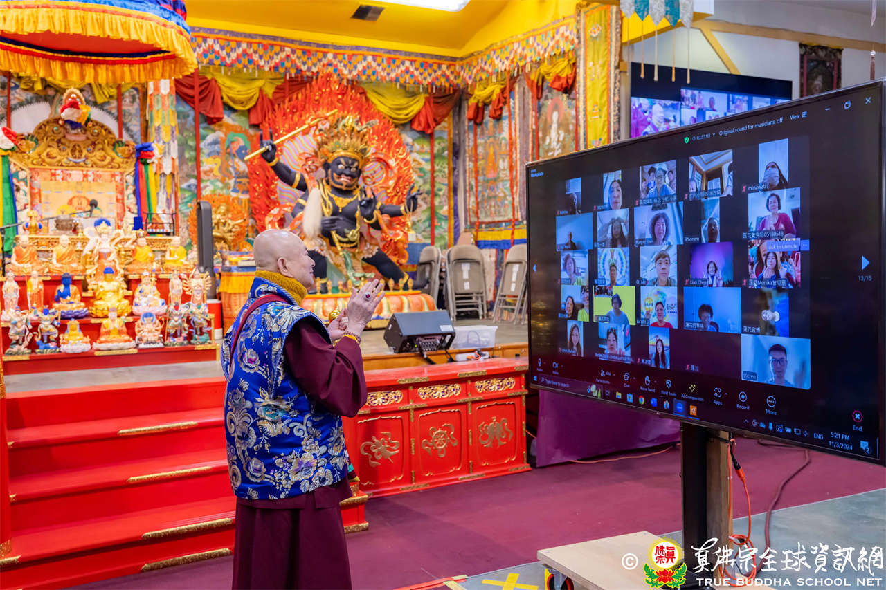 結束精彩的法語開示後,法王移駕到Zoom前與弟子們互動。弟子們誠摯地傾訴心中的感恩與敬意。法王慈悲賜授現場與會大眾「虚空藏菩薩法」,法會圓滿結束。