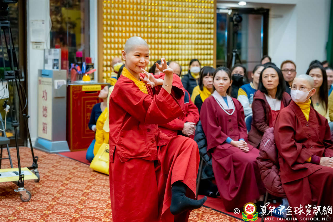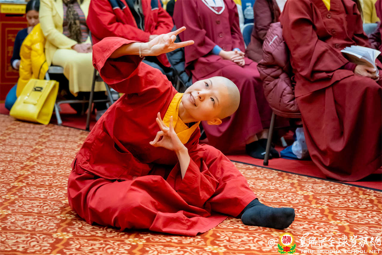 本週同修的主尊是地藏菩薩。地藏菩薩是聖尊的願力本尊,祂的偉大之處在於「眾生成佛,祂才成佛」,而聖尊所發的願力,與地藏菩薩是相同的。度眾生有三個方式,國王式、同舟式、牧羊式,地藏菩薩屬於牧羊式。此外,同修中聖尊也請蓮花韻玲師姐及澄澄師姐說天語、蓮喜上師演示七禽金剛拳,藉此見證勉勵同門,真佛宗有空行秘密傳承。