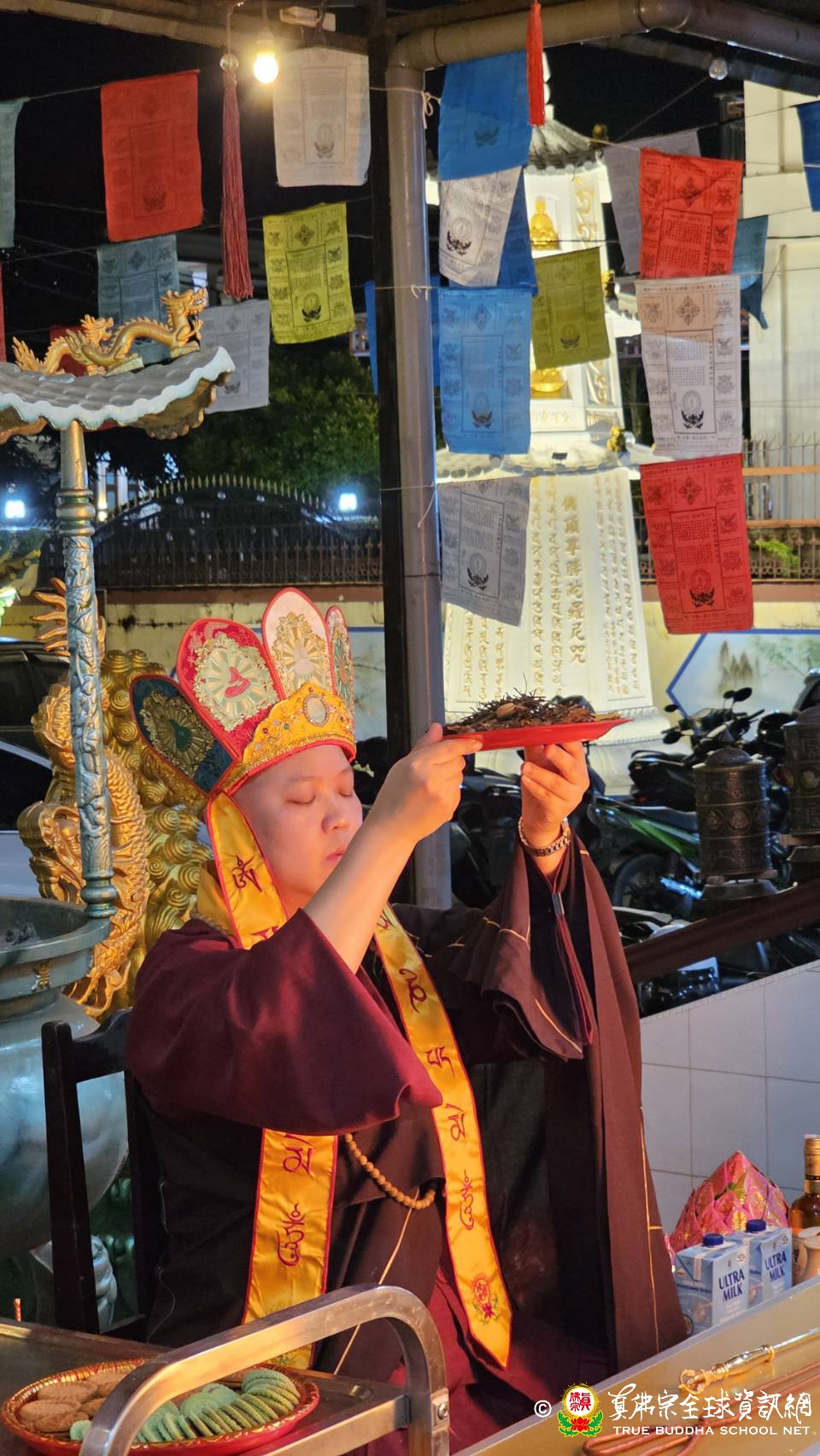真佛宗上師團啟建瑤池金母護摩迴向 請佛住世暨為世界祈福 祈求根本上師蓮生法王 常住世間,真佛心燈永不熄滅 願根本上師蓮生法王的智慧與慈悲 溫暖眾生乾涸的心田 迴向世界和平、災難平息、眾生喜樂,以愛和祝福的正向力量,創造美好的人間淨土。 主壇上師:釋蓮最上師 日期:2024年12月20日 道場:印尼三尊雷藏寺
