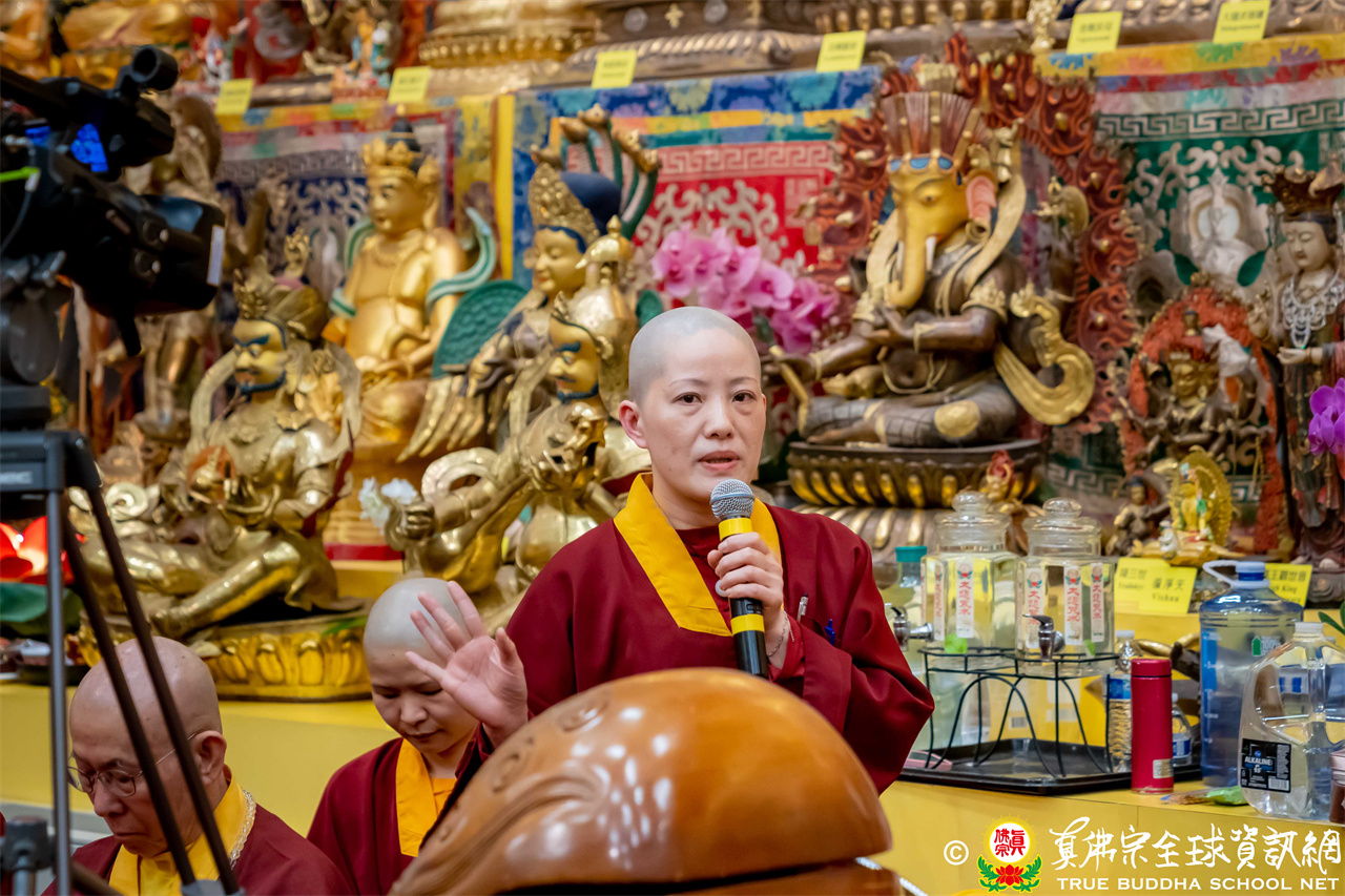 在修法結束後,聖尊先預祝大家Merry Christmas and Happy New Year,接著開示說,大準提佛母的法是皈依師父普方上師的傳承,準提佛母在東密是非常盛行的主尊,早年遊歷印度時,也看過耆那教遊行隊伍中有準提佛母的金身。由於祂的法力非常高強,在密教裡可以作為本尊或護法。