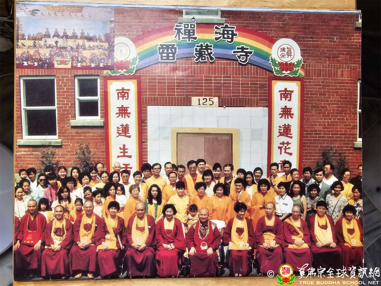 在唐人街,每逢風和日麗的夏天,黃珍予師姐、李雅珍師姐、蔡芬香師姐…等帶領著同門在街頭擺攤,發宣傳單。也在中山公園廣場舉辦護摩大法會,由葉毓仁師兄帶領團隊搭建臨時道場,蓮實上師主壇、益民法師(故蓮花益民上師)護壇,吸引無數的信眾駐足圍觀。