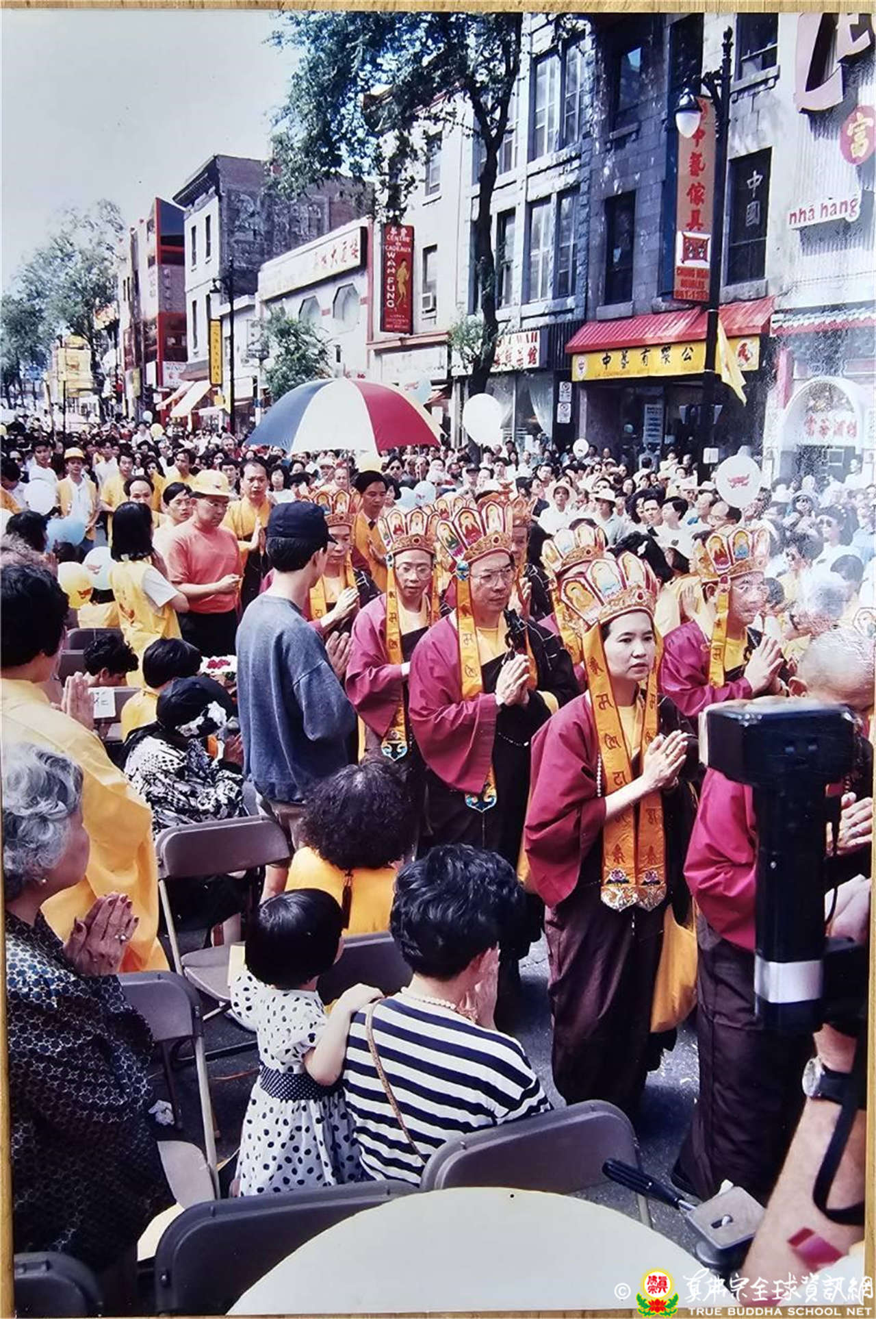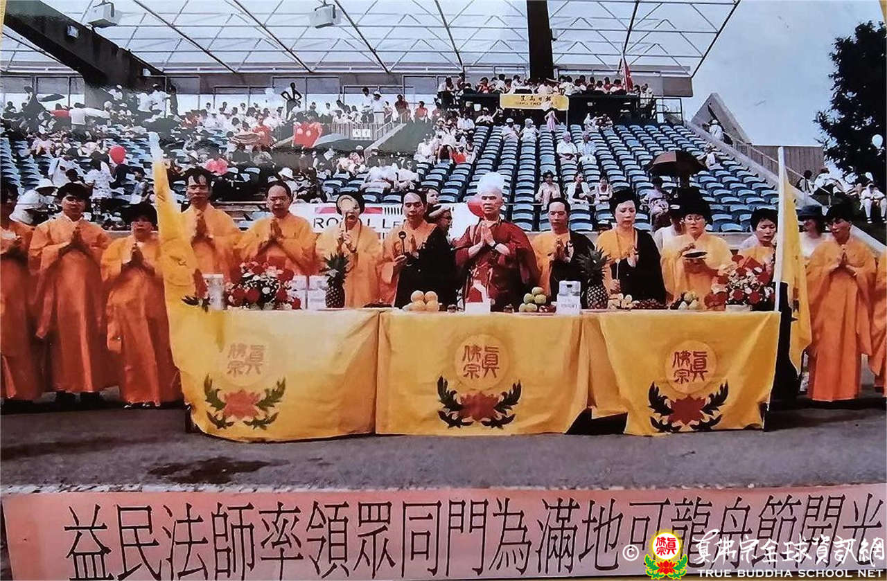 25日下午3點在根本上師在唐人街聖羅倫大道(Boul.St-Laurent)主持中陰身超度大法會,是日萬里晴空,達官顯要冠蓋雲集,來自各地的人潮大量湧入,萬人空巷大轟動,當場接受皈依灌頂多達七百餘人,當地政府特別為這場法會管制封街、派出交通警察維護秩序。當地最大法文報與華人各大報,皆於頭版報導本次法會大場面實況。真佛報第40期頭條新聞寫下「聖羅倫大道,史無前例,露天大法會,萬人空巷,舉城震撼。」
