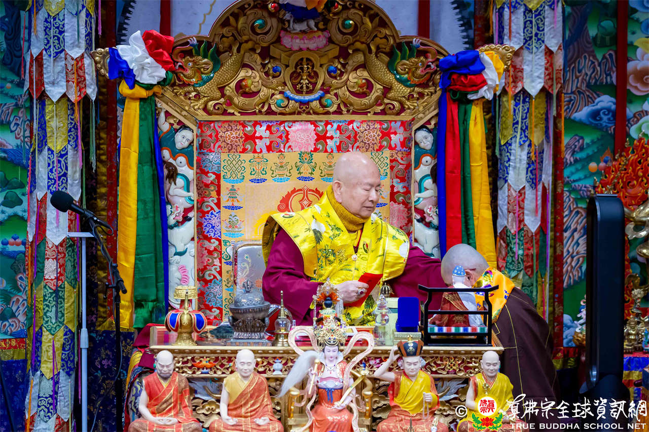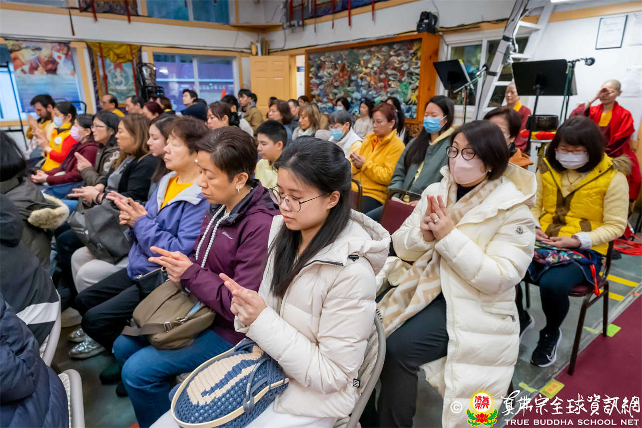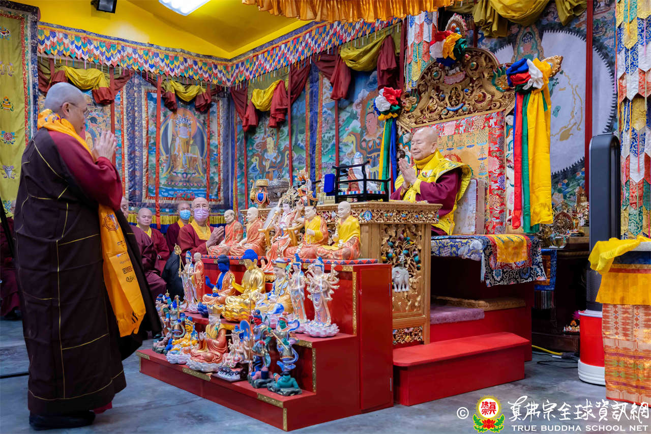 法王開示結束,大衆報以熱烈掌聲感恩。接著法王與zoom上弟子問候,並為與會大衆賜予瑤池金母法總灌頂,法會至此圓滿結束。