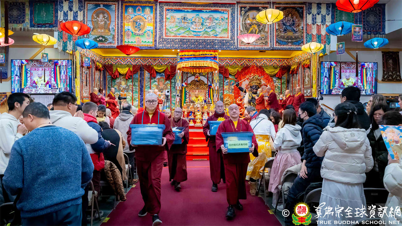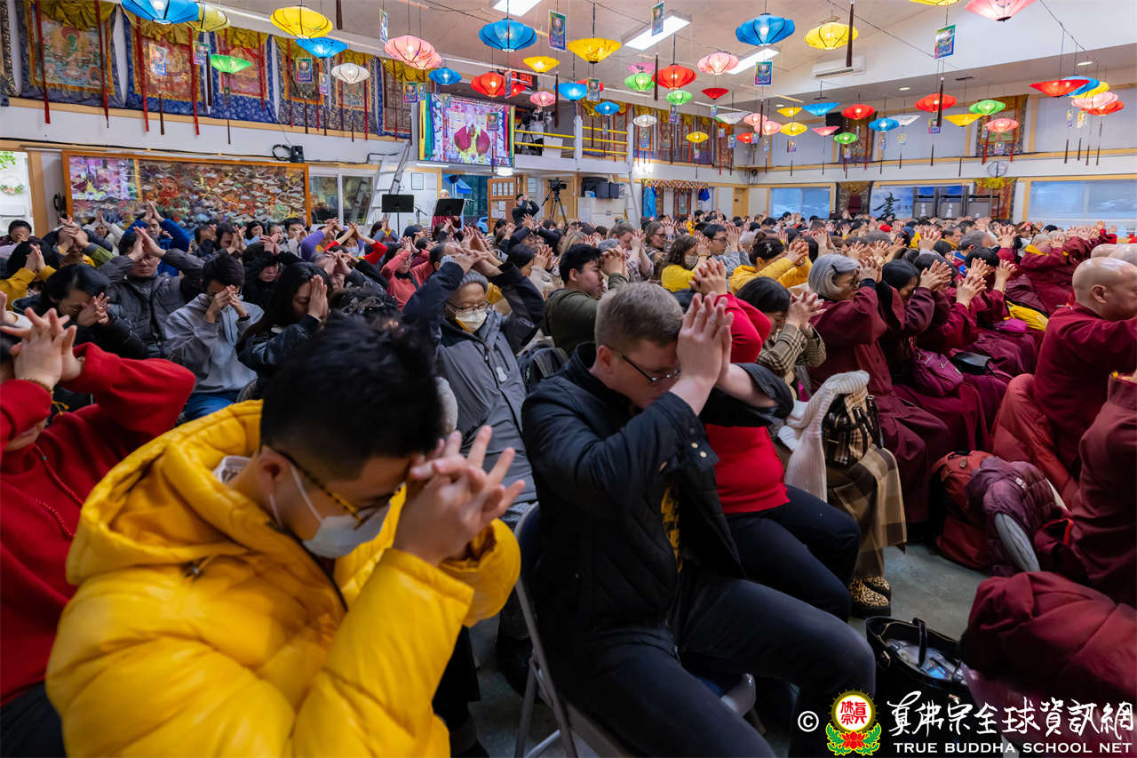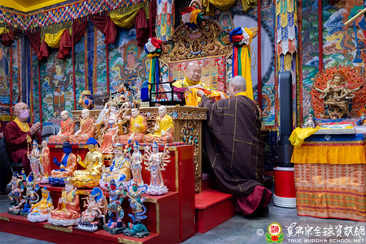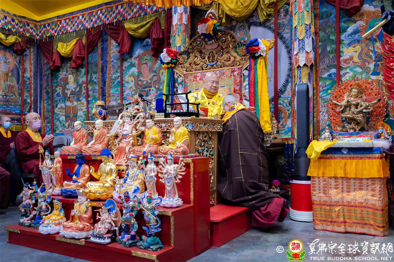 法王開示結束,大衆報以熱烈掌聲感恩。接著法王與zoom上弟子問候,並為與會大衆賜予瑤池金母法總灌頂,法會至此圓滿結束。