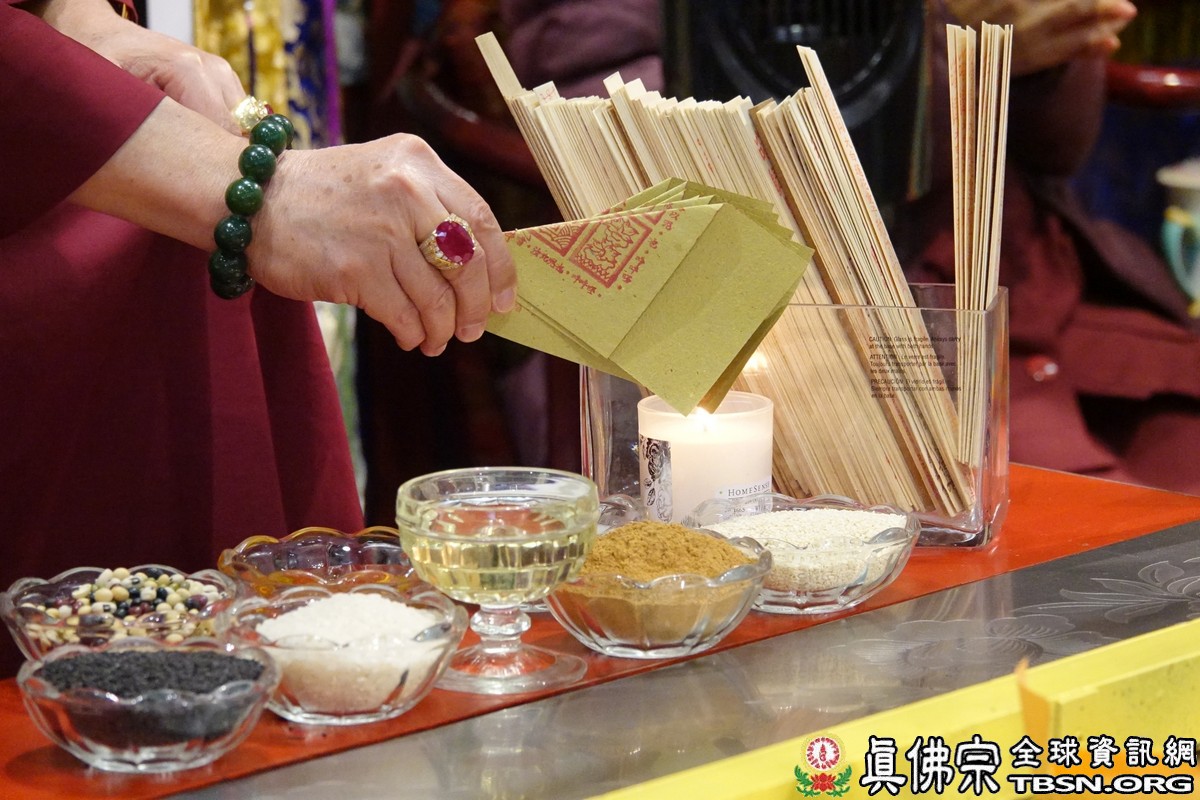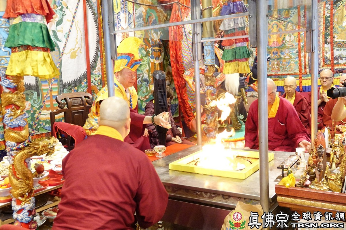 下午二點三十分,釋迦摩尼佛大法會正式拉開序幕,師尊點燃護摩火,頓時熊熊火焰沖天,咒音攝人心魄,與會大眾齊誦「釋迦摩尼佛心咒」,手結「釋迦摩尼佛手印」,覌想在烈焰中與釋迦摩尼佛、火天神合一,進入火光三昧。師尊在火光中演化息災、增益、敬愛、超度大手印,在陣陣法流的加持下,祈望能夠除一切的業障,煩惱。
