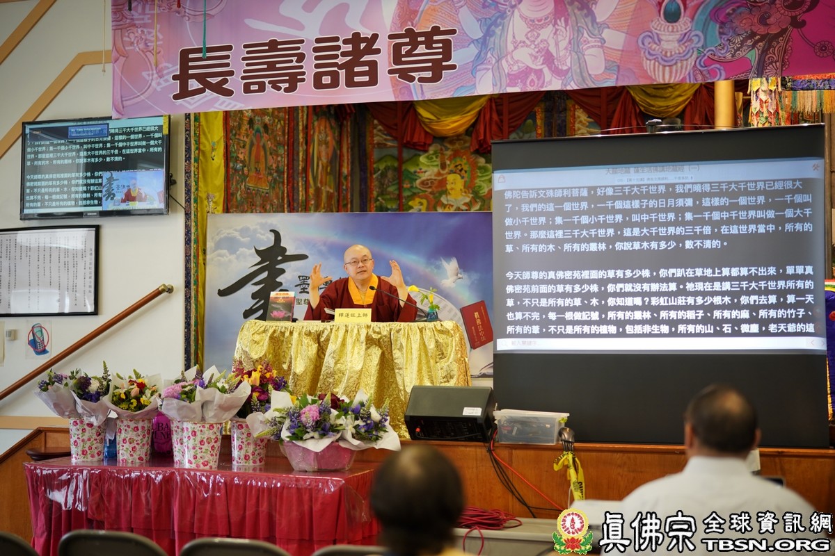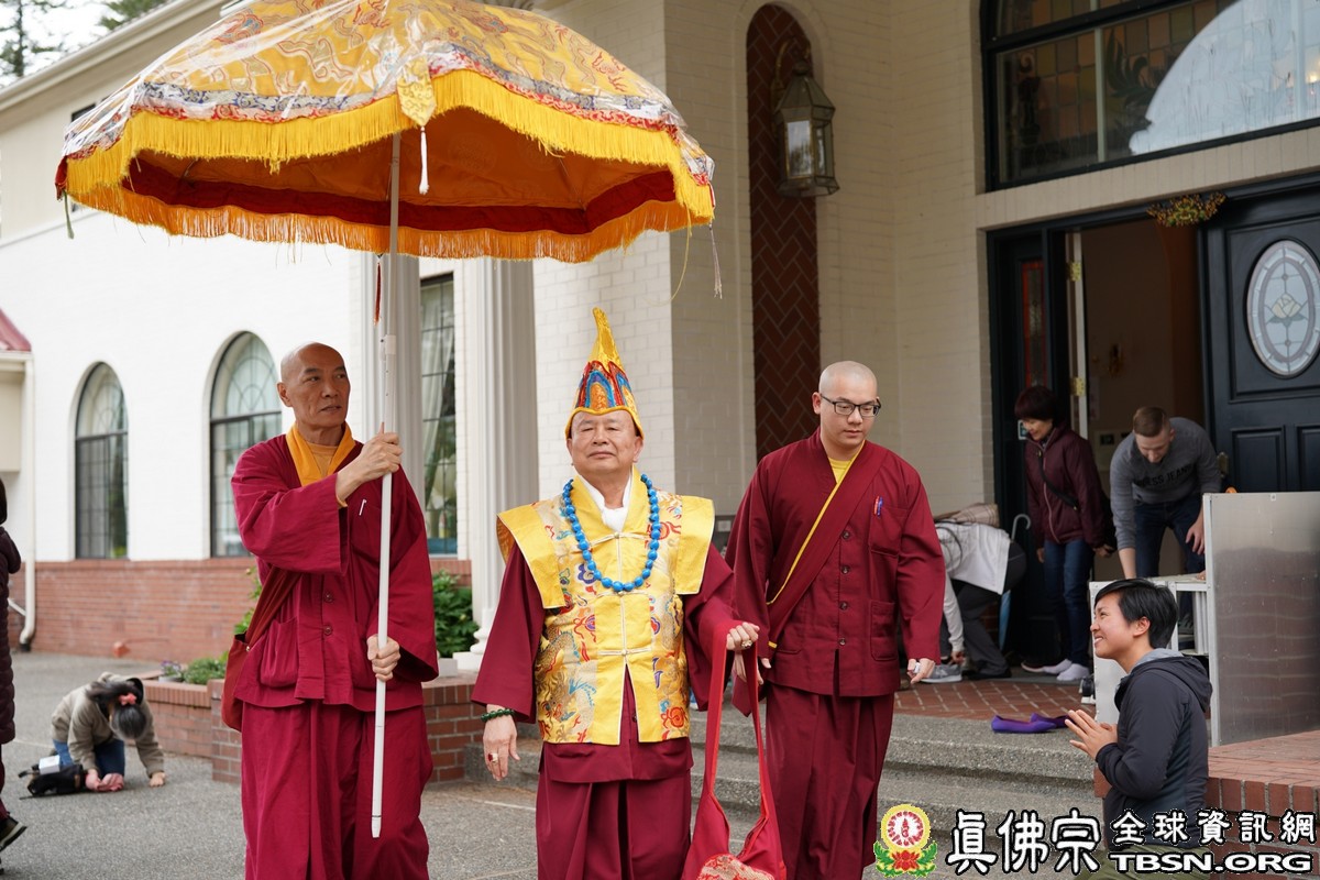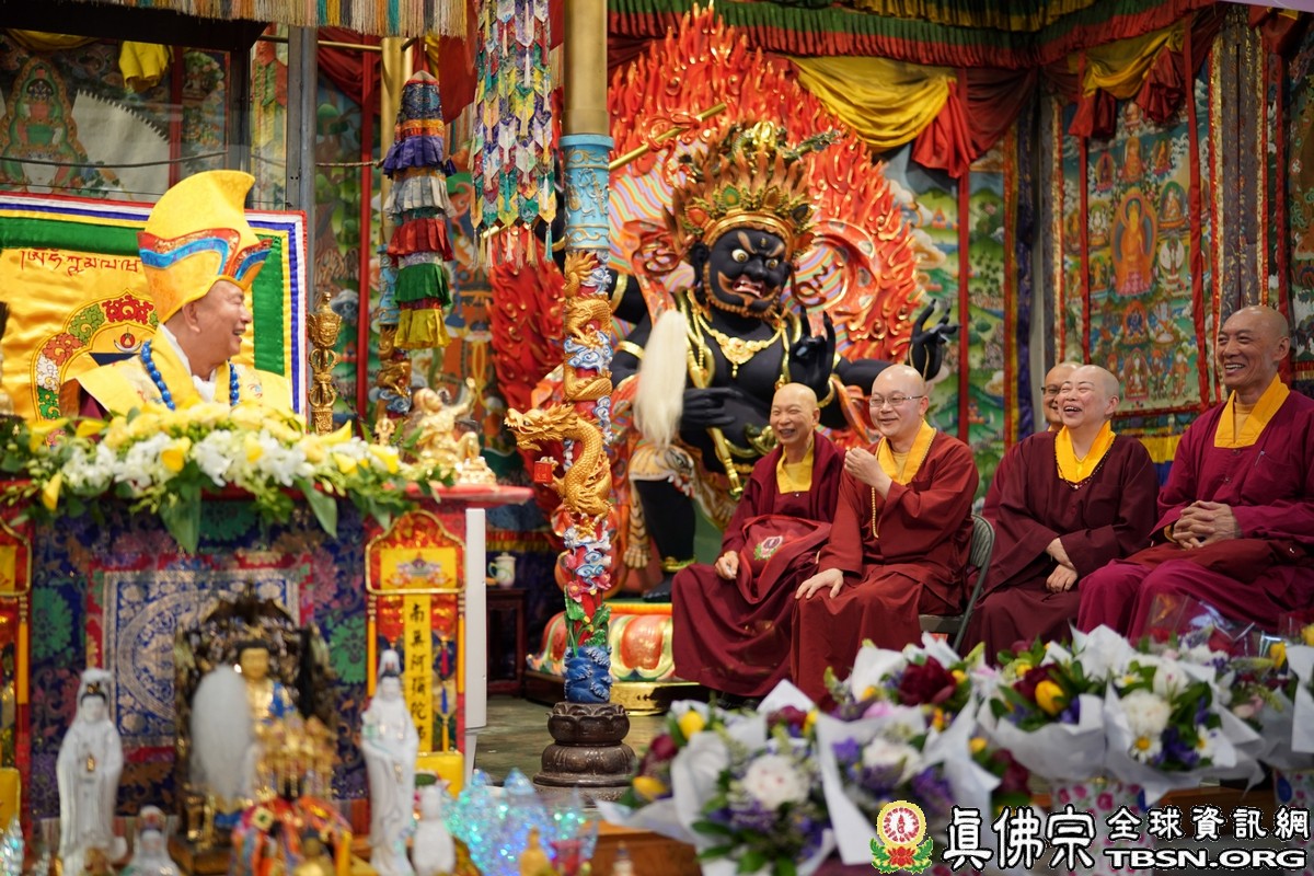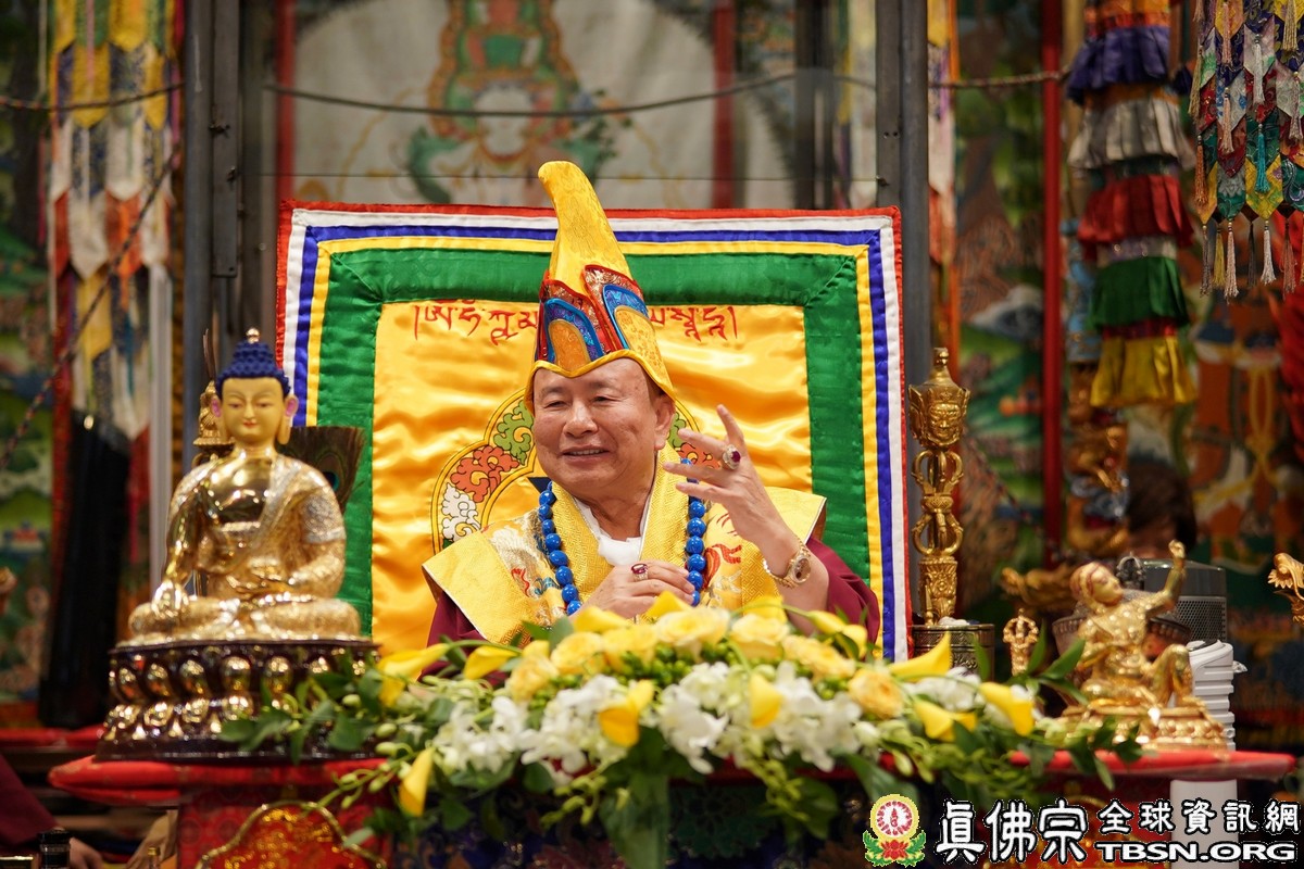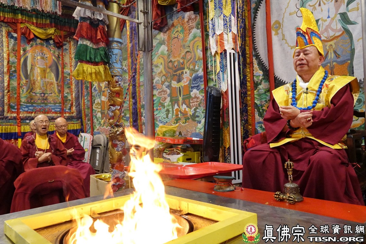 莊嚴殊勝的火供過後,師尊開示,昨天浴佛,今日做「釋迦牟尼佛」護摩火供,很好,很圓滿。當年,釋迦牟尼佛於菩提樹下證悟後,欲入涅槃,是大梵天王及帝釋天勸請佛陀慈悲住世,大轉法輪。釋迦牟尼佛才在娑婆世界三轉法輪 :苦輪、 集輪、 滅輪。一轉法輪教導眾生「苦當知」,知道人間有生、老、病、死苦、愛別離苦、怨憎會苦、求不得苦,活在這世界上的都是煩惱及痛苦,快樂只是暫時的。在第二轉法輪時,再教導眾生把苦及苦因全部集合起來斷掉,就是「集應斷」,就是要斷苦。 第三轉法輪時,教導眾生「滅應證」,證到所有的苦通通消滅。最後,「道應修」,要修「道」,修行成功了,才能證明「滅」,斷除所有的苦,才能離苦得樂,產生極樂。