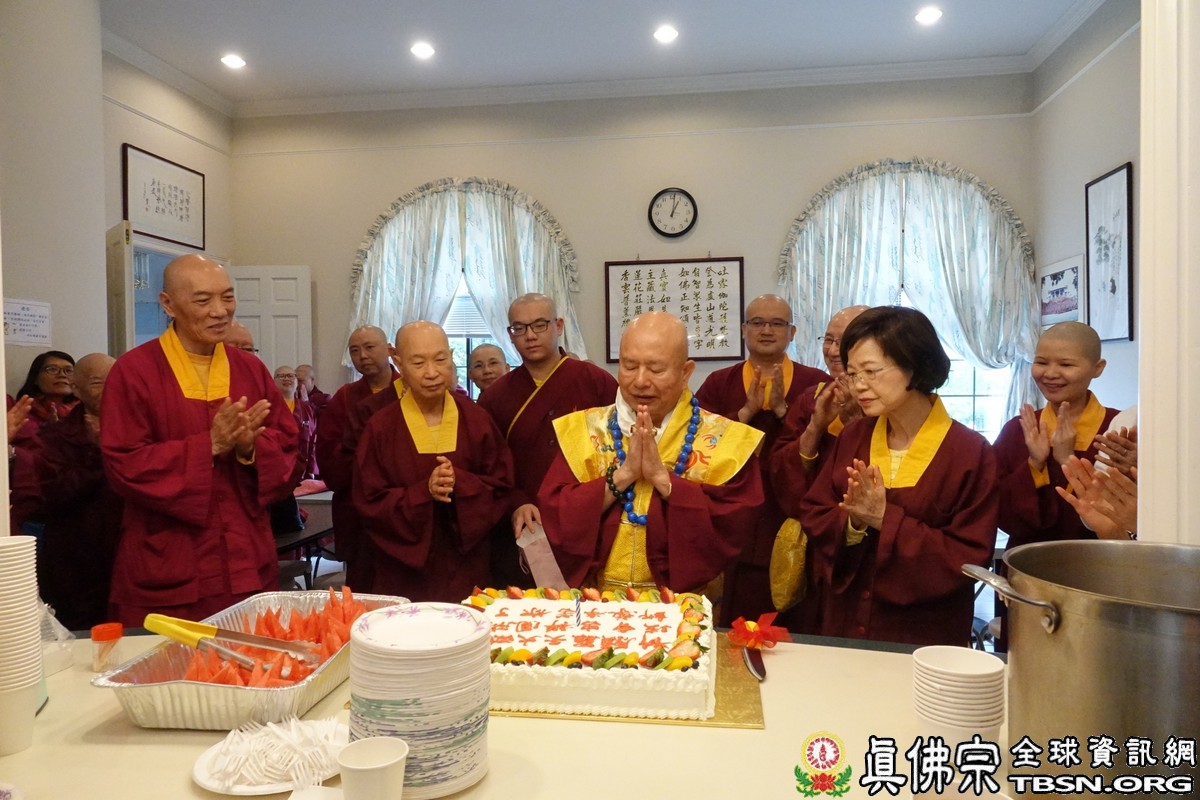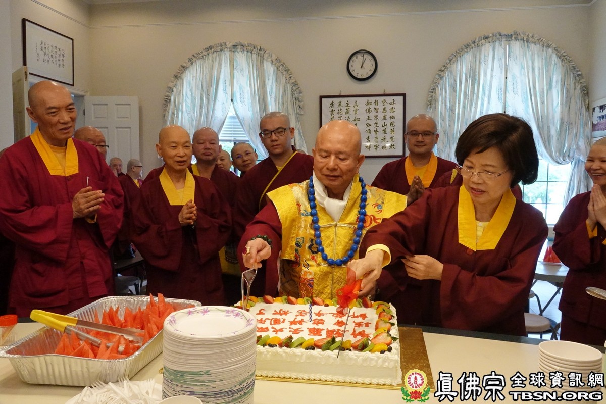 隨後,師尊,師母進入山莊大殿,伴隨著一聲聲「師尊好!師母好!」的溫馨問候,師尊帶領弟子進入大殿壇城、金剛明王殿,恭敬地行大禮拜禮佛,再與弟子們一起共進午餐。師尊先帶領大家做「真佛大供養」,此次用餐的人並不多,因此更拉近了弟子與師佛的距離。師徒們在喜悅的氣氛中用餐,聆聽師尊餐後的暢談,偶爾大家一起開懷大笑,共度美好的午餐時刻。