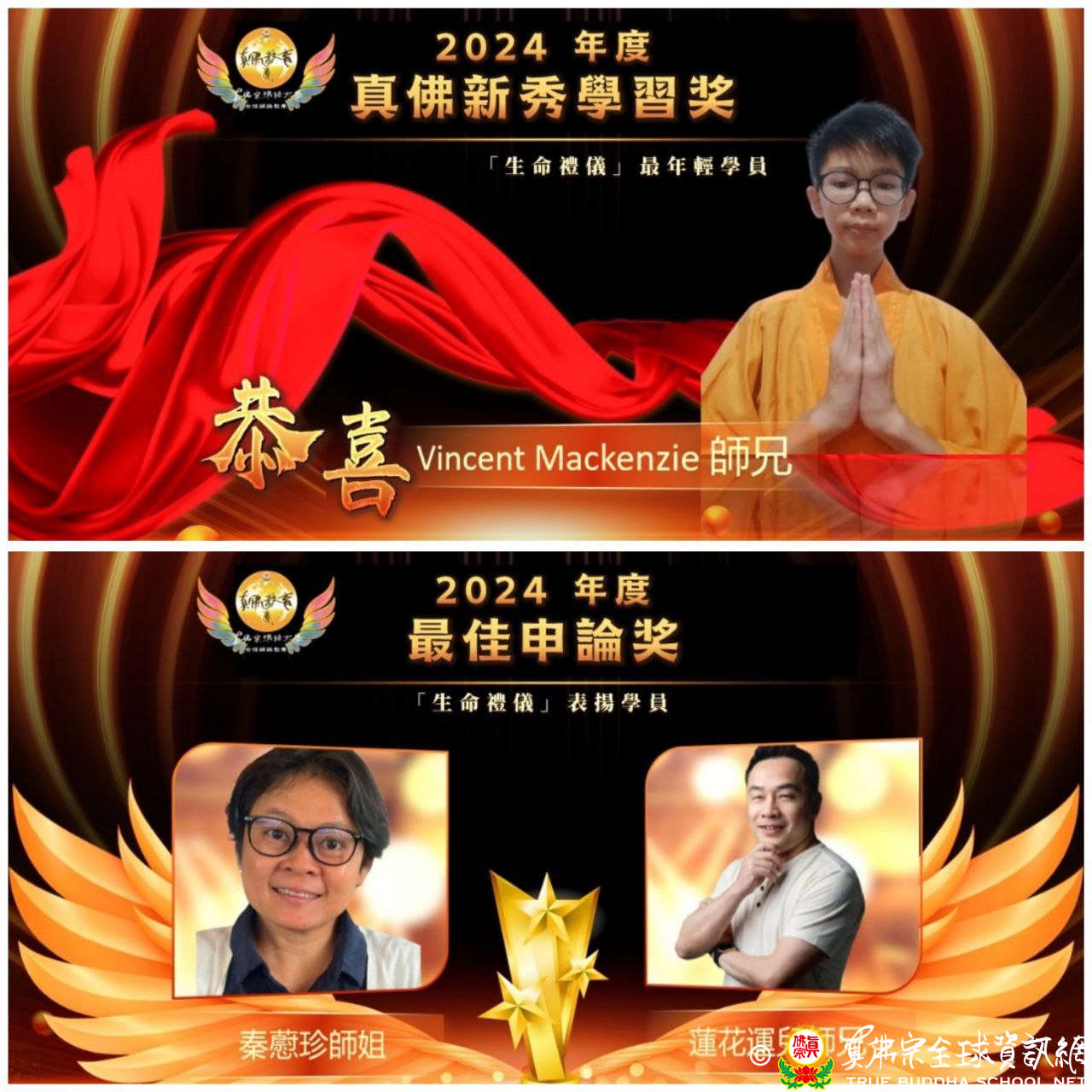 真佛新秀學習獎: Vincent Mackenzie。小師兄年僅13歲,認真學習成功結業。是網路大學開課以來年紀最小的學員。