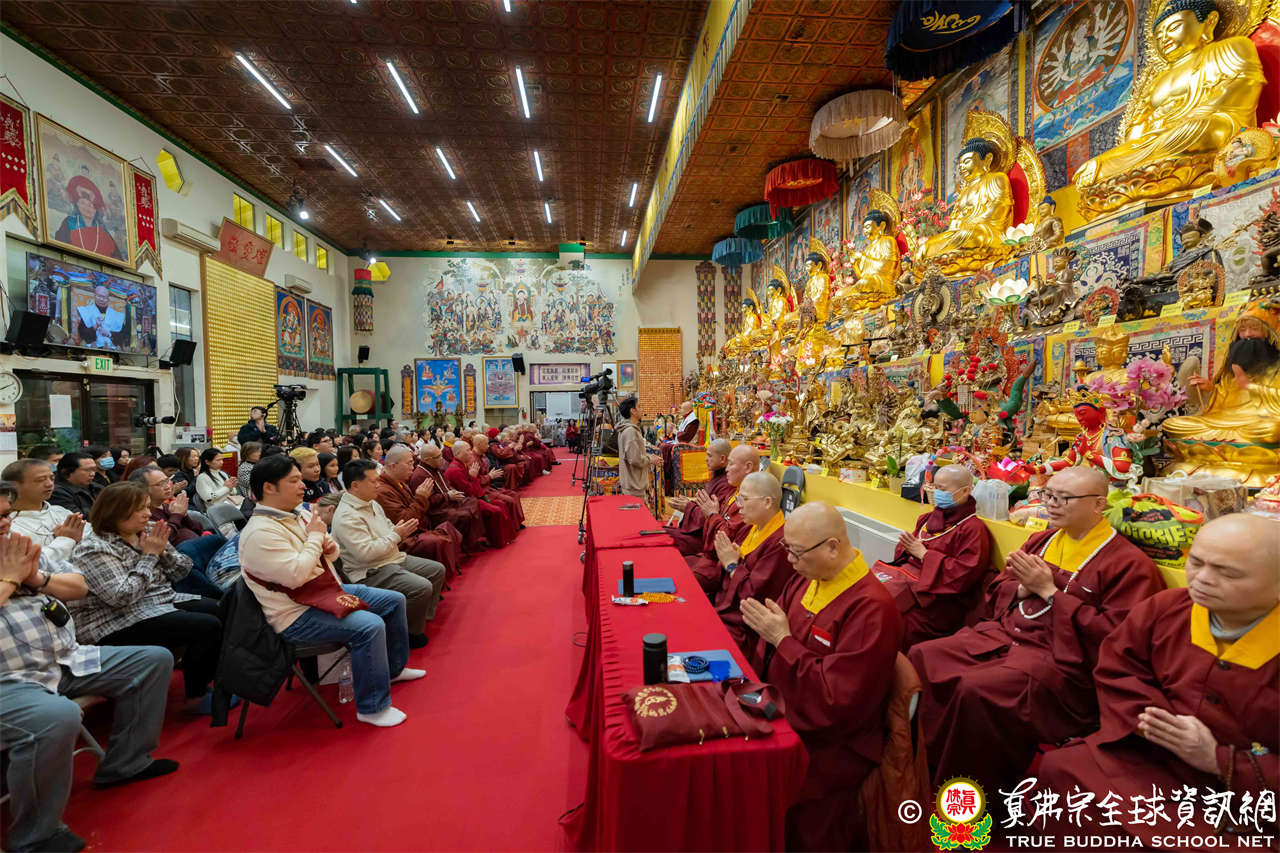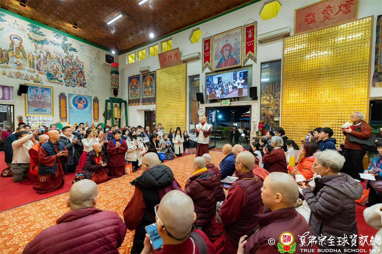 2025年1月11日聖尊蓮生活佛盧勝彥於西雅圖雷藏寺主持蓮花童子本尊法的同修,大眾虔敬禮拜、誦經、持咒、入定、回向,不論是在現場或是網路上觀看直播,個個皆領受來自聖尊與佛菩薩慈悲的加持,同修圓滿吉祥。隨後播放真佛般若藏的新書影片,預告聖尊最新著作第303冊《凡塵的小叮嚀》將於1月20日全球發行。