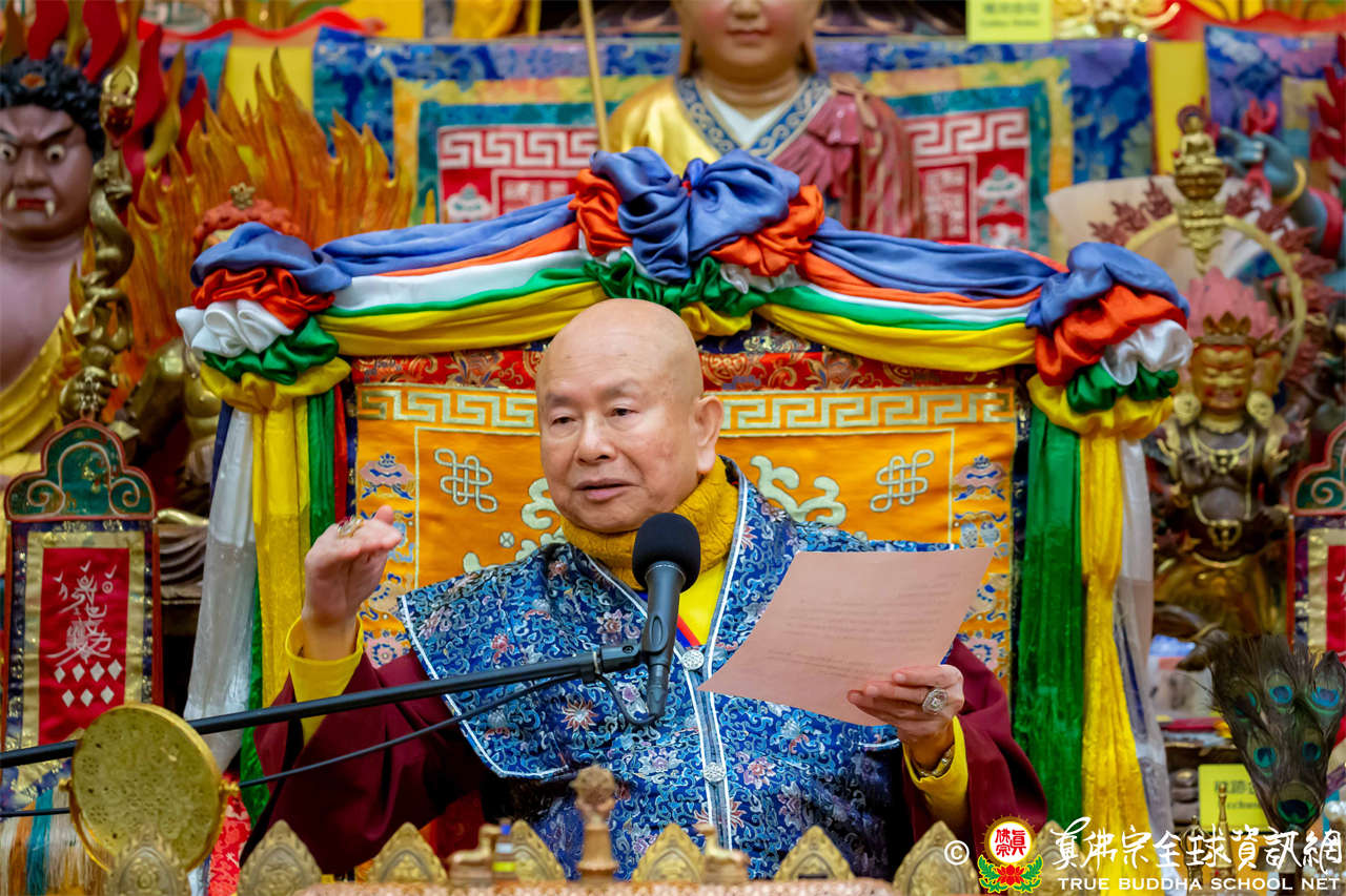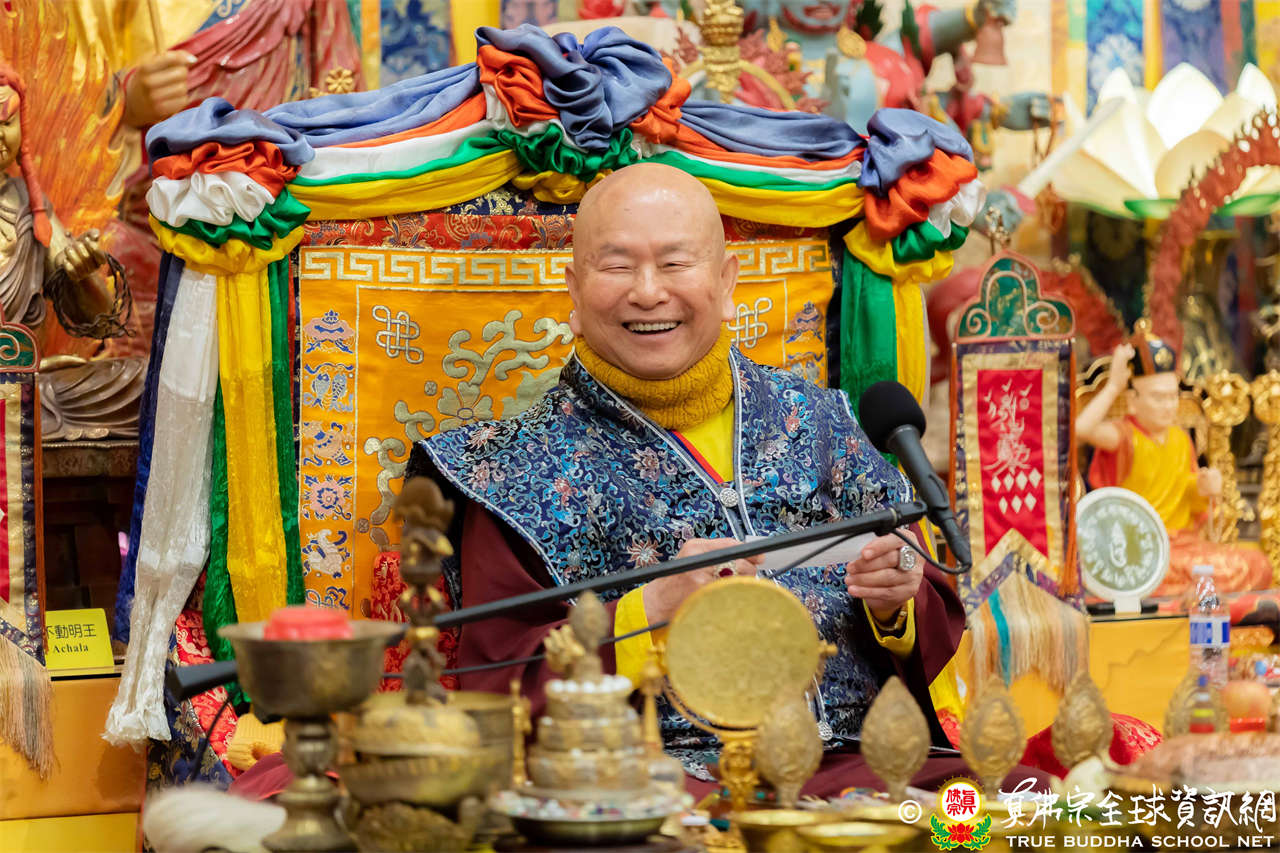 同修完後,播放真佛般若藏所製作的介紹聖尊第303本著作《凡塵的小叮嚀》影片。聖尊看後開示,剛才影片裡提到了淨信,我們這次大法會,就是用淨信來向藥王度母祈求,大家跟著我一起祈禱,包括看網路的,世界各地的弟子都一起來祈禱,一定要請藥王度母施下祂的甘露,相信祂會幫助我們,賜予我們甘露,解除眾生的病苦。