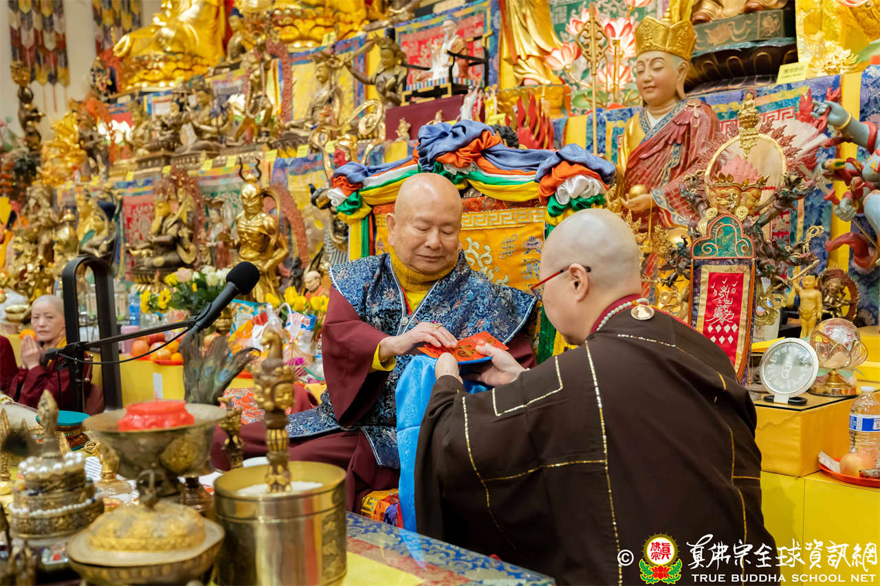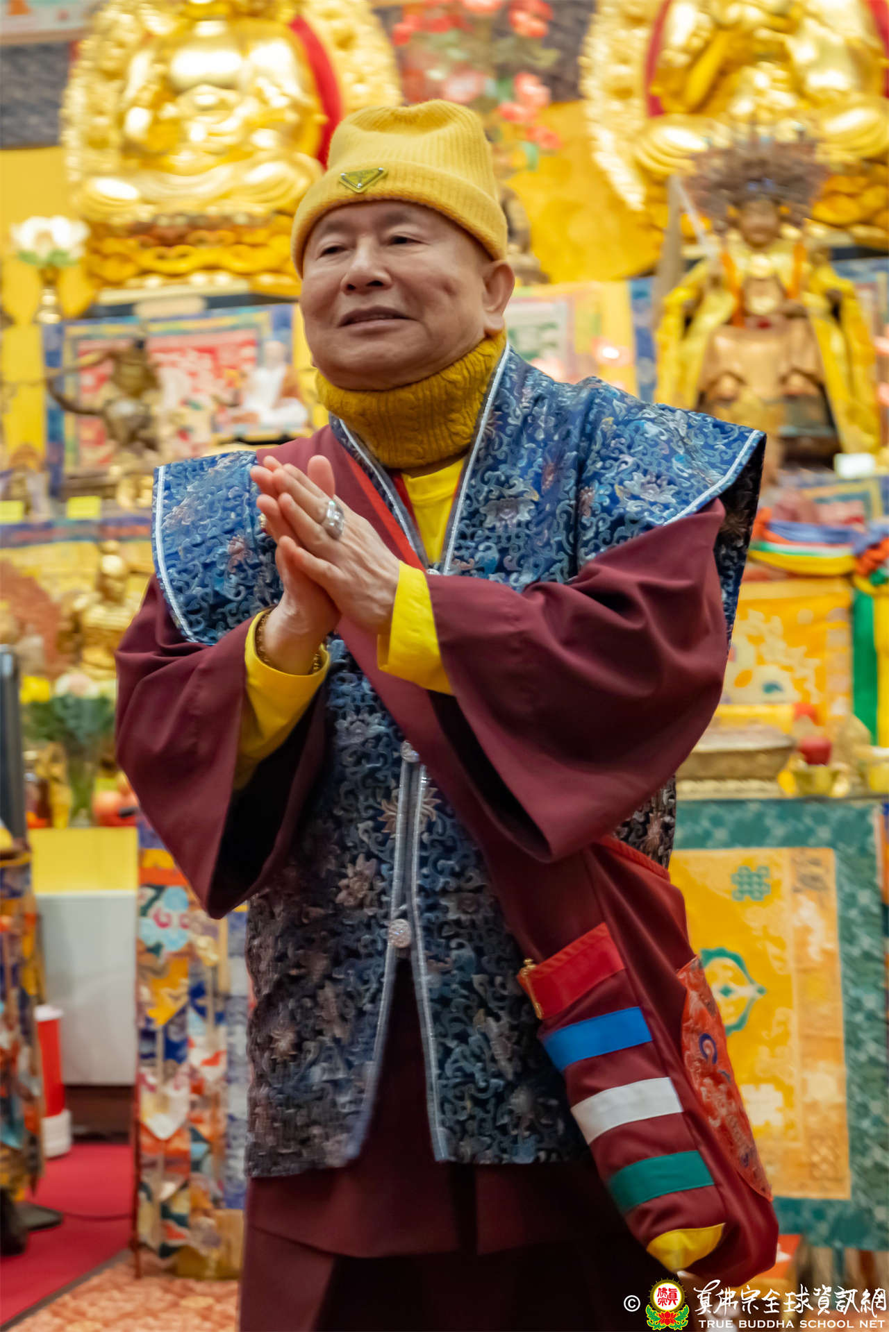 2025年1月18日,西雅圖雷藏寺大雄寶殿裡,蓮生活佛盧勝彥帶領來自世界各地的四眾弟子,同修藥師琉璃光王佛本尊法。聖尊祈請藥師琉璃光王佛加持大衆身體健康、疾病消除、息災、增益、降伏、敬愛皆得圓滿、修法成就。