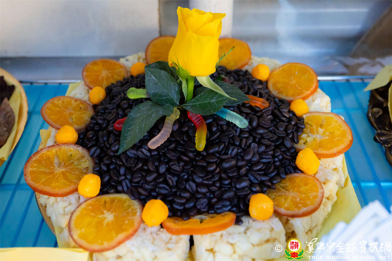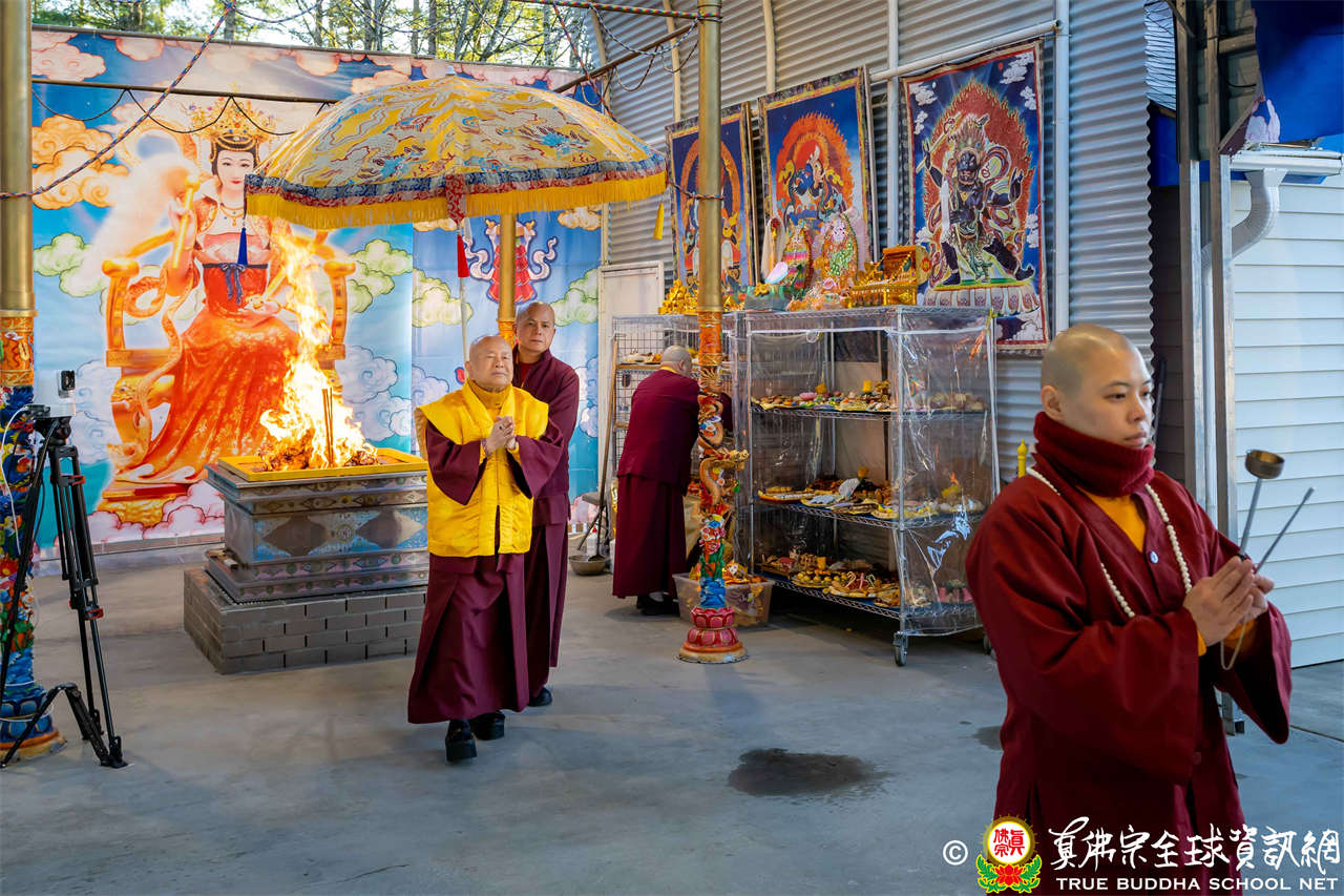 今天的護摩主尊是瑤池金母。沒有瑤池金母,就沒有盧師尊,沒有盧師尊,就沒有真佛宗。在護摩壇的這一尊瑤池金母的唐卡跟供在前面的瑤池金母是天女型的瑤池金母,祂的眼神非常的慈悲。我們真佛宗的瑤池金母是天女型的,是最美麗最年輕的,這是我們True Buddha School的特色。