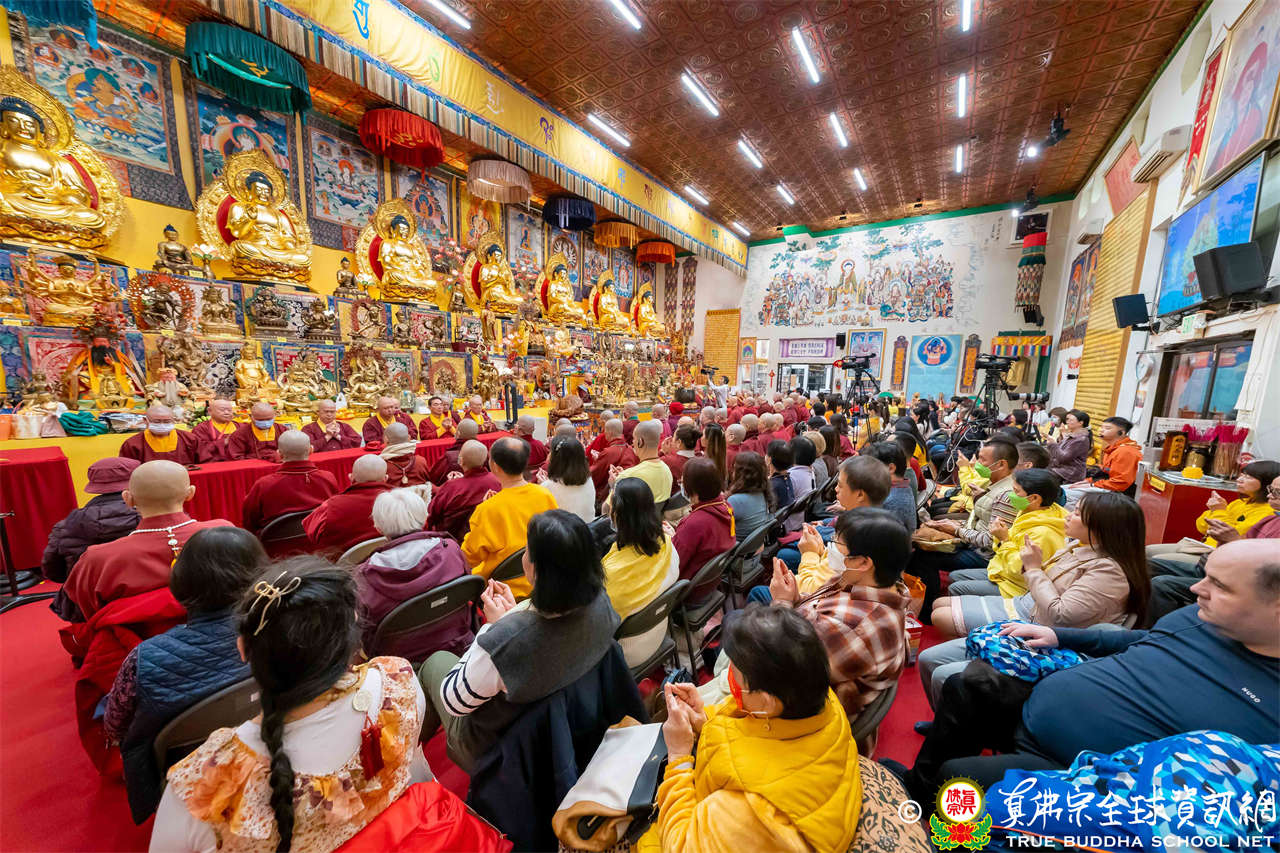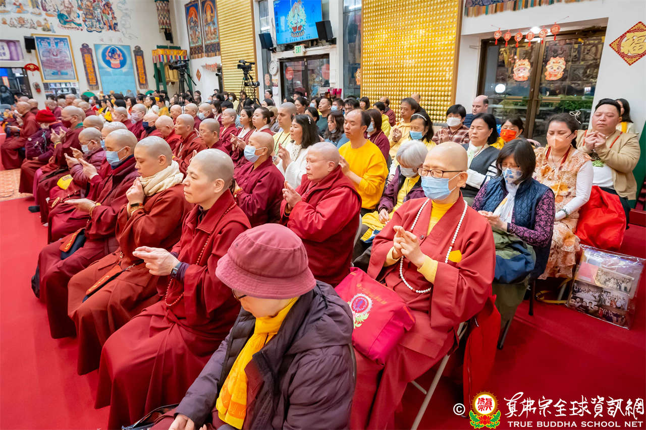 初春微雨中,西雅圖雷藏寺大雄寶殿裡,聖尊蓮生活佛盧勝彥帶领來自世界各地的四衆弟子,同修準提佛母本尊法。聖尊祈請準提佛母加持大衆身體健康、萬事如意、修行成就圓滿。
