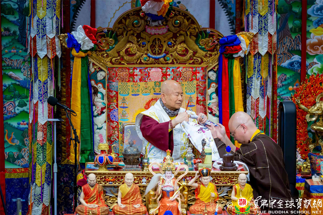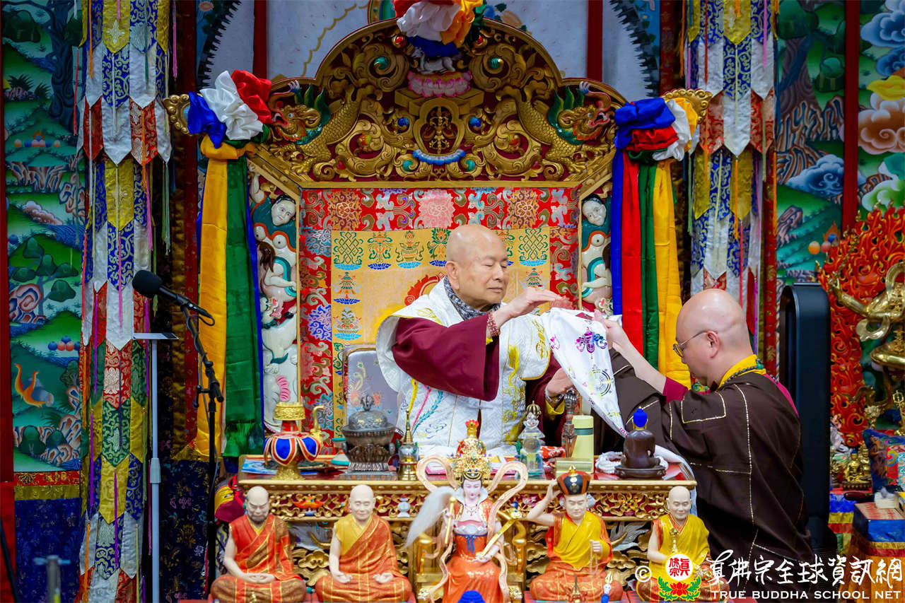 開示結束後,法王慈悲賜授現場與會「大白蓮花童子法」灌頂,,法會在此圓滿結束。