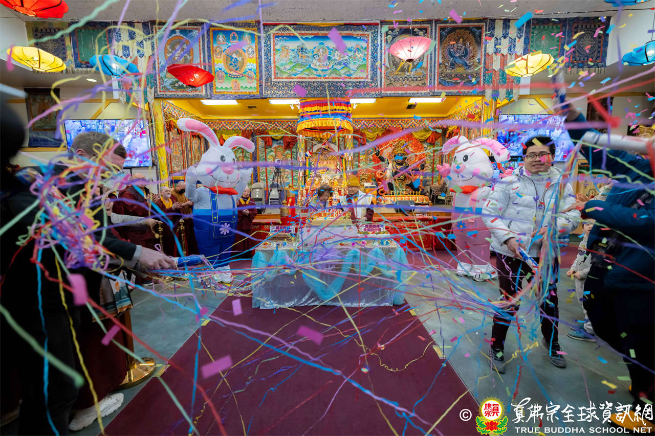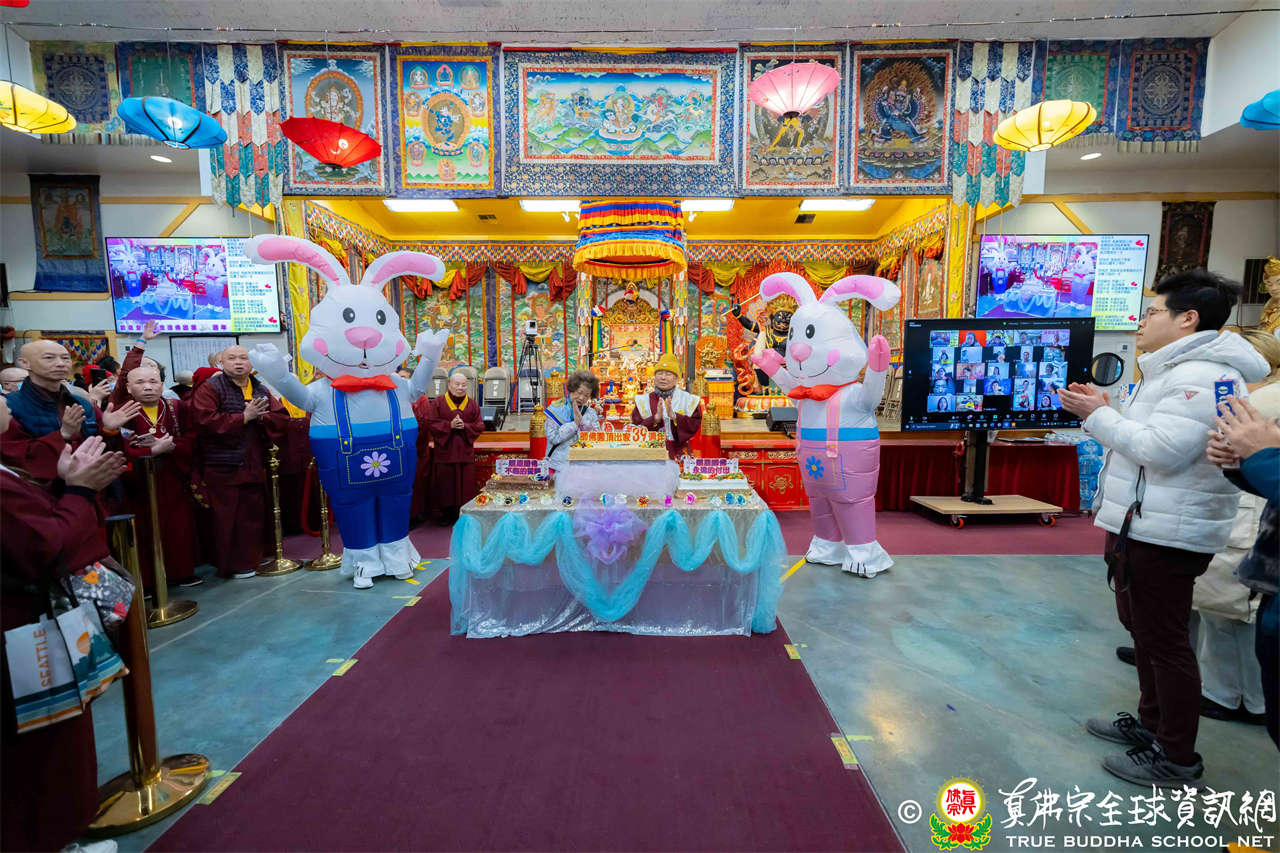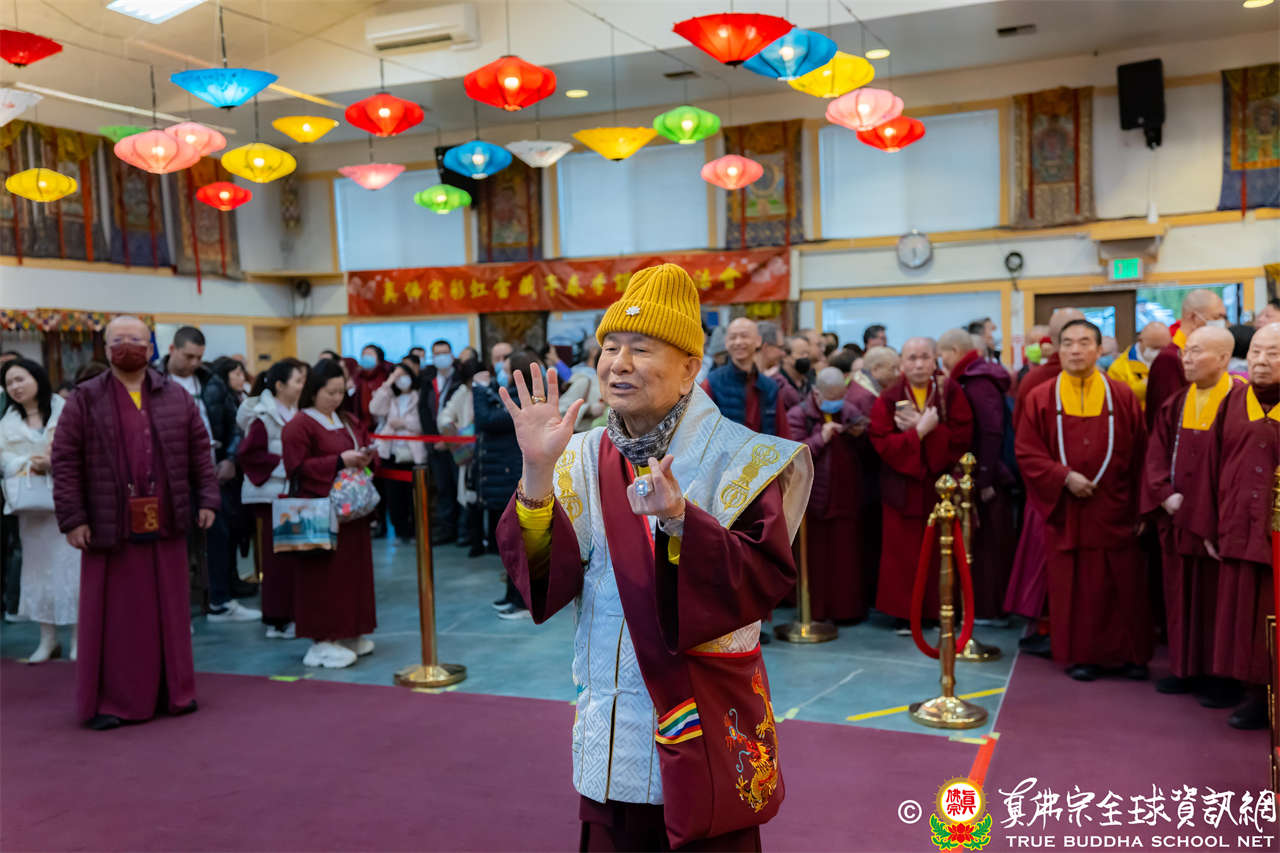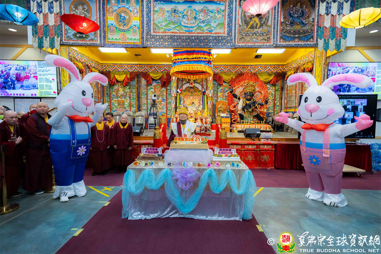 2025年3月9日,西雅圖彩虹雷藏寺恭請聖尊蓮生法王主壇蓮花童子護摩法會。當天適逢農曆二月初十,亦是法王出家39週年的紀念日。護摩儀式結束後,現場播放由宗委會製作的出家39年紀念影片,隨後,法王更即興唱起印尼文生日歌,為這特別的日子增添歡樂氛圍。