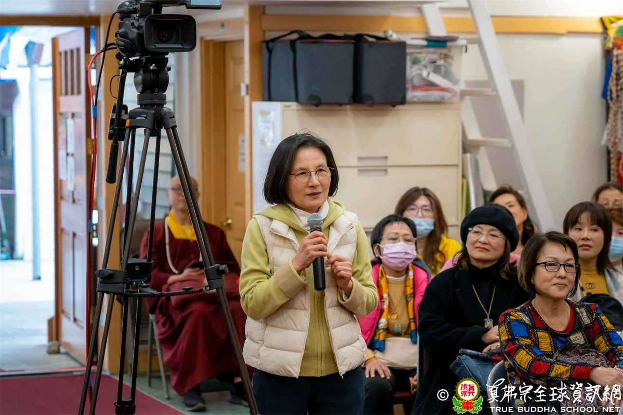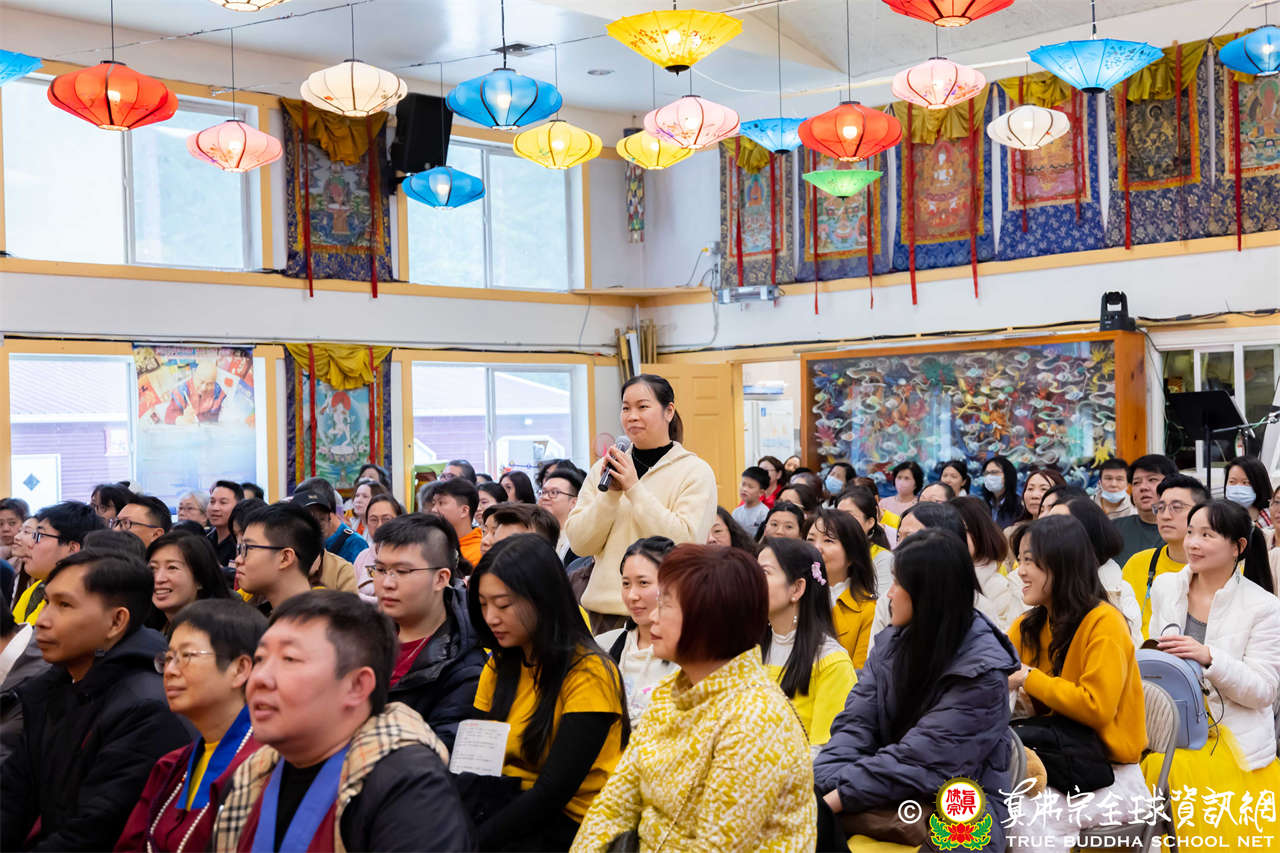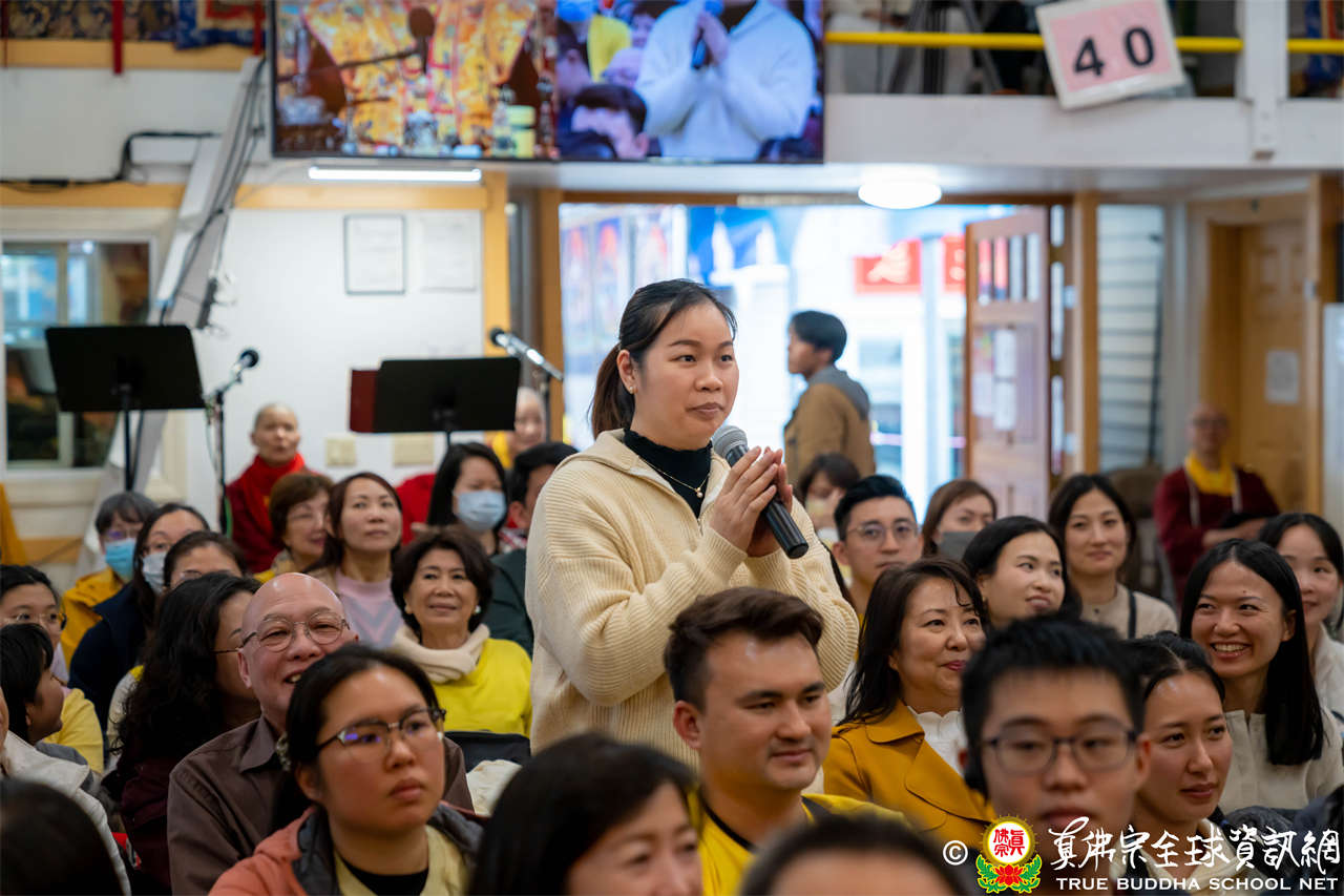 法王講解楞嚴經至此,接著又邀請現場數位見證法王法身者作分享。其中有來自巴拿馬、印尼、臺灣的同門現場分享見證,其中一位得法王指出,是法王前世在日本的侍者,令人嘖嘖稱奇!