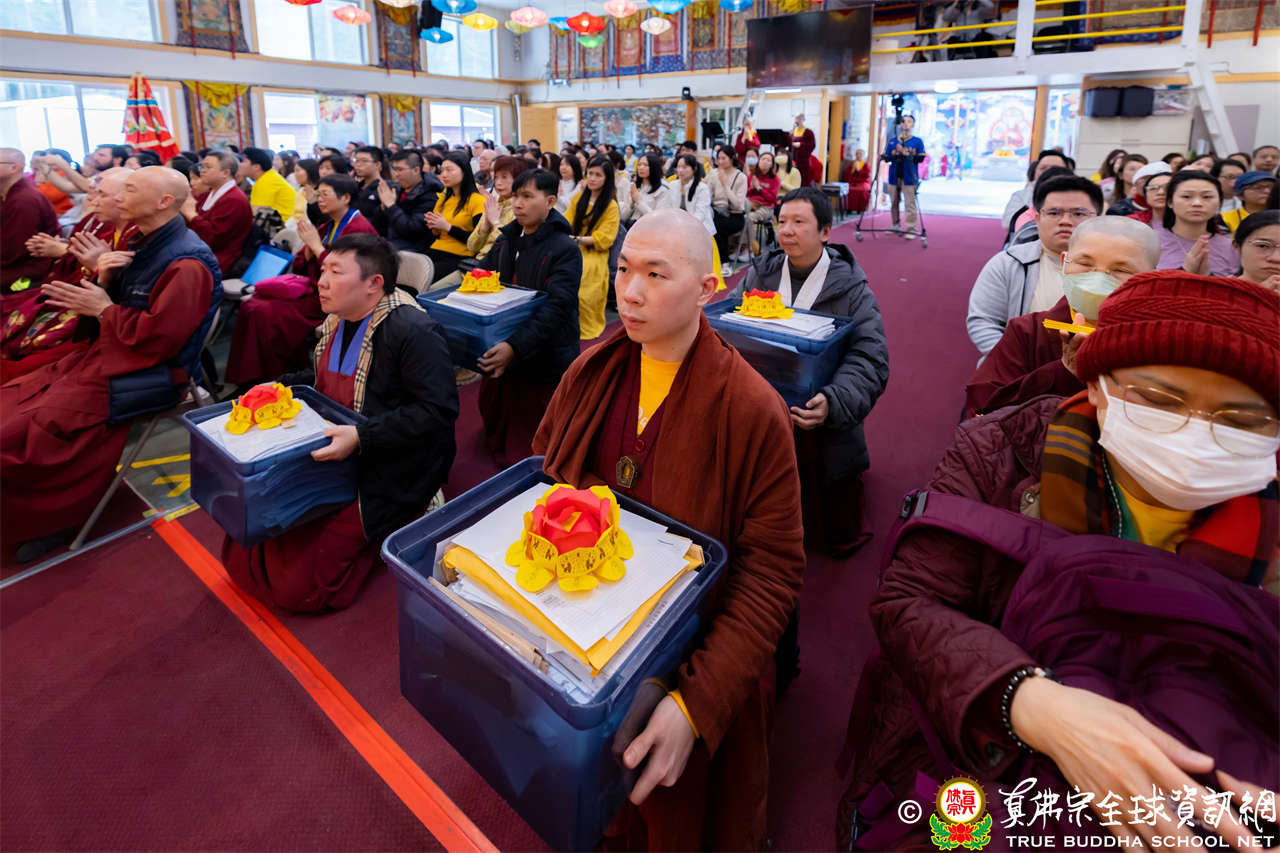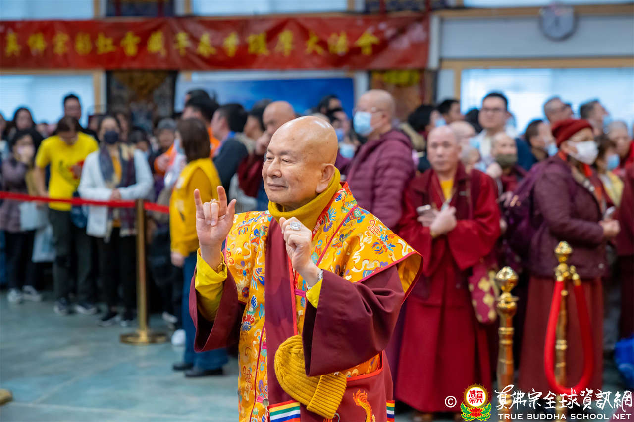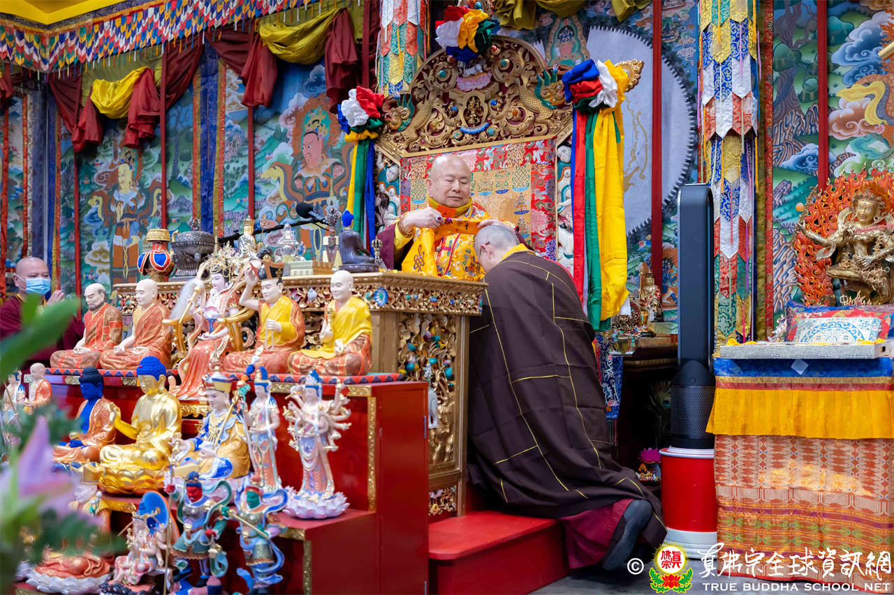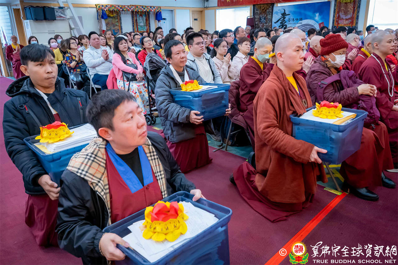 法王開示畢,衆人報以熱烈掌聲感謝。接著法王下座與線上上弟子互相問候,並為與會大衆賜授地藏菩薩法灌頂。法會至此圓滿結束。