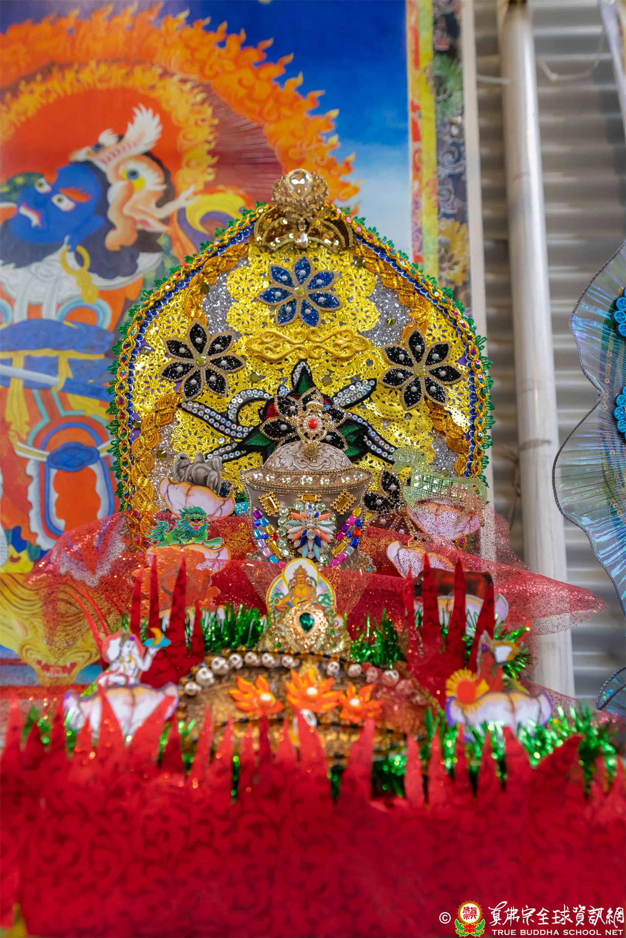 「西方蓮池海會。摩訶雙蓮池。十八大蓮花童子。白衣聖尊。紅冠聖冕金剛上師。主金剛真言界秘密主。大持明第一世靈仙真佛宗。盧勝彥密行尊者。