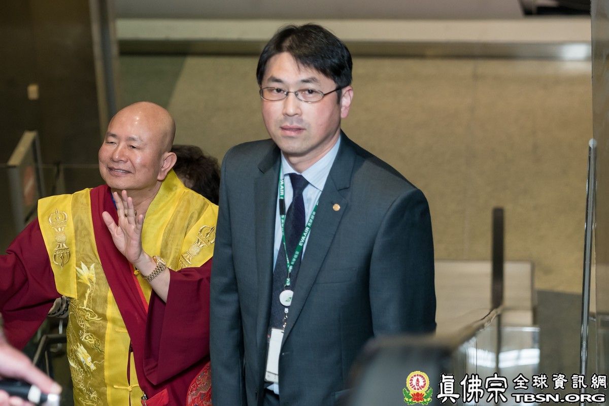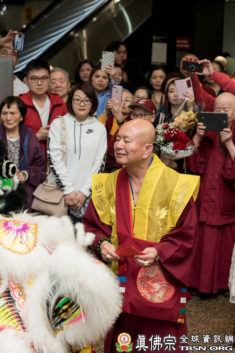 當師尊、師母出現的那一剎,激動的心、熱烈的掌聲,感覺血是沸騰的,心是高漲的。師尊、師母那熟悉的慈愛笑容、親切的問候,讓大家久久感動不已。廖東周大使伉儷,也聯袂特地從加州趕到西雅圖機場來迎接師尊、師母,西雅圖中國城的麥顯輝師父也親自領了醒獅隊,在機場敲鑼打鼓、舞動雄獅。許多機場的旅客都駐足觀望,甚至拿手機拍照錄影,有幸見聞這親切熱鬧的場面。