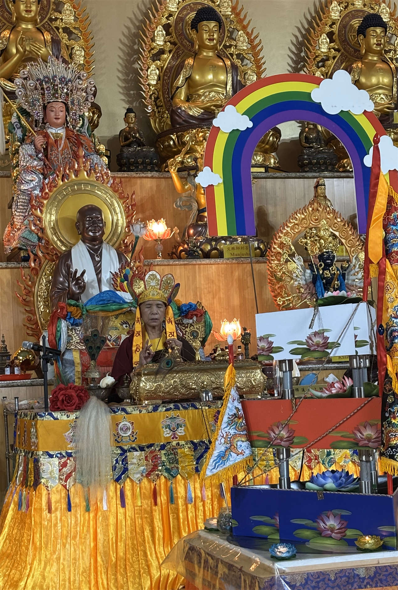 美國三輪雷藏寺於2025年6月1日啟建「瑤池金母水供」共同迴向祈願 根本上師聖尊蓮生活佛 佛體安康、長壽自在、大轉法輪。