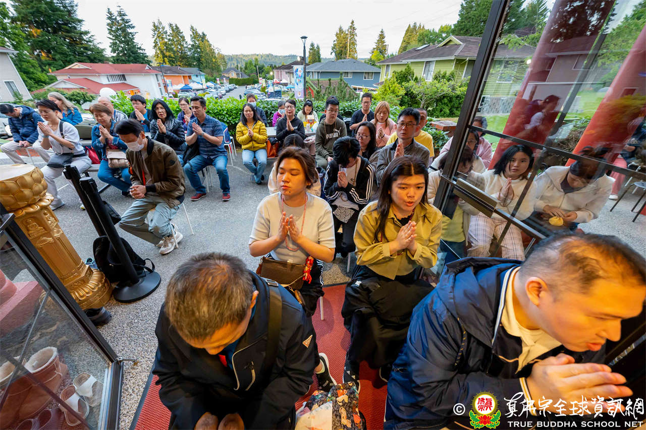 真佛密苑草坪旁,展出聖尊蓮生活佛盧勝彥的畫作,其中一幅「夏日的清涼」,恰巧應了從聖尊生日6月13日以來的涼爽天氣!6月14日週末,西雅圖雷藏寺舉行地藏王菩薩本尊法同修活動,來自愛爾蘭、台灣、香港、印尼、馬來西亞、新加坡、越南、泰國、柬埔寨、澳洲、英國、西班牙、法國、加拿大、巴西、巴拿馬,及美國本土的同門善信,一同在舒適的天氣中與聖尊同修,雖然大雄寶殿裡擠得水洩不通,但大家內心歡喜不已。