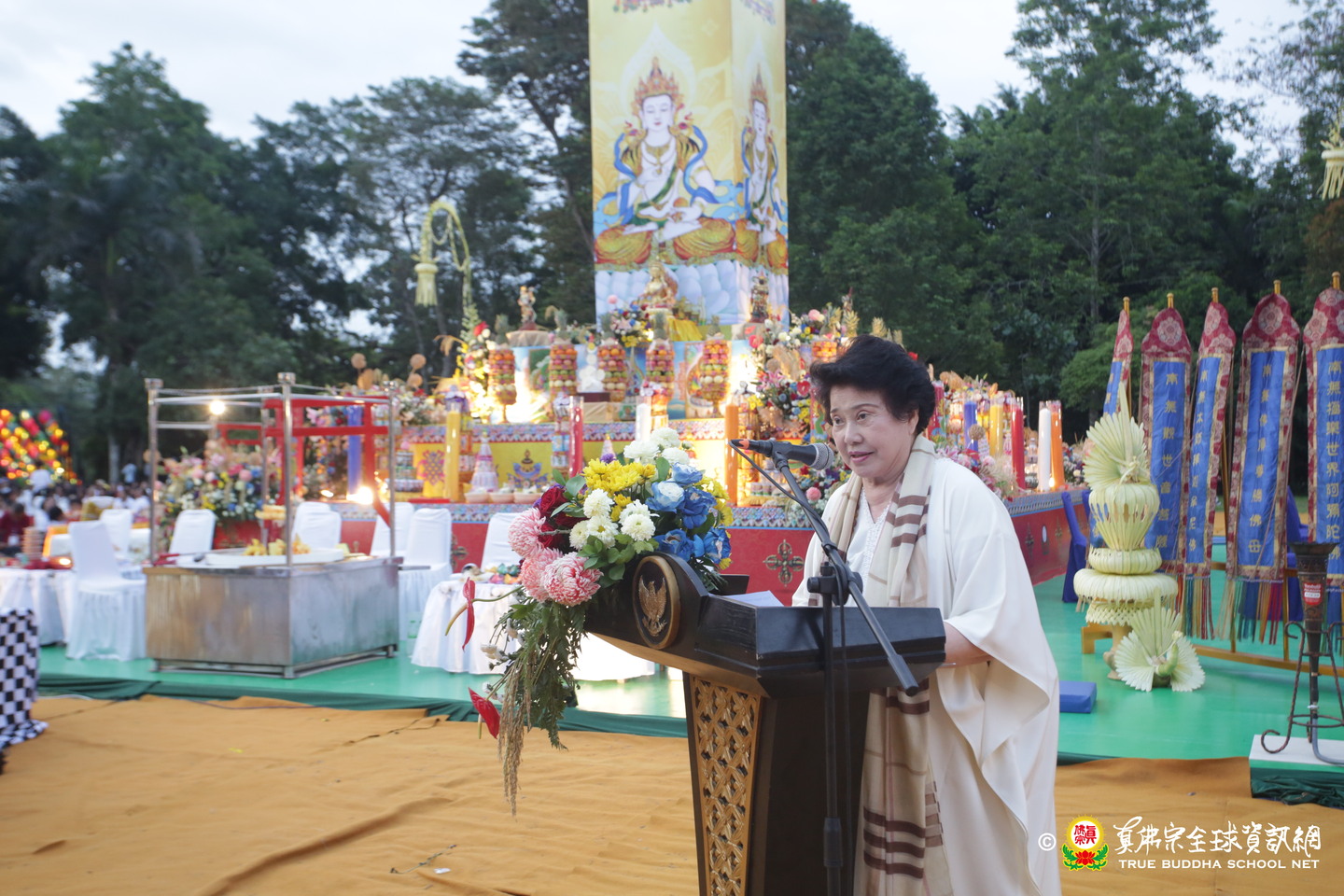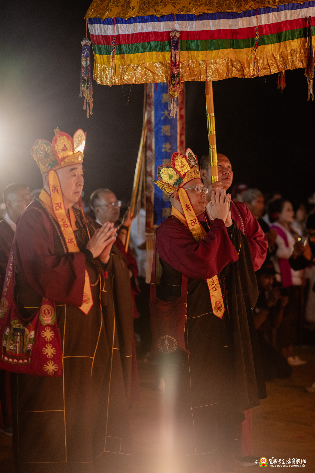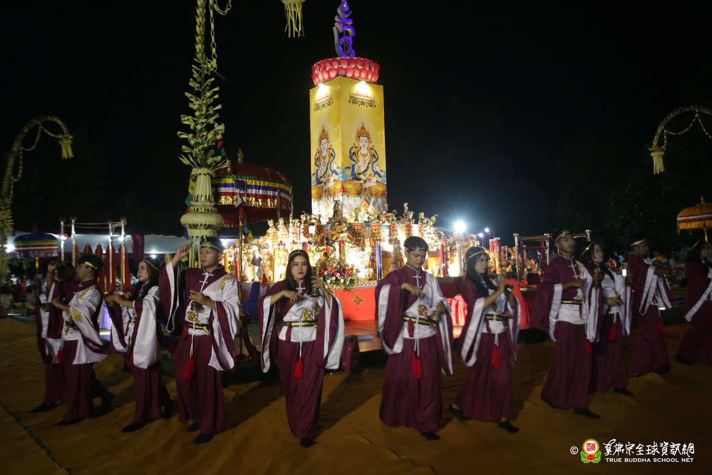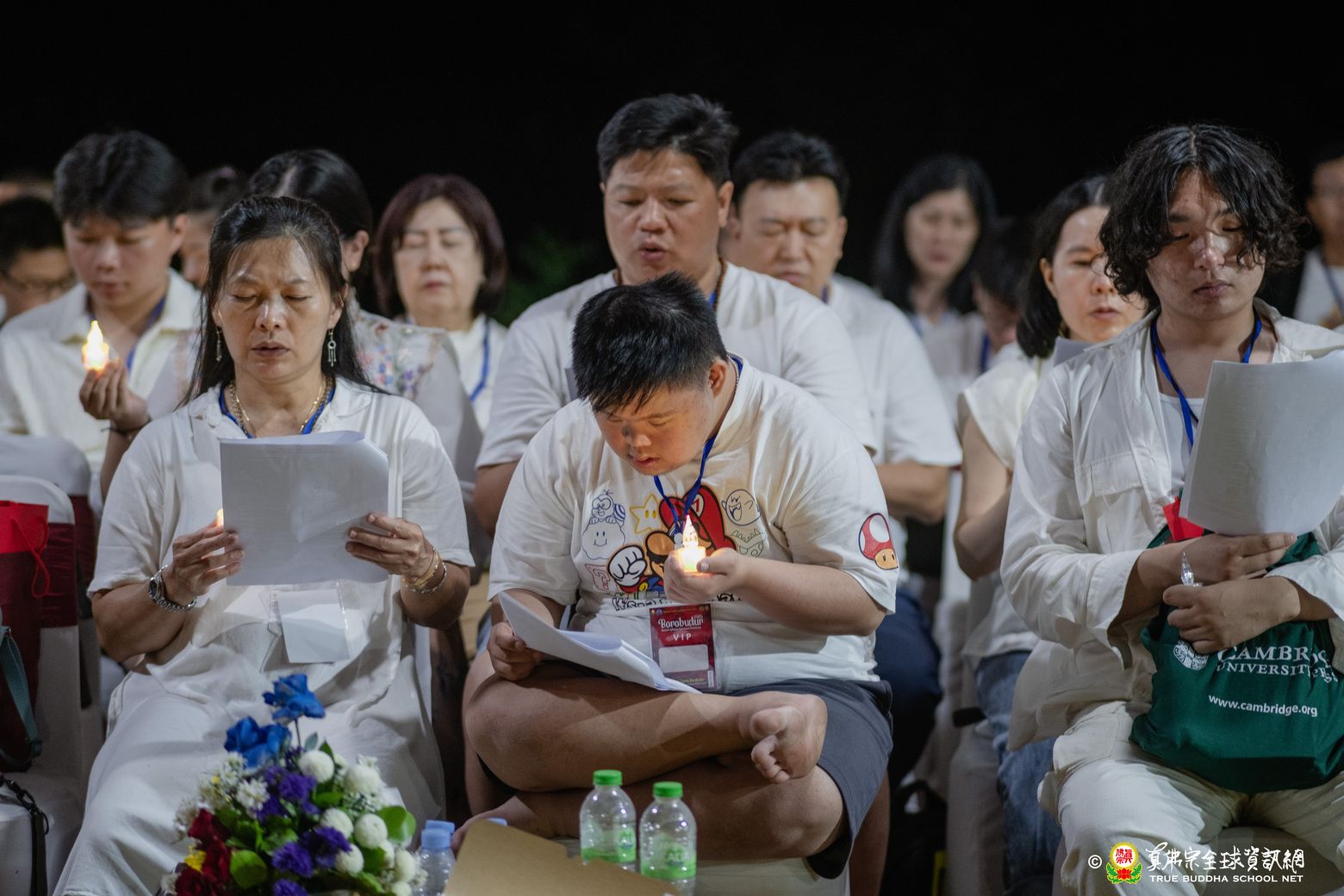 法會現場設有延生位與往生位壇城,為每位報名信眾圓滿迴向。現場並排列出由祈福蠟燭組成的「請佛住世」四字,每盞燈皆代表真佛弟子對根本上師的虔誠祈願,祈願真佛住世間、法輪常轉。