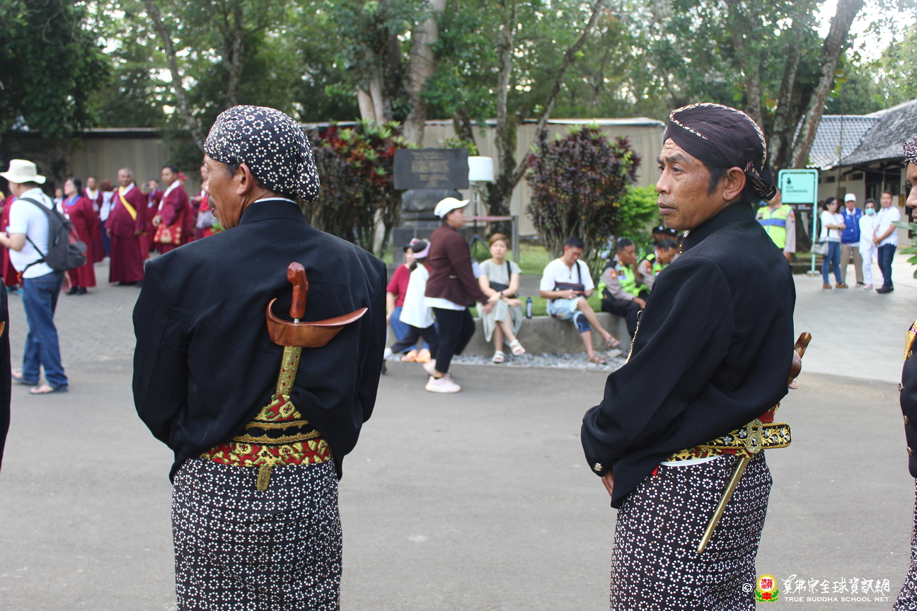 許多中爪哇原住民身著傳統服飾、男士腰配祖傳寶劍,帶著家族之心意參與法會,祈願護摩火焰將清淨與祝福帶回家中,庇佑家人全年平安。