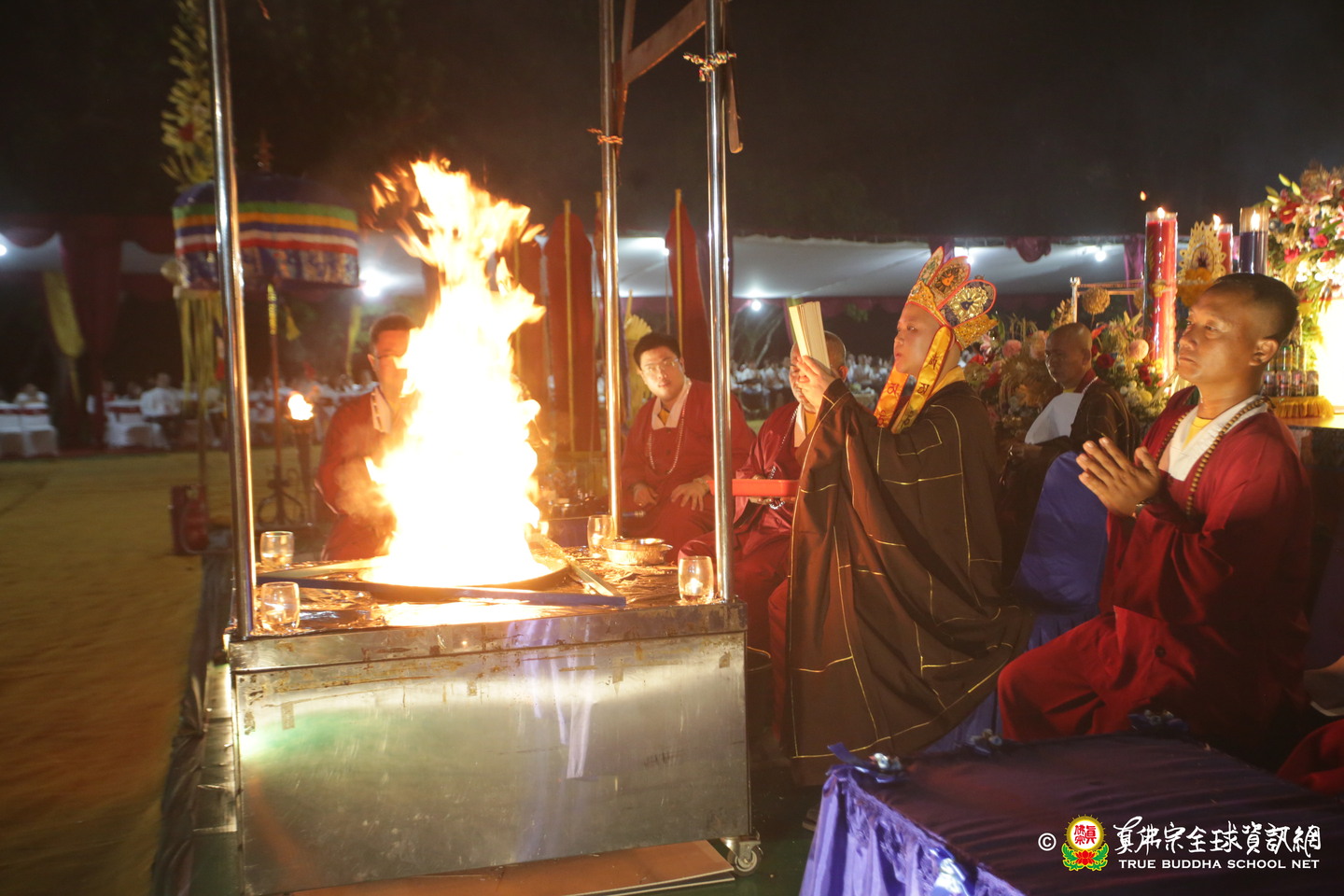 法會結合爪哇語祈願與梵語真言,隨著「雷藏之音」製作的金剛薩埵護摩音樂響起,四方火焰騰升,每一聲咒語、每一份供品皆化作光明能量,充滿全場,祈願眾生皆得祝福、昇華、清淨。