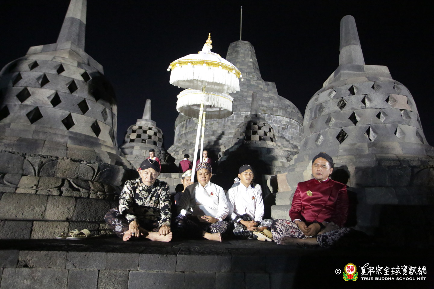 由蓮飛上師代表做總迴向:「透過此次護摩火供,我們將功德迴向印尼共和國,祈願國泰民安、免於災難;亦迴向根本傳承上師蓮生活佛,祝願師佛法體安康、長轉法輪。」護摩圓滿後,蓮飛上師引領大眾繞塔一週,並特別感謝婆羅浮屠管理單位開放夜間登上塔頂,讓信眾得以在星空下禪坐沉澱,體驗無比殊勝的文化與靈性交會。
