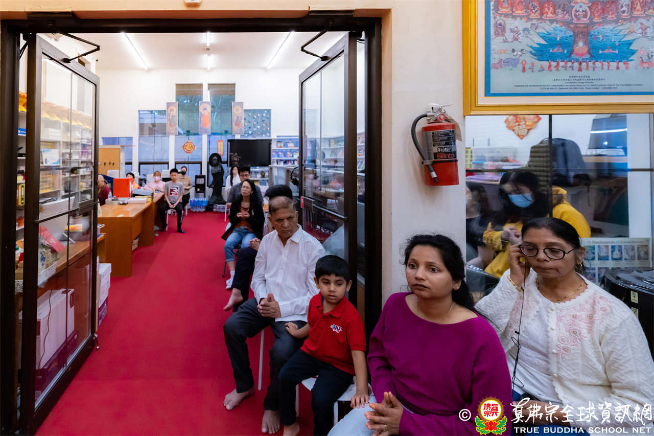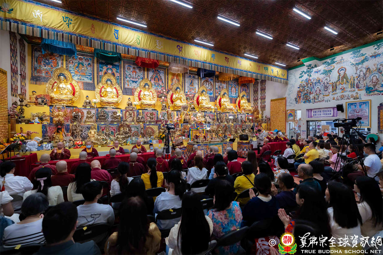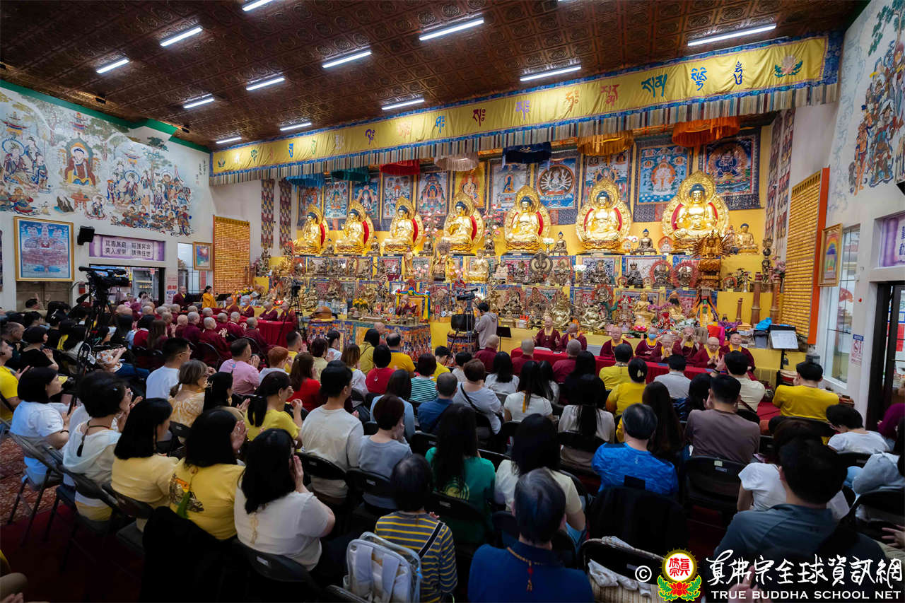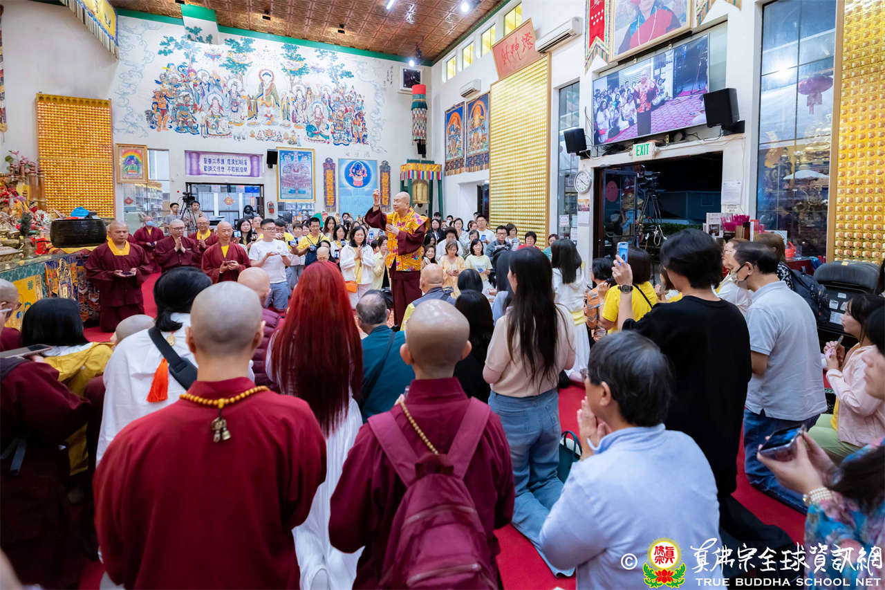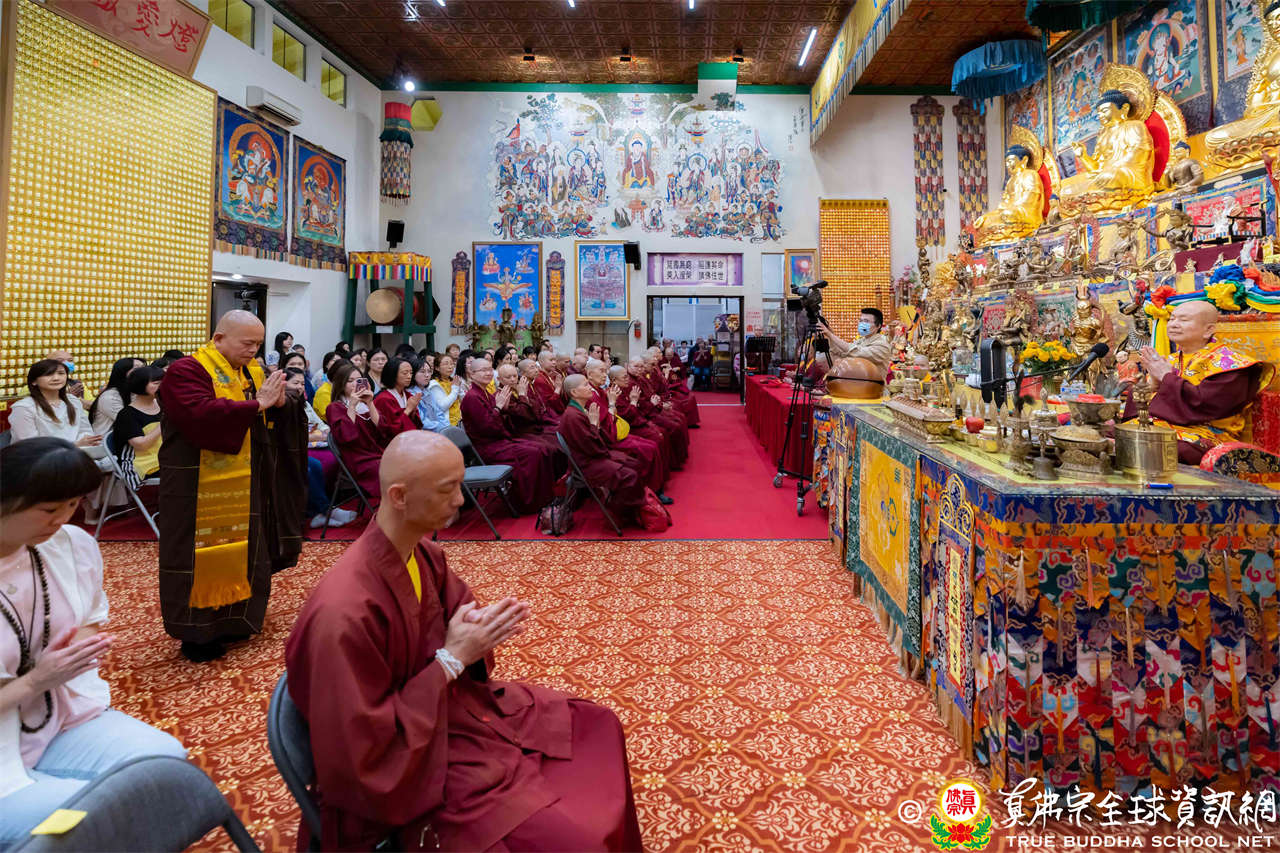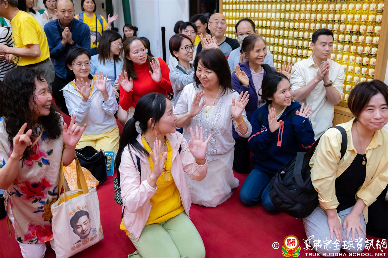 開示結束後,聖尊為新皈依弟子做皈依灌頂,並開光佛像、加持佛具部,最後持拂塵一一加持與會大眾。