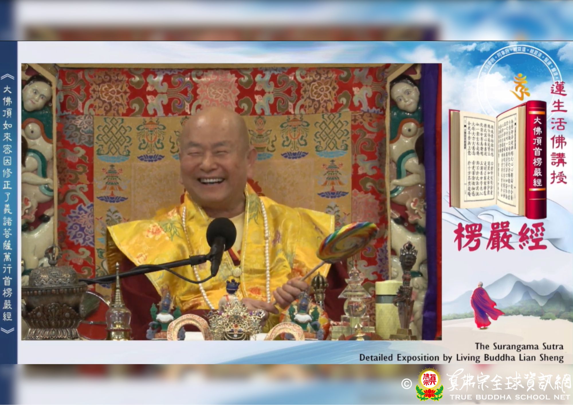 聖尊解釋經義:釋迦牟尼佛告訴阿難,若有一個人將一個地方的空氣裝進一個瓶子裡並且帶到千裡之外的地方打開。兩個地方的空氣也不會因此而有所增加與減少。空氣看起來像是有來有去,但實際上也是無來無去。如此看來,「識陰」本身也是虛妄,沒有因緣也沒有自然可言。