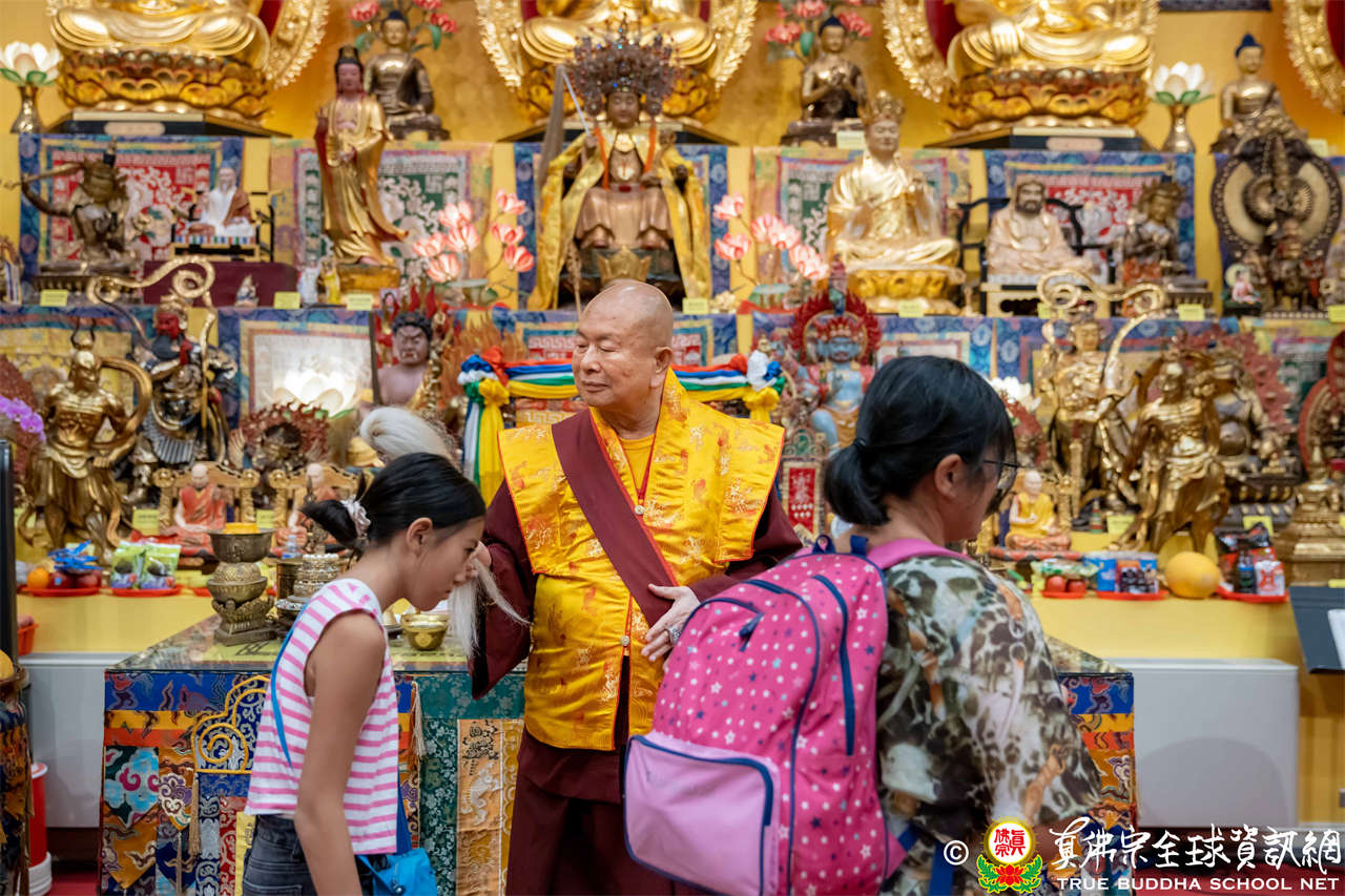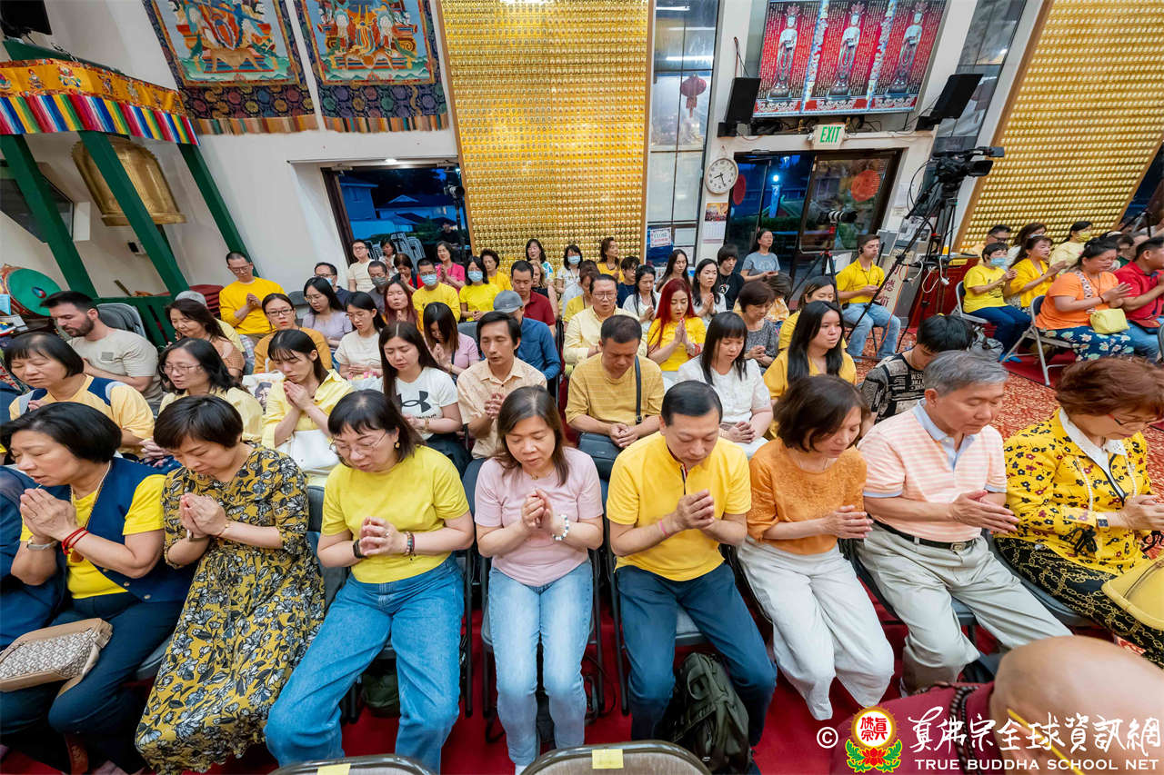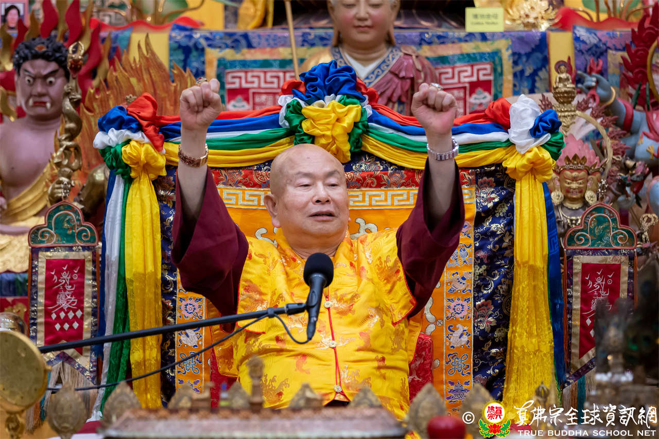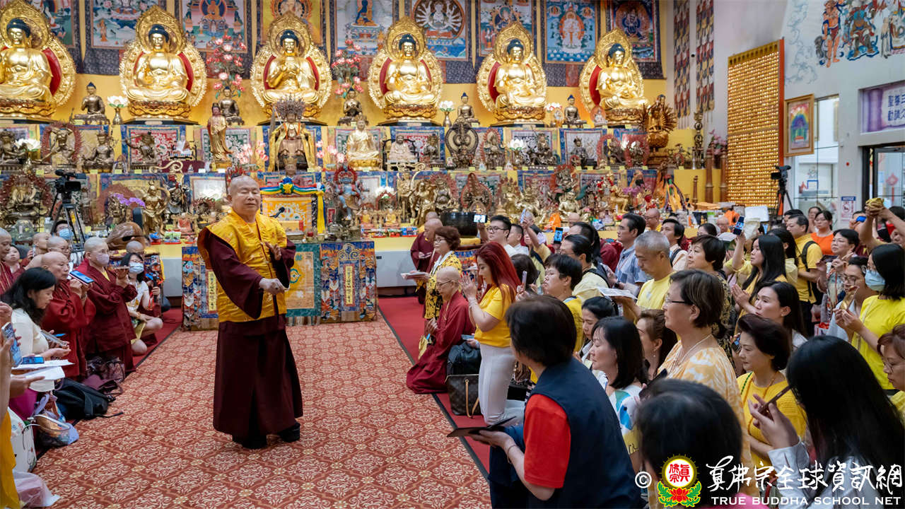 晴空萬里、豔陽高照的西城,雖然已過立秋,但天氣仍猶如弟子們朝聖的心情般熱情如火。全體弟子在大雄寶殿內恭迎聖尊蓮生活佛盧勝彥親臨主壇今晚的黃財神本尊法同修。