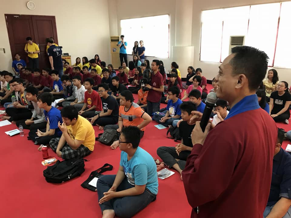 「佛陀教導我們,諸惡莫做。請問有誰犯過錯的?(全部舉手)沒有人是不會犯錯的。但是我們是否有道歉悔改?要知錯能改,從錯誤中學習,錯誤中改變。大家要不斷地加強自己,因為你就是國家的希望、社會的希望、父母的希望。如果你也是真佛行者,那你也是宗派的希望。」