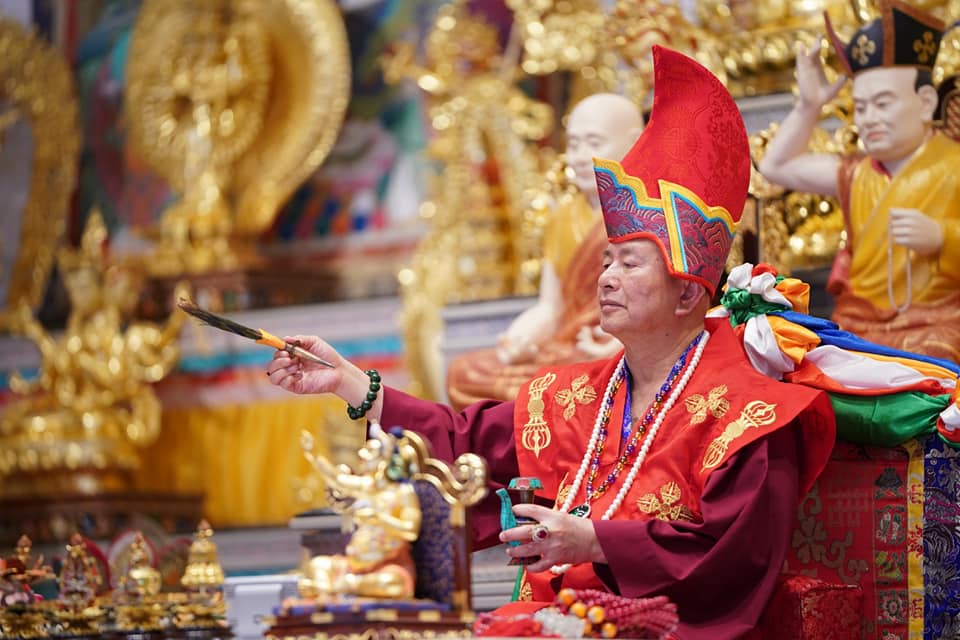 最後,法王為佛像開光、加持眾弟子及賜授「長壽佛本尊法、佛頂尊勝佛母不共大法、佛頂尊勝佛母心真言、白度母本尊法」灌頂,法會圓滿結束。